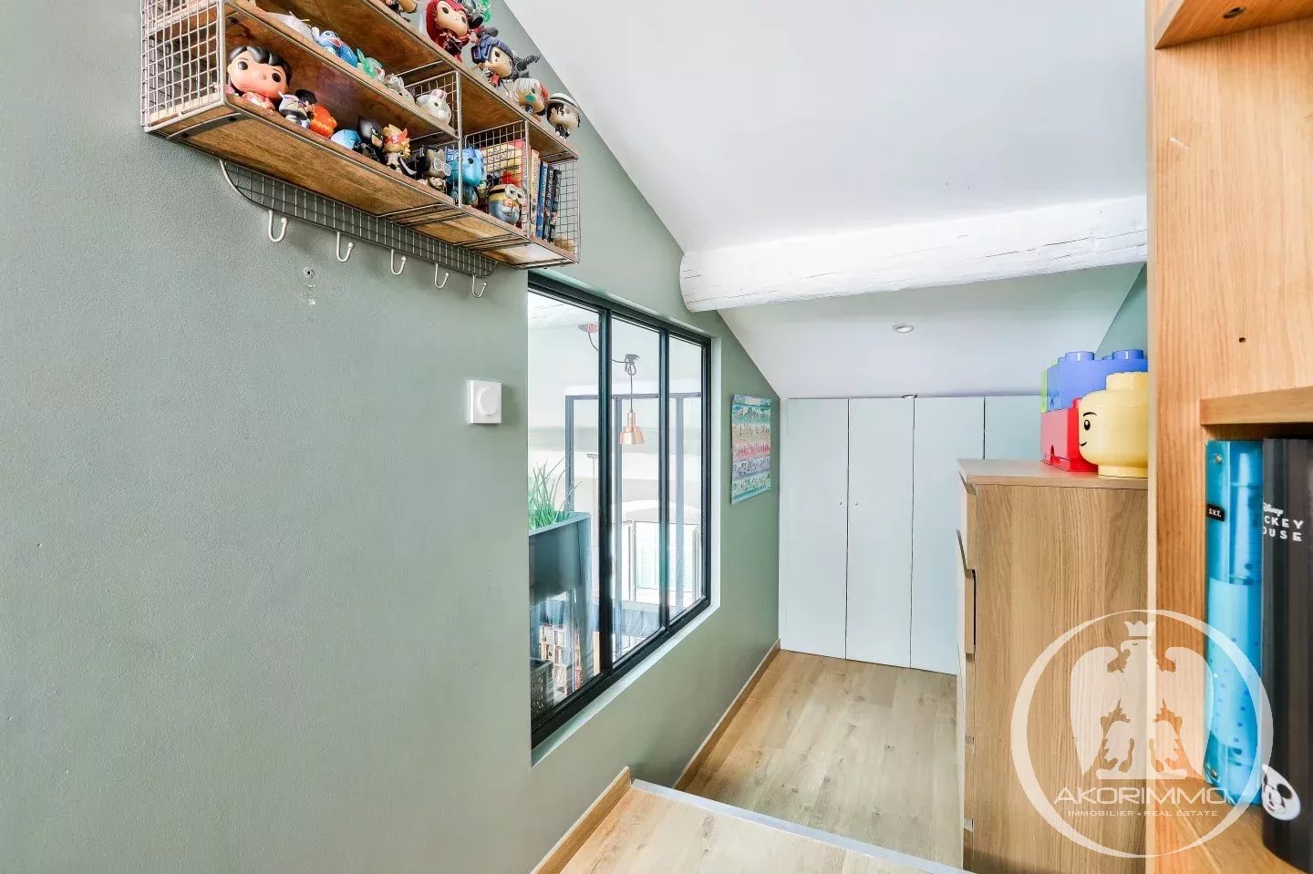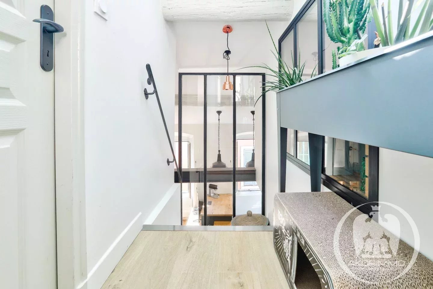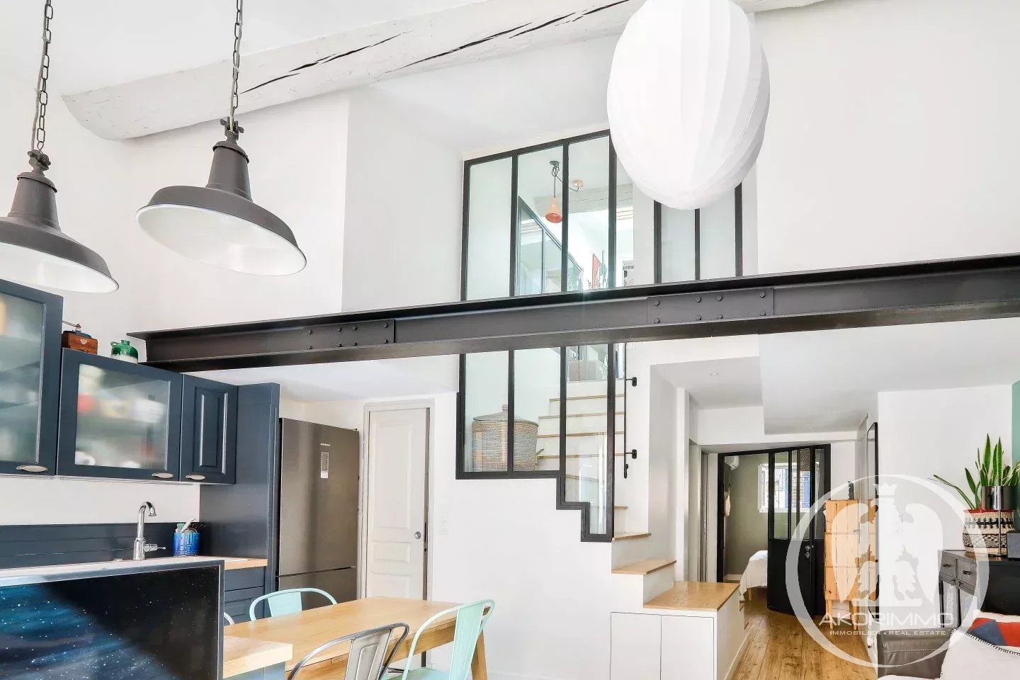 A beautiful staircase with a glass canopy leads to two other bedrooms on the top floor, thus creating a sleeping area separate from the rest of the apartment.