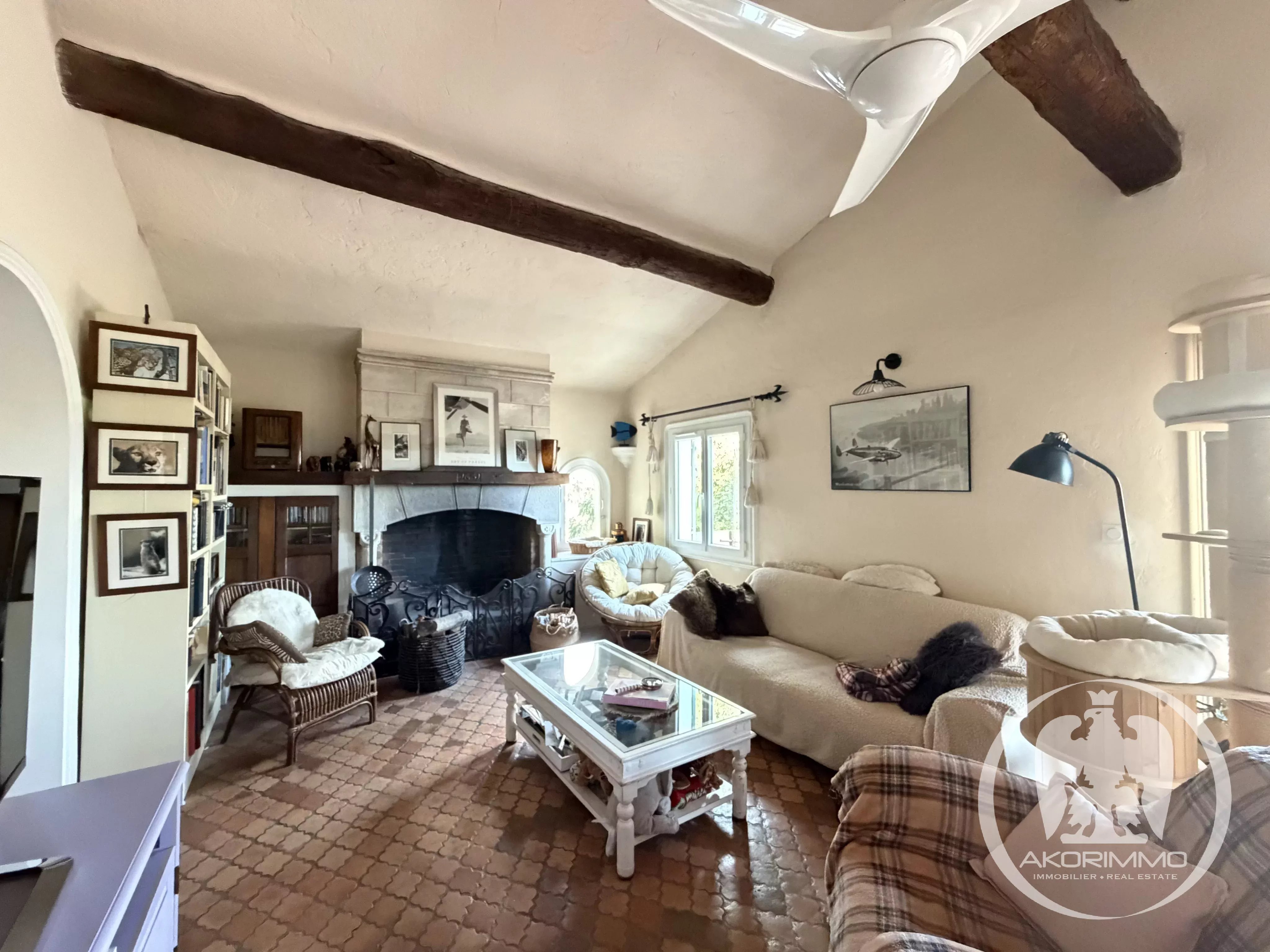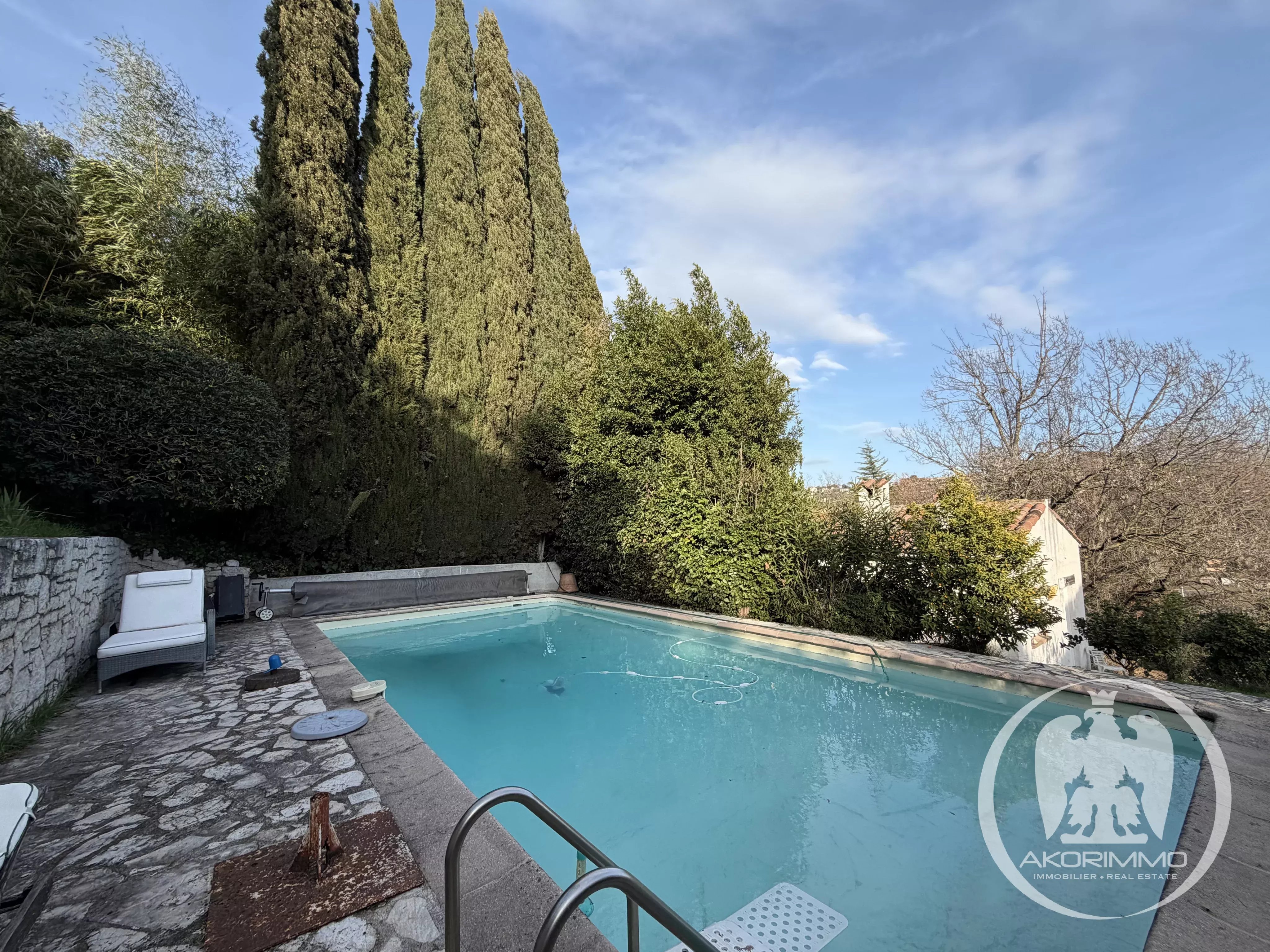 The fully fenced 1,850 m² plot offers a true Mediterranean cocoon: swimming pool, outdoor spaces ideal for relaxing, and several parking spots.