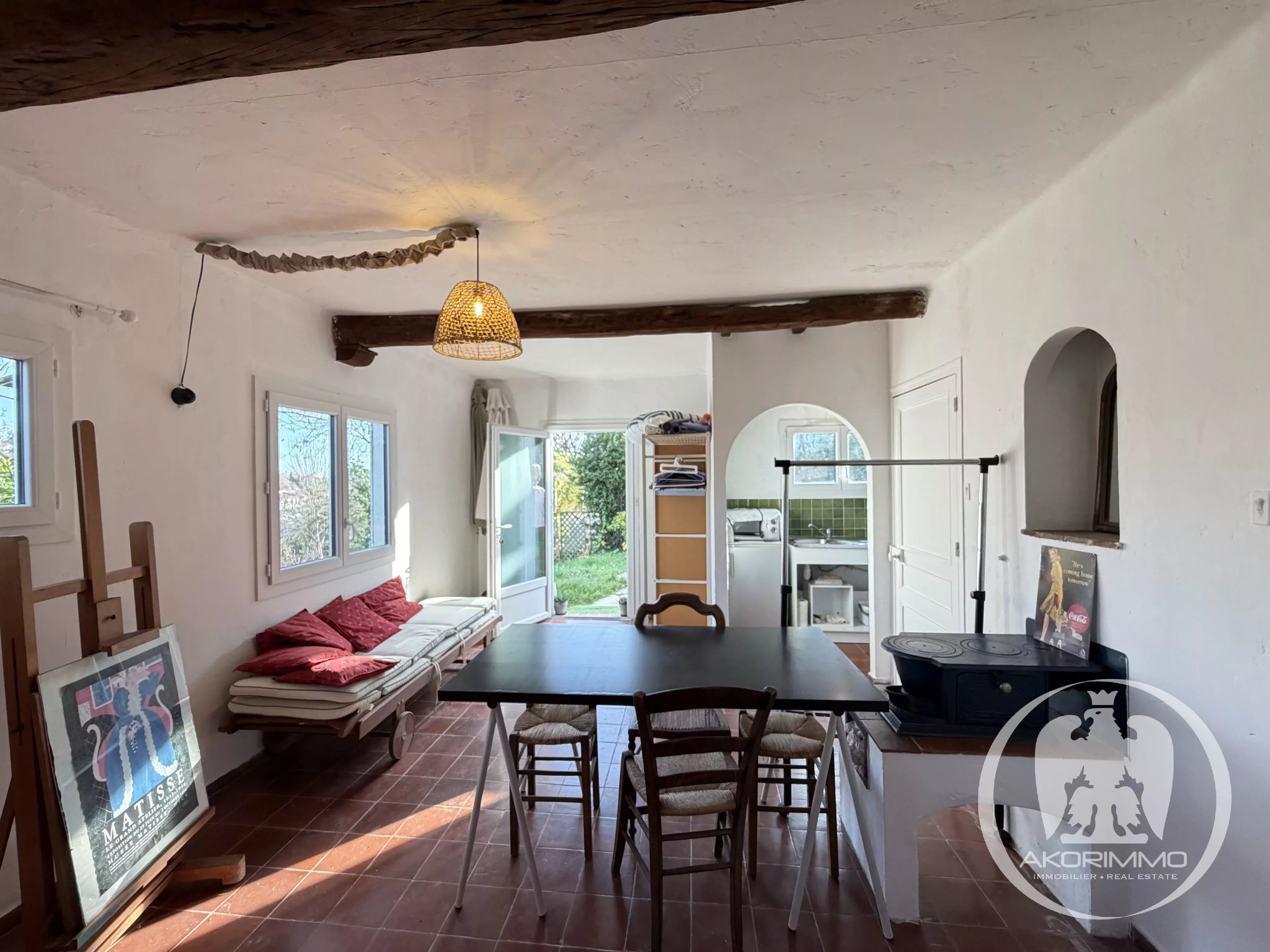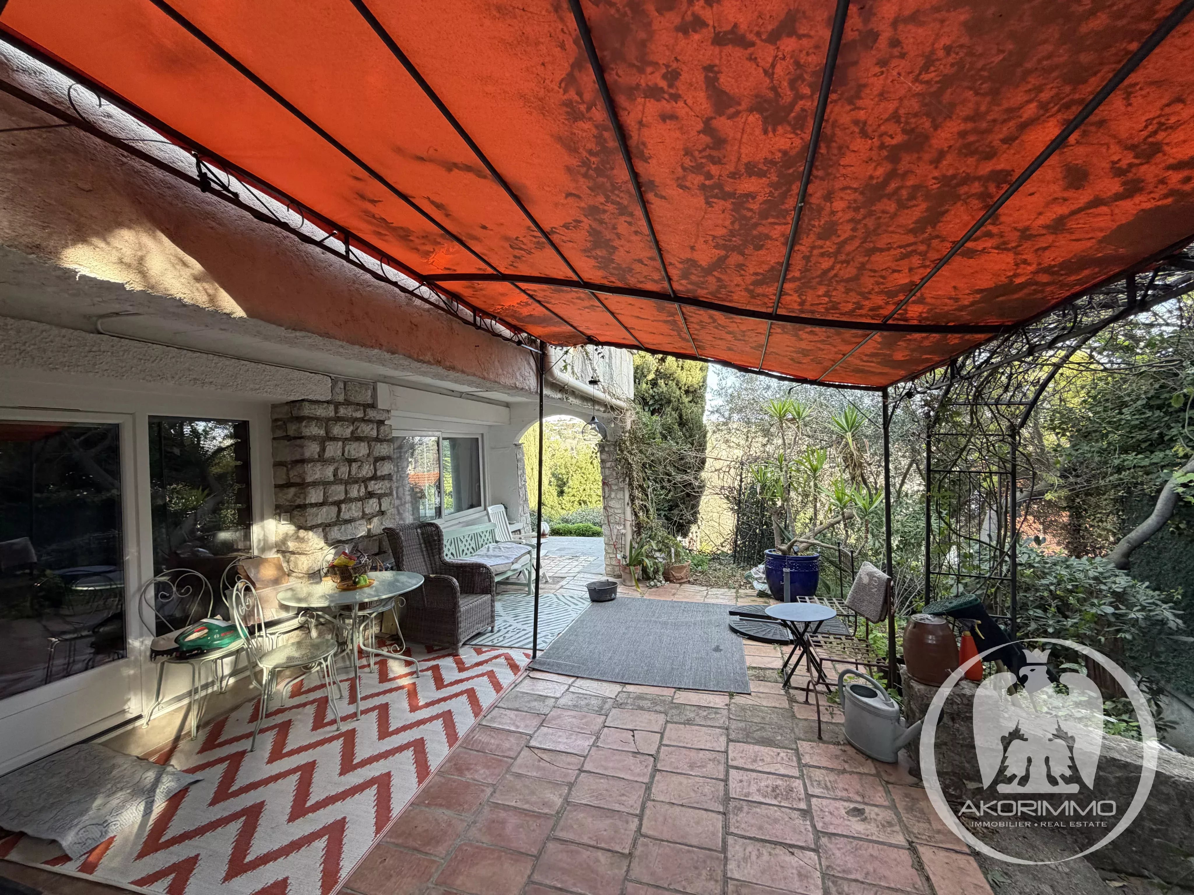 In La Colle-sur-Loup, let yourself be charmed by this bohemian-style property, bathed in light and offering a panoramic view of Saint-Paul-de-Vence and its hills.