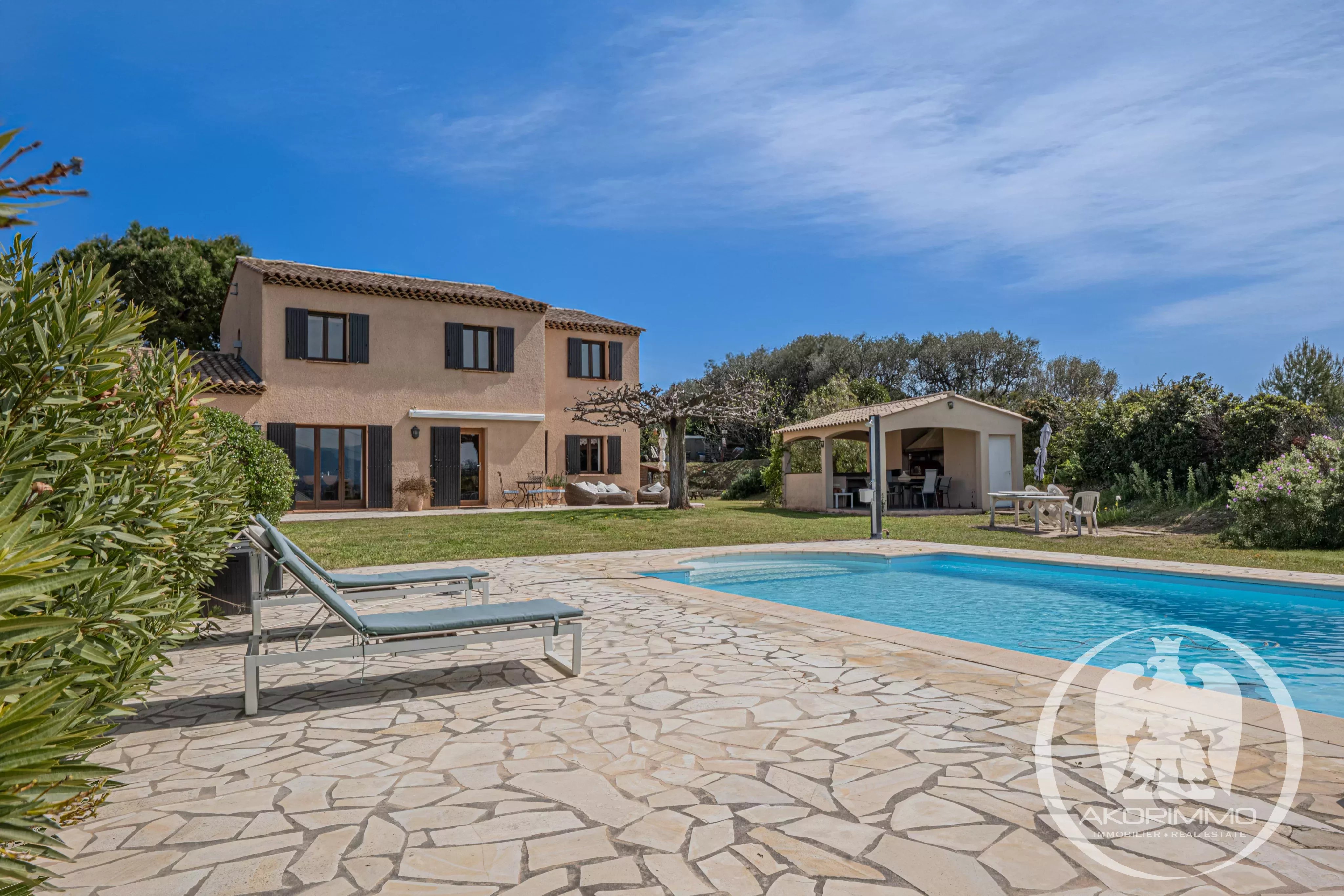 En el exterior, el confort continúa con una piscina cubierta y climatizada por bomba de calor, una casa de piscina equipada con vestuario y aseo seco, y varias plazas de aparcamiento.