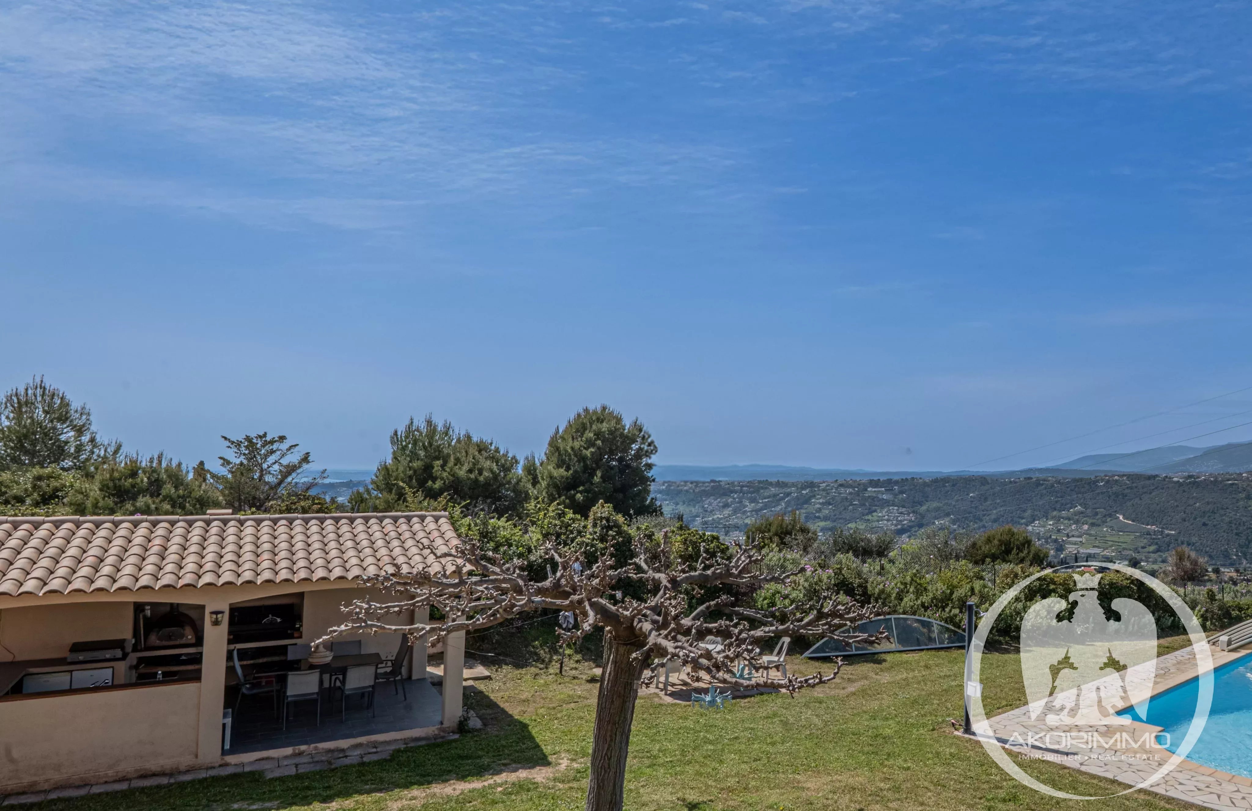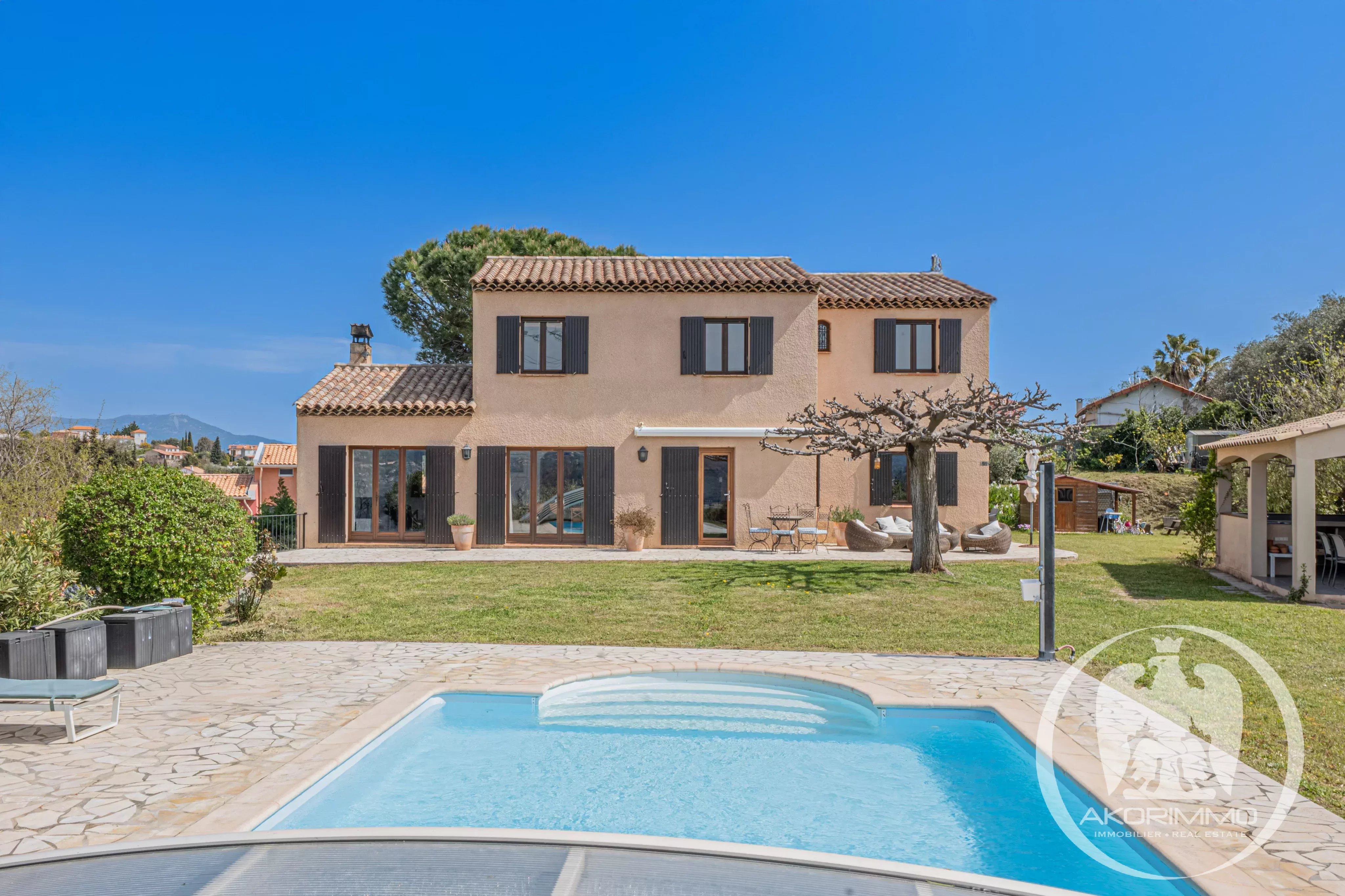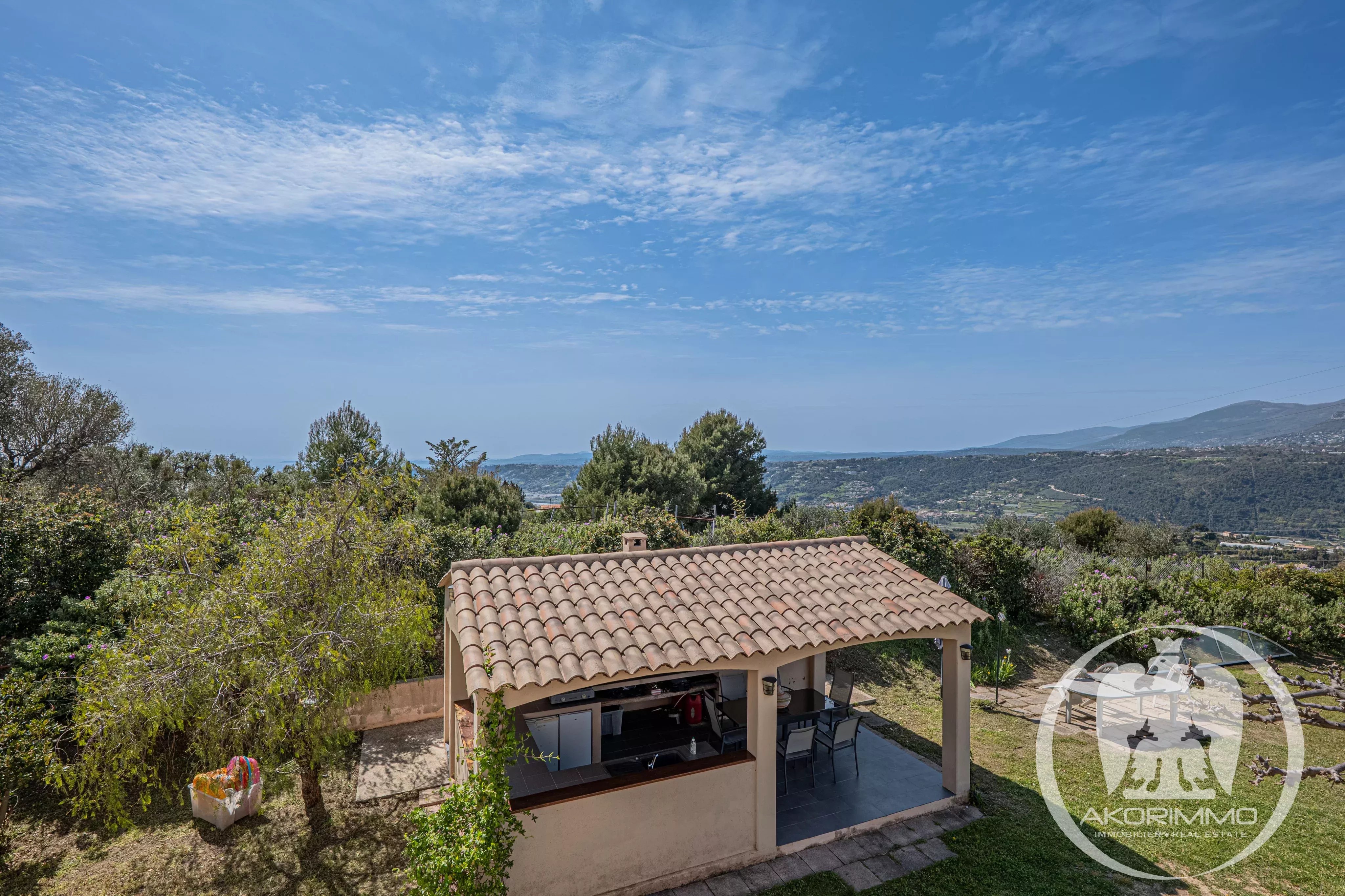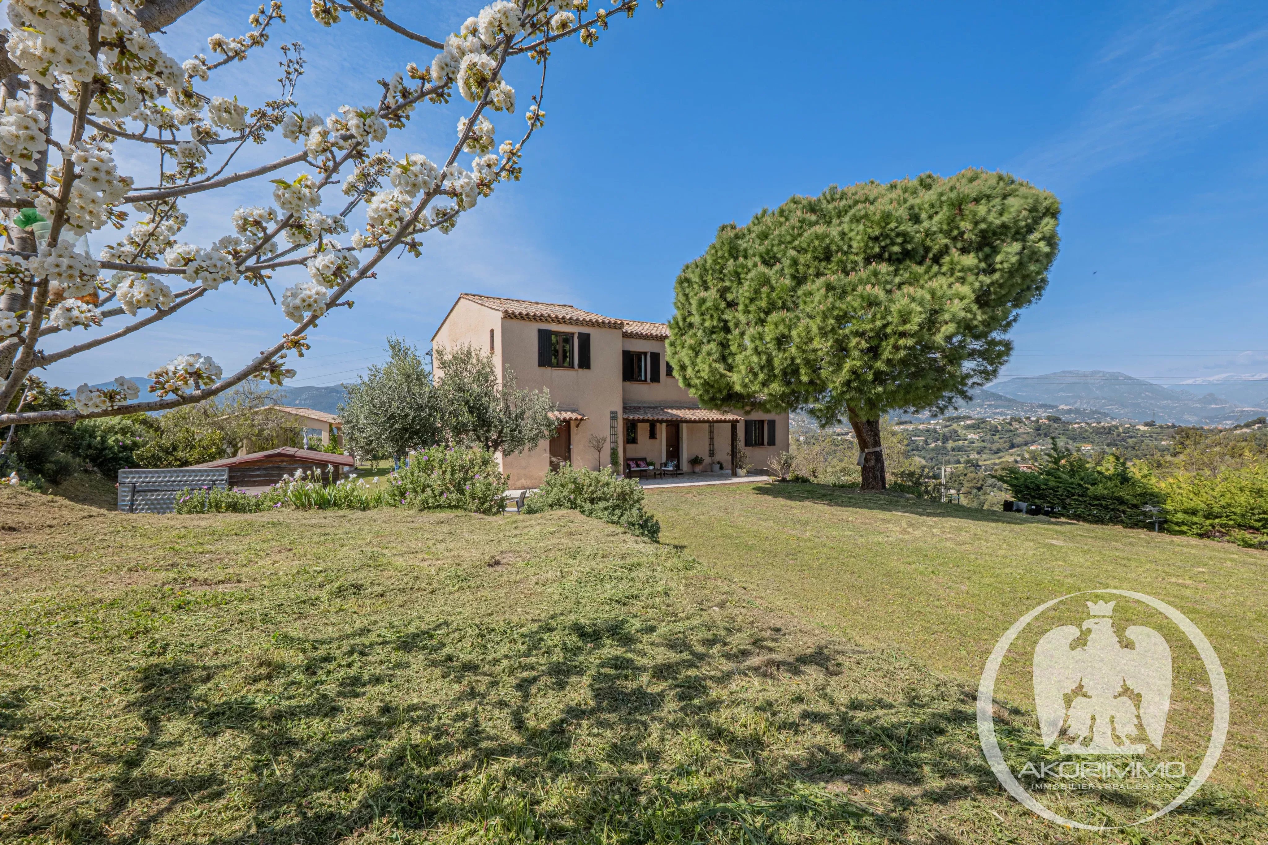 Desde la entrada, quedará inmediatamente cautivado por esta finca cerrada, plantada con especies mediterráneas y con vistas panorámicas a las montañas circundantes. Este refugio de paz garantiza privacidad y serenidad absolutas a solo unos minutos de escuelas, comercios, autopistas y del aeropuerto internacional de Niza Costa Azul.