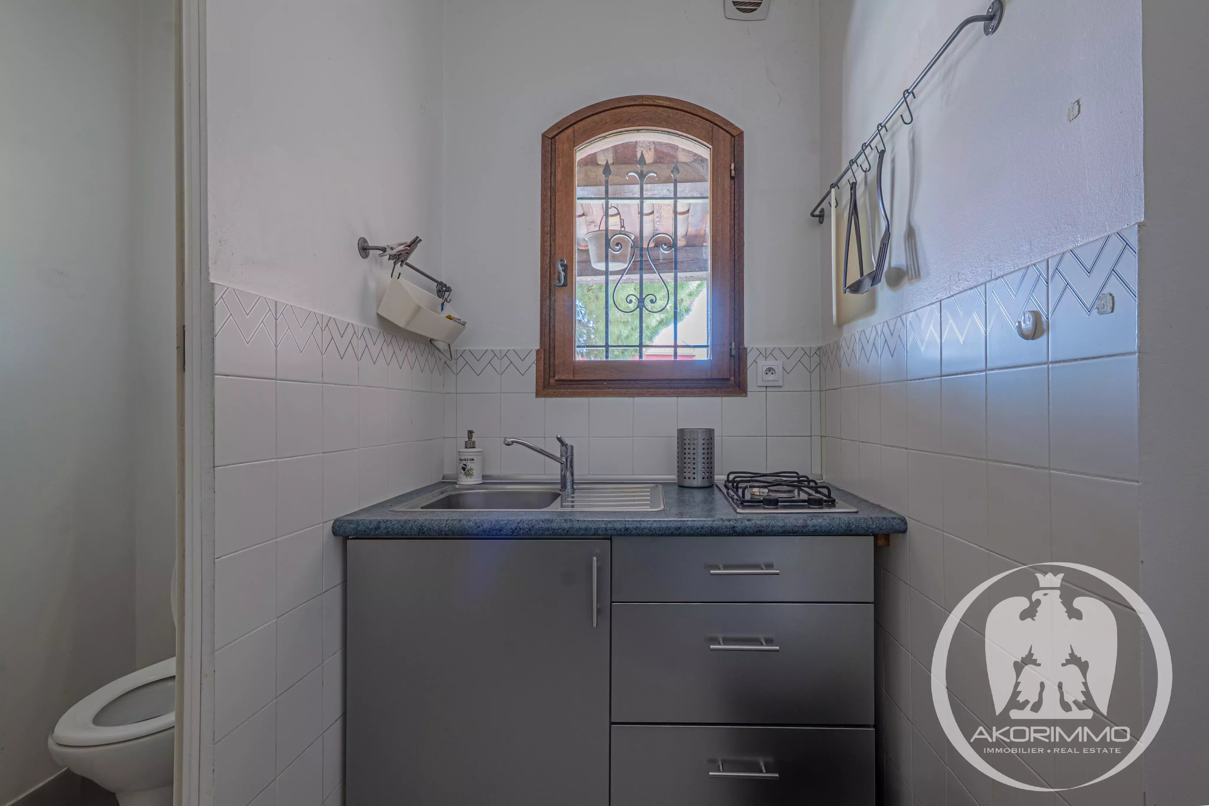 En esta misma planta jardín también se encuentra un apartamento independiente de dos habitaciones, compuesto de un salón, una cocina separada, un dormitorio y un cuarto de baño con WC, perfecto para recibir invitados o generar ingresos por alquiler.