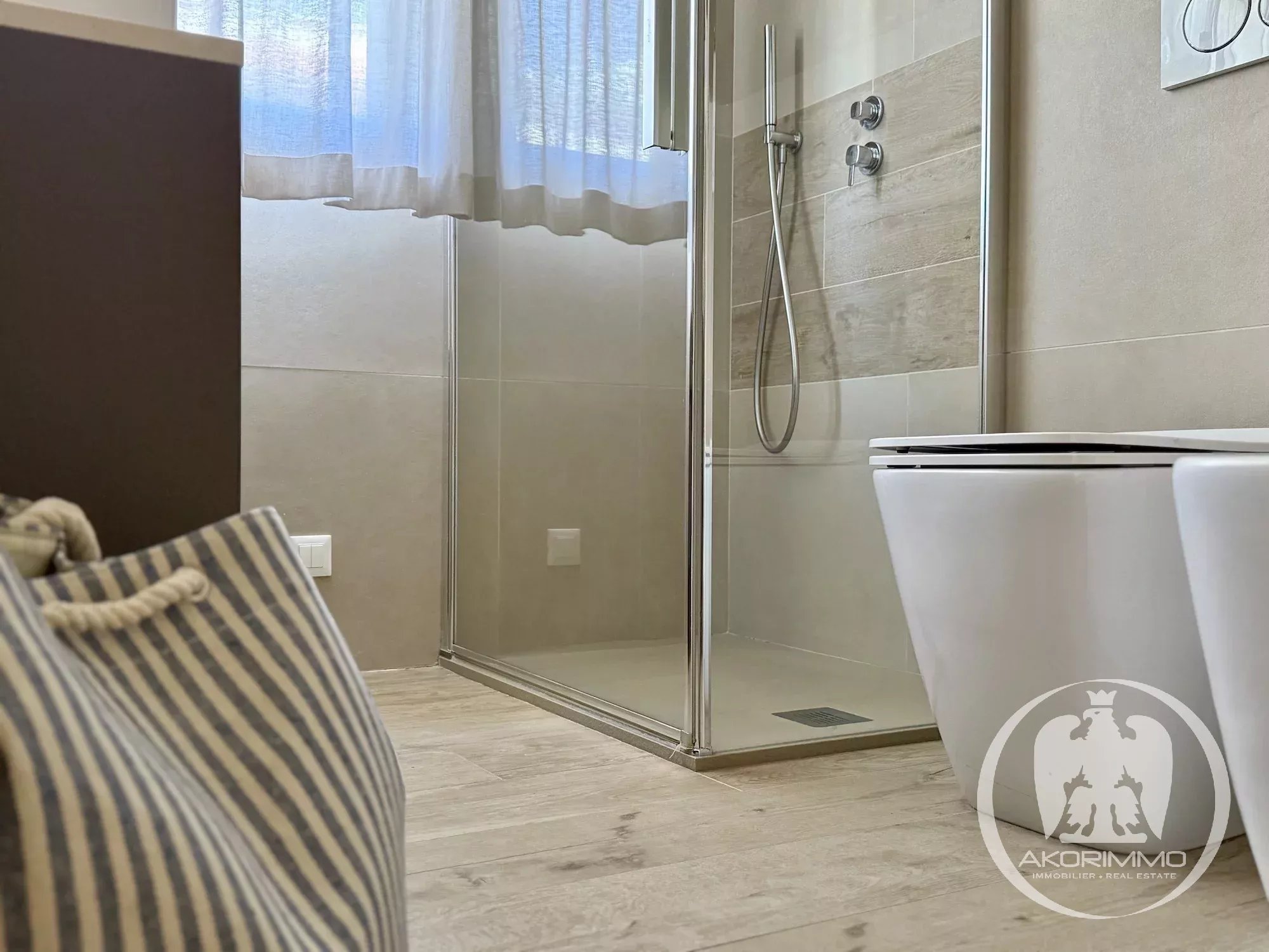 Ubicado en el 4º piso, el apartamento principal incluye un amplio salón con comedor, una cocina amueblada y equipada, dos grandes dormitorios, uno de ellos en suite con baño privado, un segundo baño y un espacio de almacenamiento. Todo se abre a una hermosa terraza de 75 m², verdadera extensión del interior, con el mar muy cerca como telón de fondo.