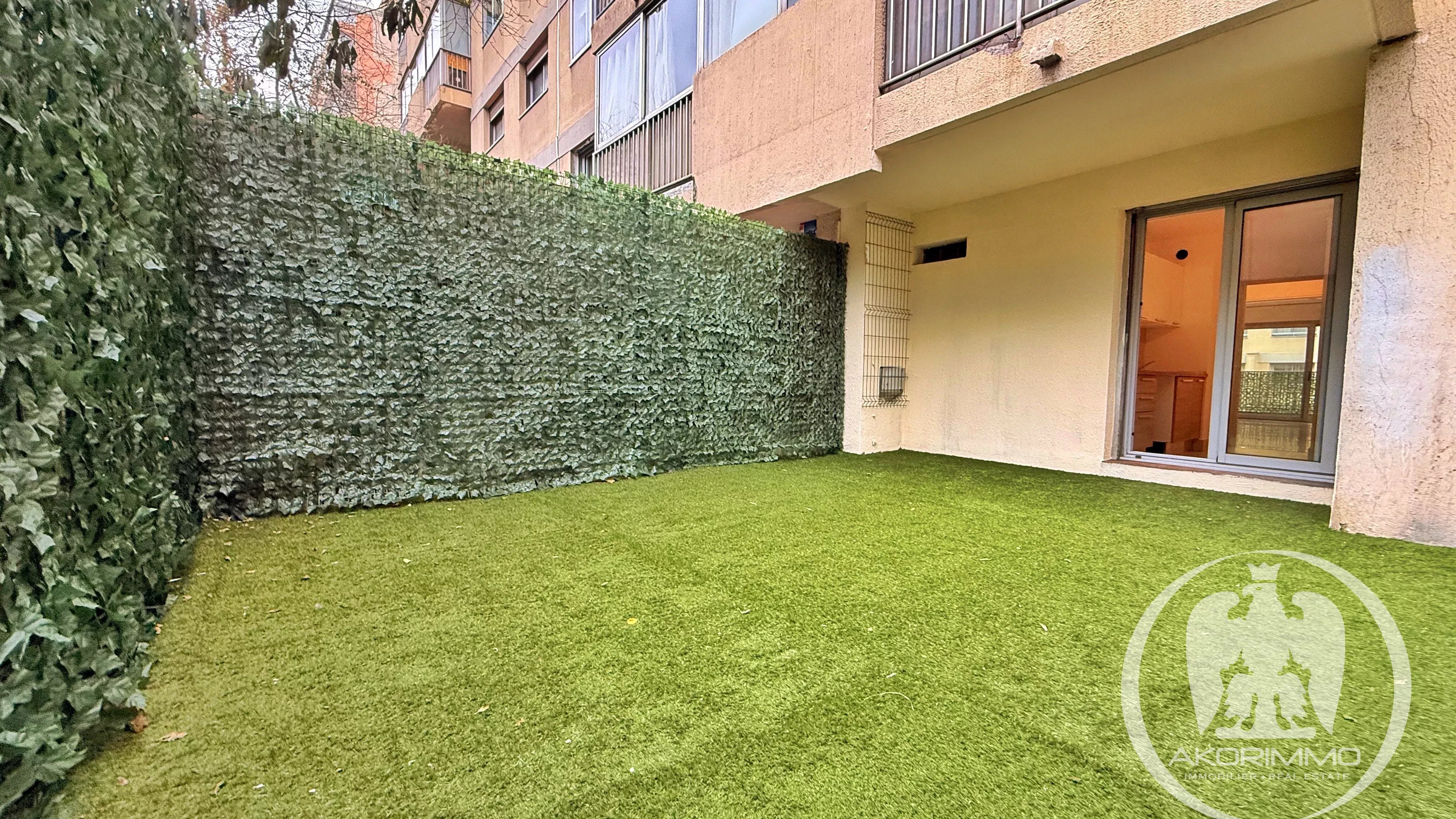 El apartamento ofrece una sala de estar luminosa con acceso directo a la terraza, una cocina funcional con jardín privado, un dormitorio tranquilo, un baño contemporáneo y un aseo separado.