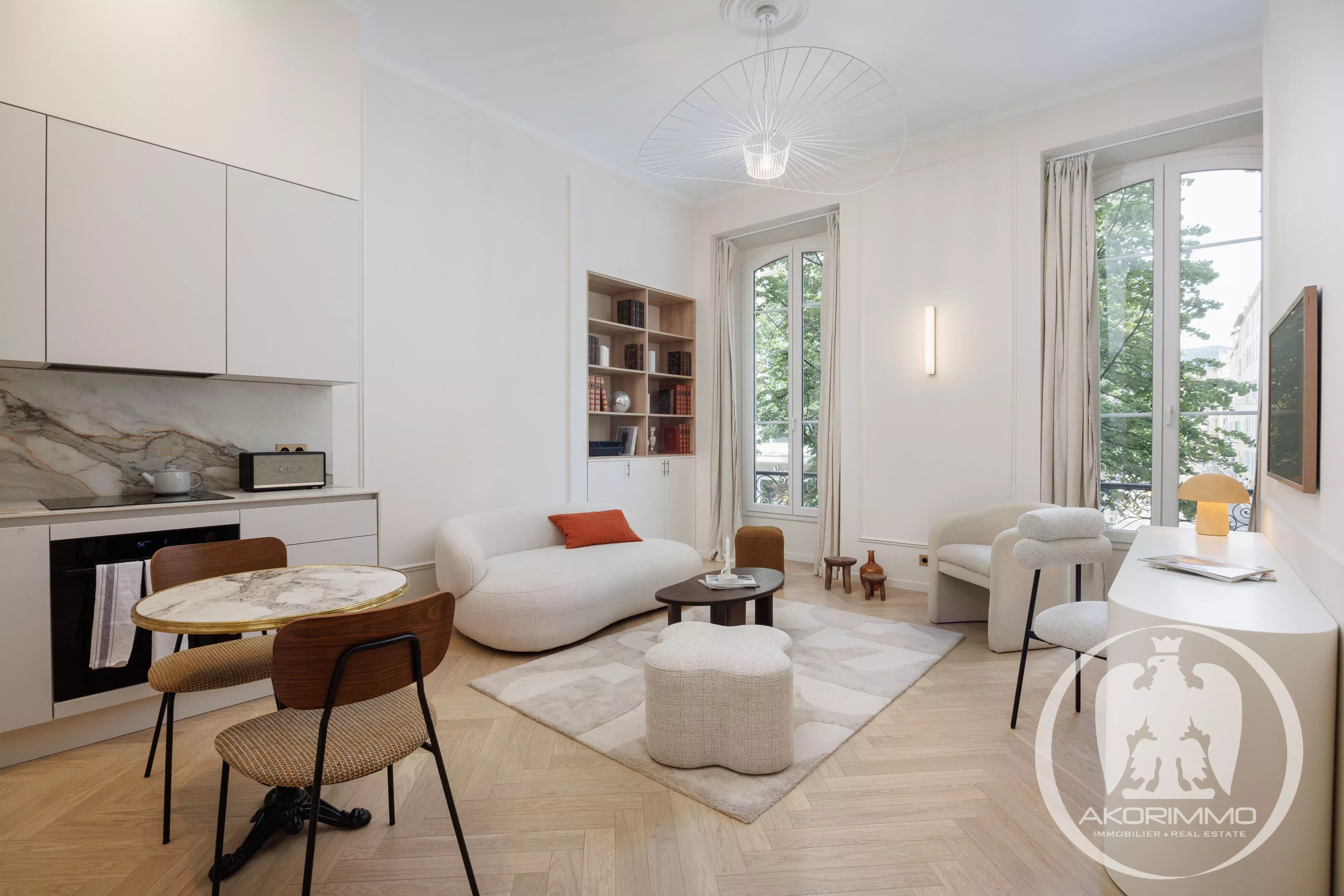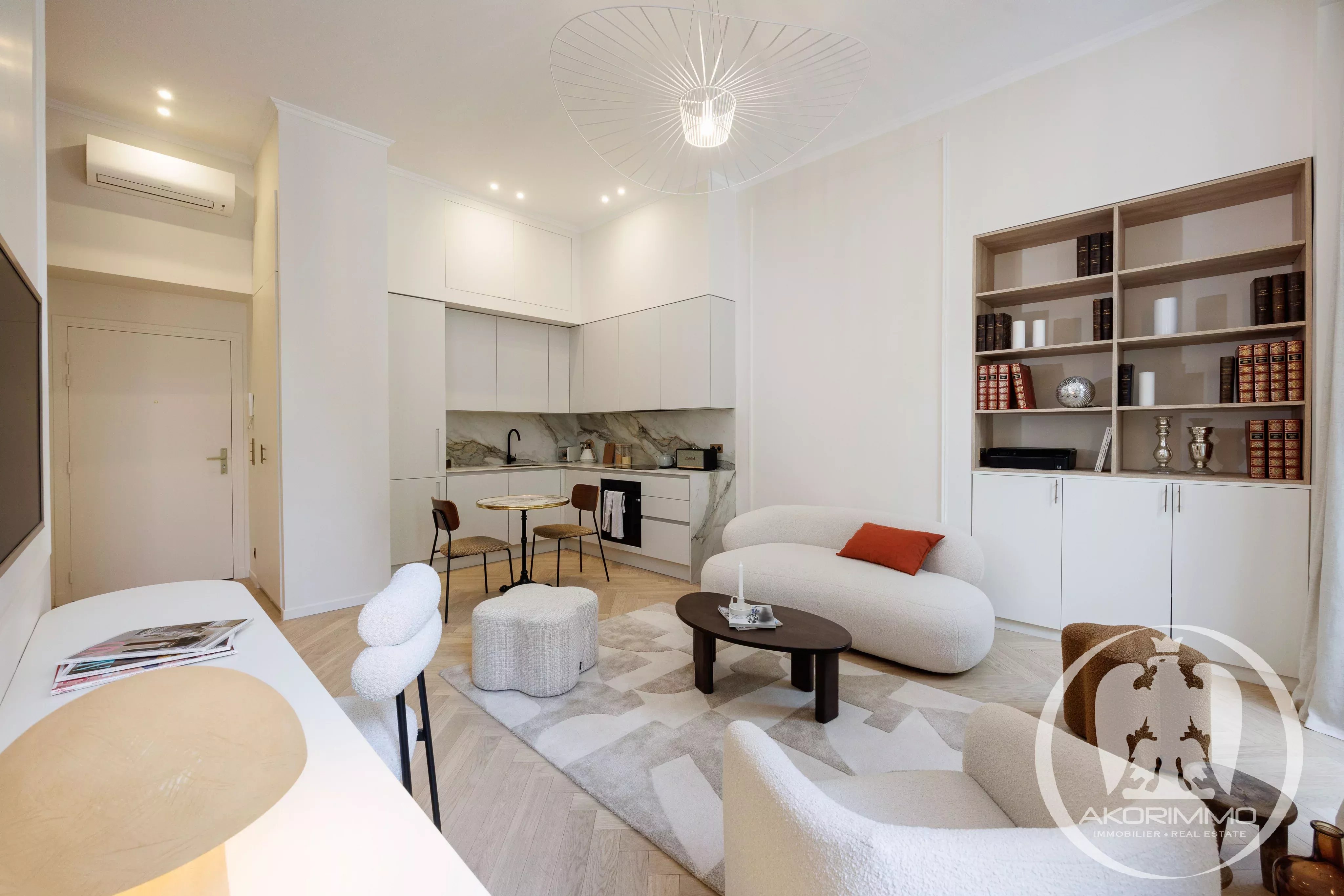 ¡Una joya! En pleno corazón de Niza, no lejos del mar, en un hermoso edificio antiguo con ascensor, magnífico apartamento de 2 habitaciones de 47 m² (41 m² ley Carrez) renovado en un estilo chic y refinado por un arquitecto, con amplios espacios y acabados de alta gama (parquet de madera maciza, mármol, aire acondicionado, etc.).
