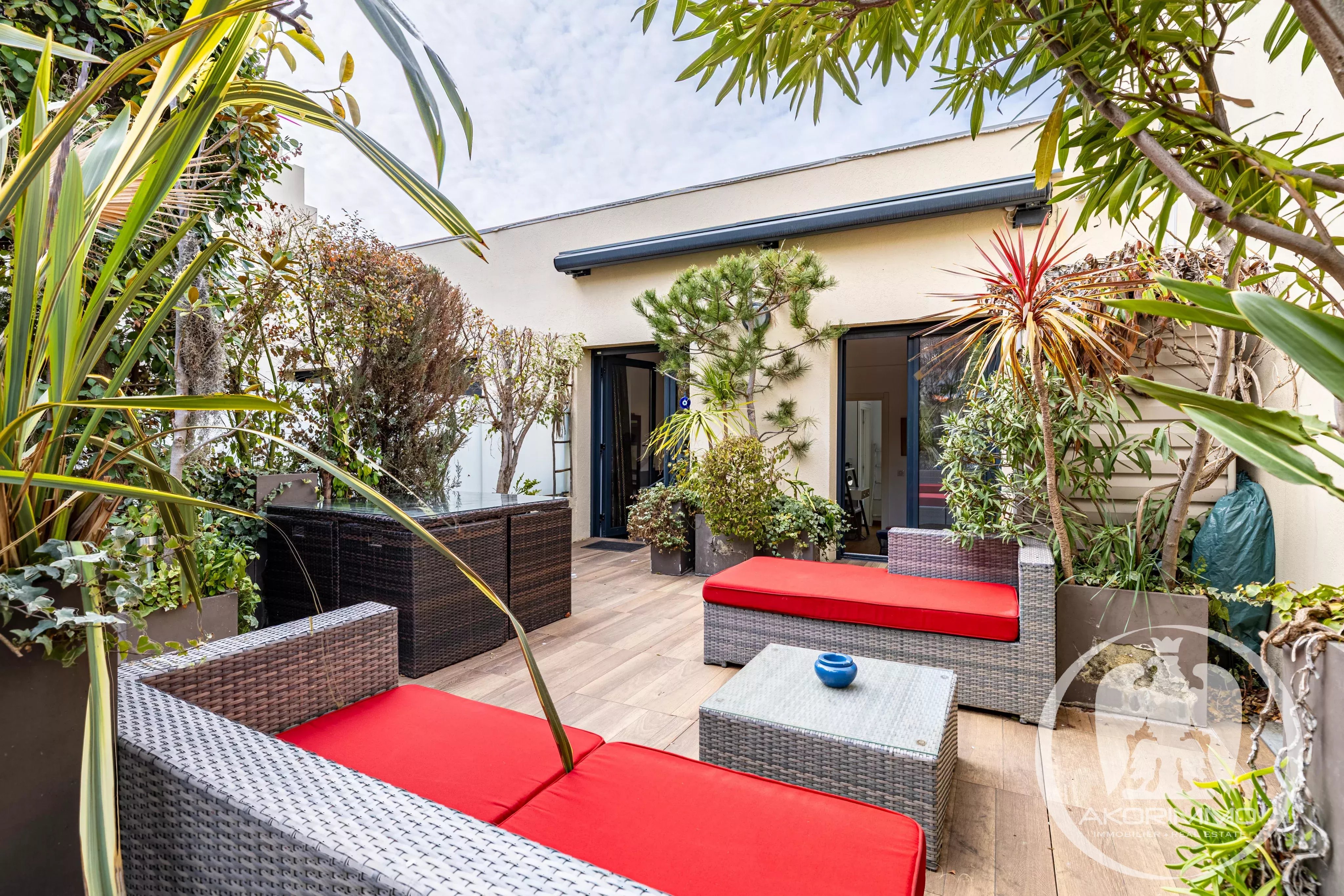 Su magnífica zona ajardinada de 45 m², expuesta al sur, constituye un verdadero remanso de paz, algo raro en pleno centro.
