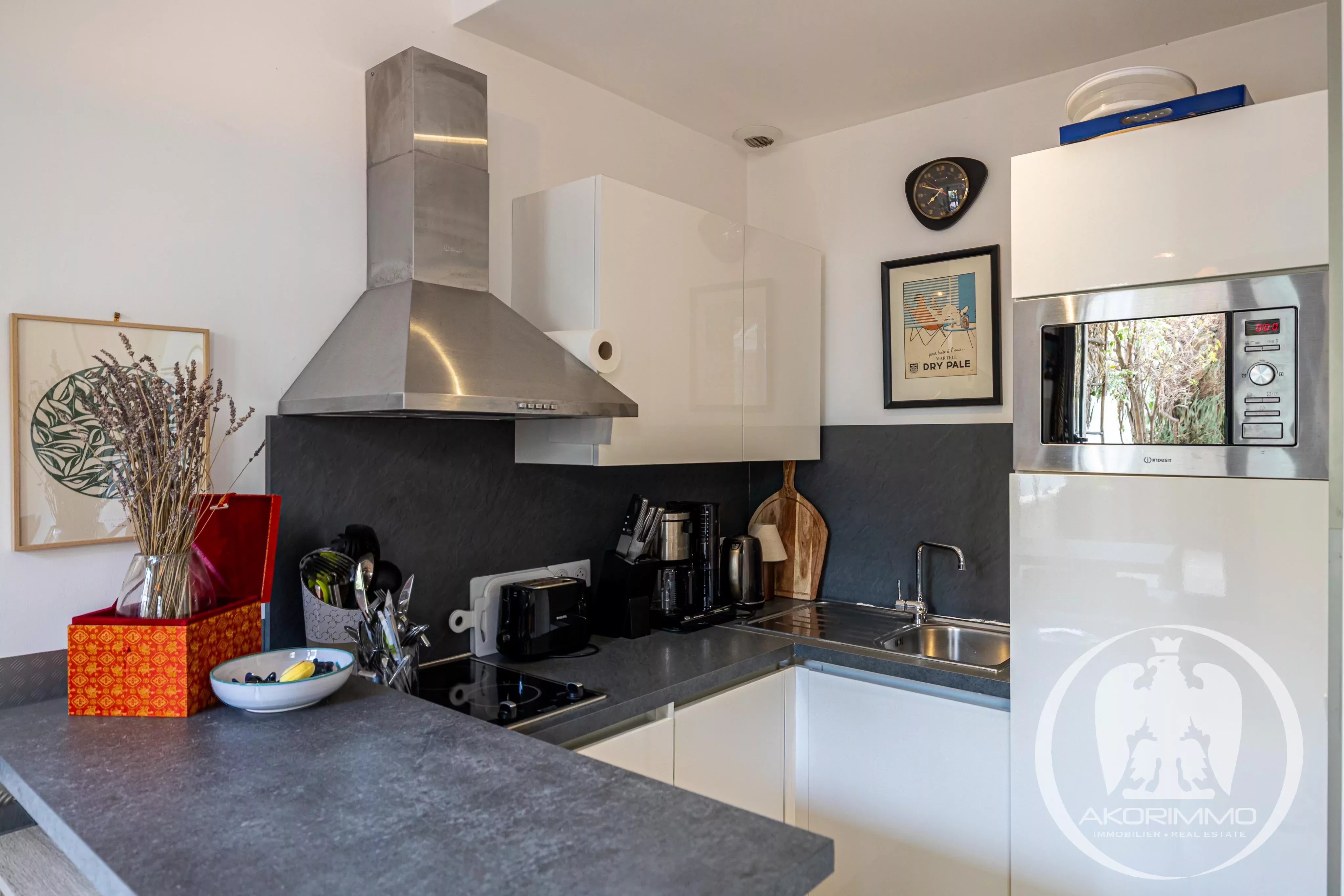 En una copropiedad reciente y perfectamente cuidada, este apartamento seduce por su estado impecable y su exterior único. Se compone de una sala de estar con cocina americana que da a la terraza y un dormitorio con baño con ducha y aseo.