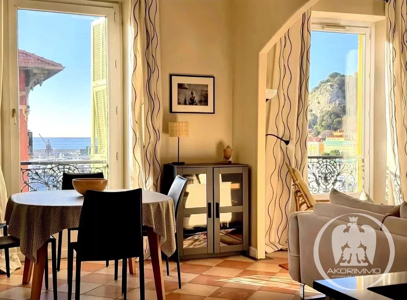 Apartamento luminoso de un dormitorio en Niza. 2 ambientes en el último piso con impresionantes vistas al mar y al puerto de Niza. Este elegante apartamento de 52 m² ofrece un espacio de vida cálido y acogedor. La luminosidad de las habitaciones, acentuada por grandes ventanales, aporta una atmósfera agradable y amigable.