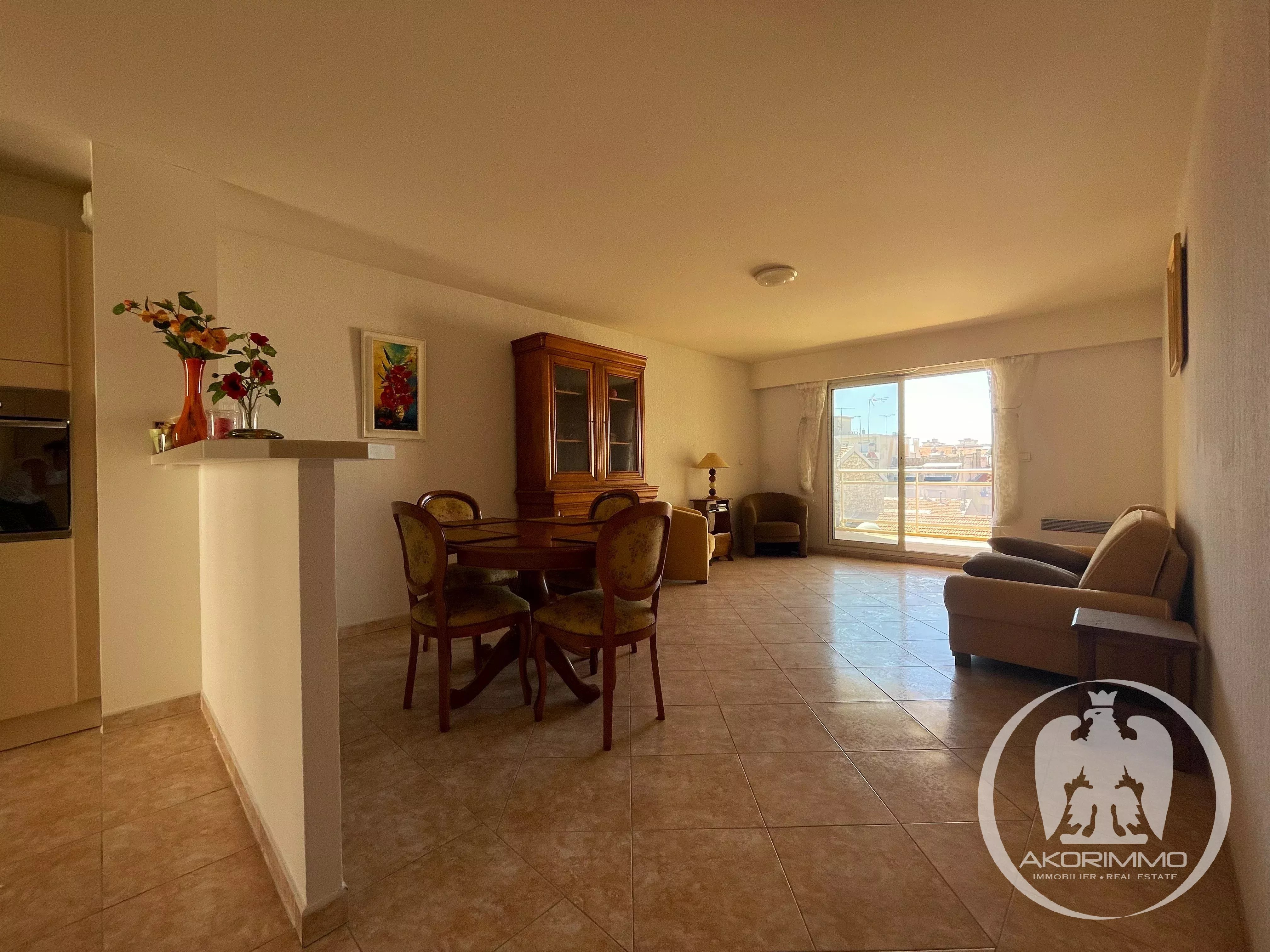 Niza Centro GAMBETTA / LE PIOL: Cerca del mercado de la Libération, tranvía y comercios, al fondo de una calle sin salida tranquila, cómodo apartamento de 3 habitaciones en una pequeña residencia reciente de 2004. En la penúltima planta con ascensor, dispone de un hermoso espacio de vida atravesante con terraza, vistas despejadas y soleadas, cocina abierta con salida a balcón, zona de descanso con dos dormitorios con armarios empotrados y en absoluta tranquilidad, baño y aseo independientes. Buen estado general, doble acristalamiento, persianas eléctricas y centralizadas. Una bonita bodega en la planta baja completa este bien raro. Gastos bajos: 92 €/mes.