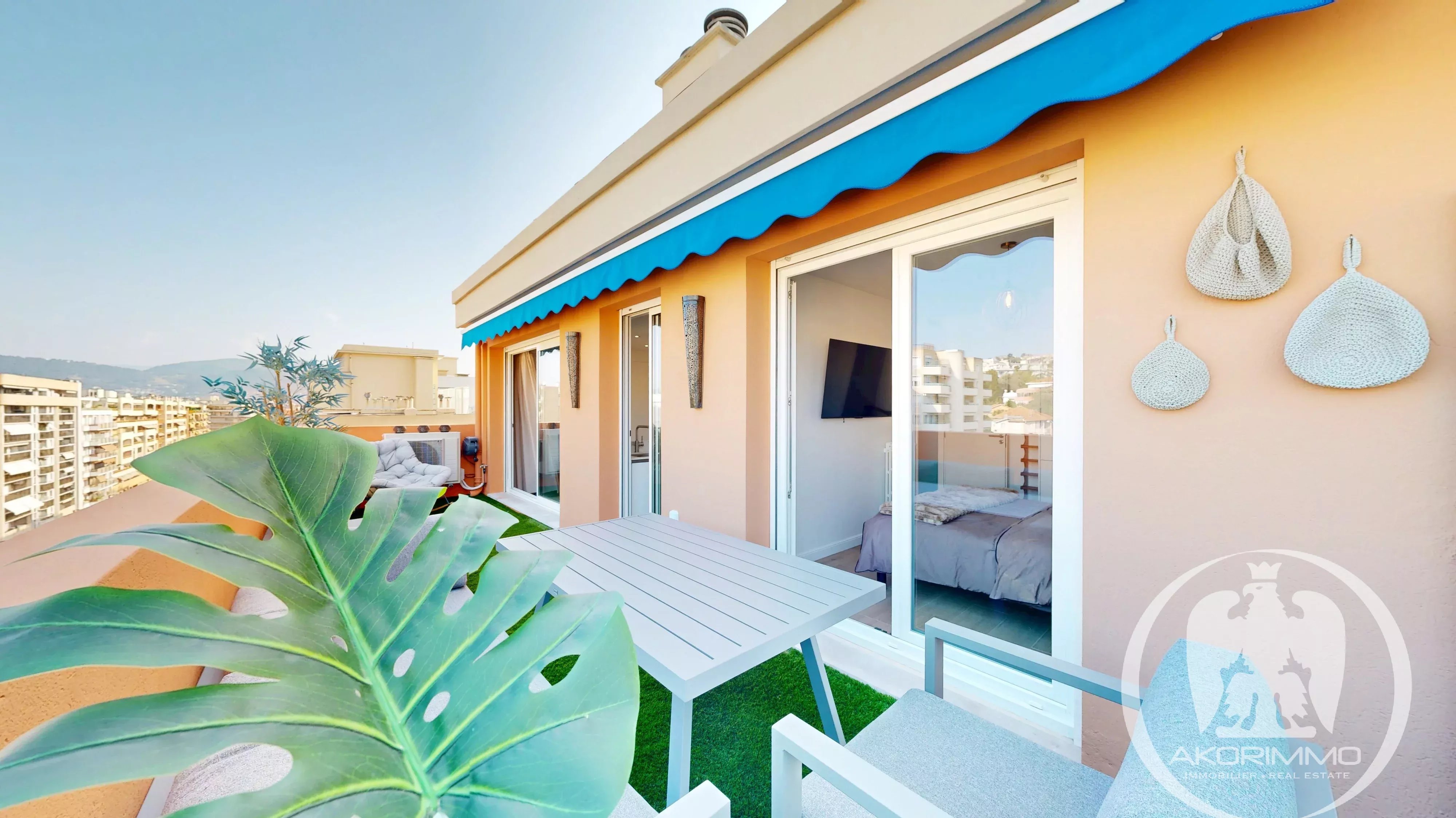 NIZA - RUE DE FRANCE / PROMENADE: En una bonita residencia bien cuidada, magnífico piso de 3 ambientes en el último piso con gran terraza de 17 m² a cielo abierto, vistas despejadas a la ciudad y al mar, se vende llave en mano.