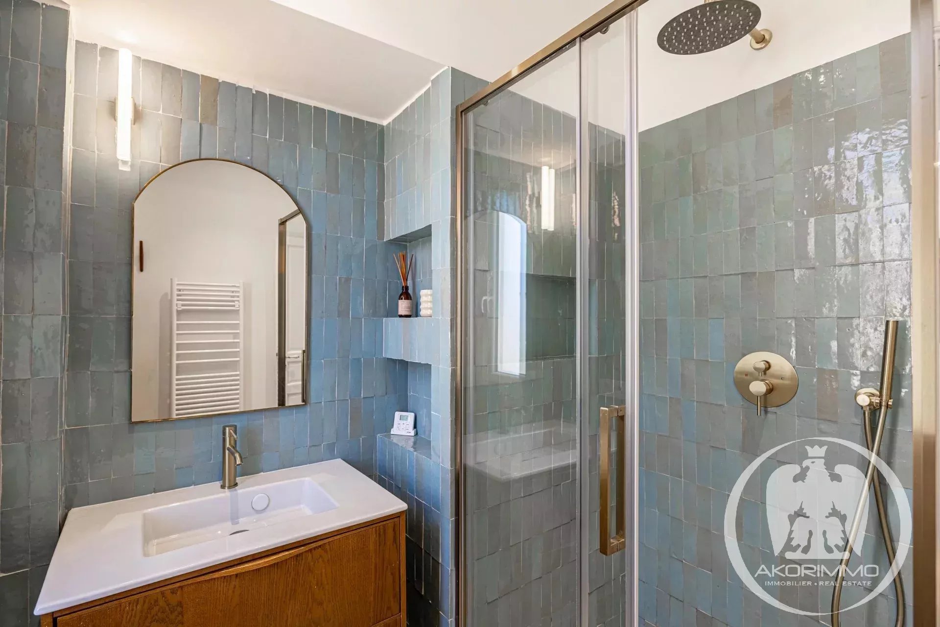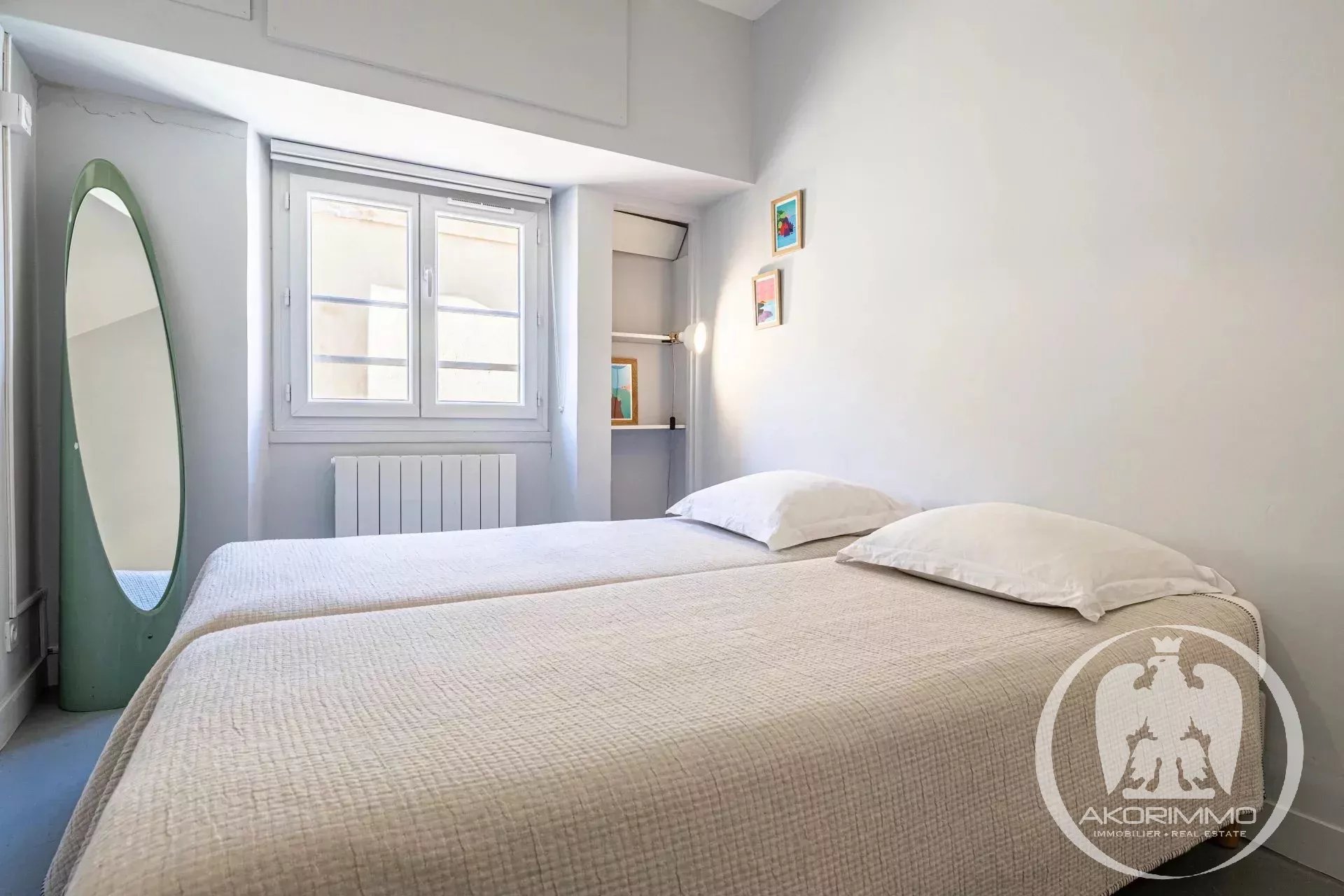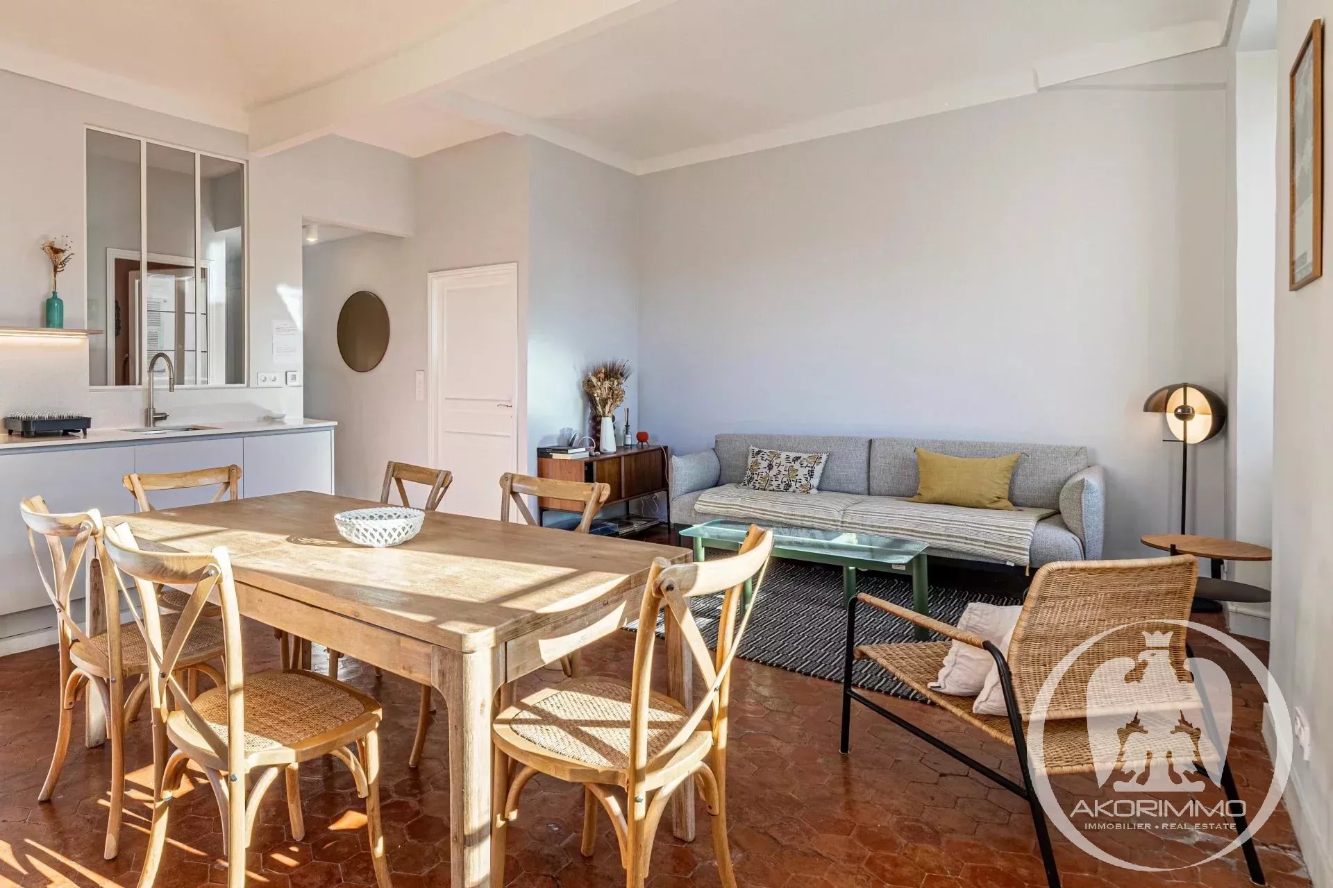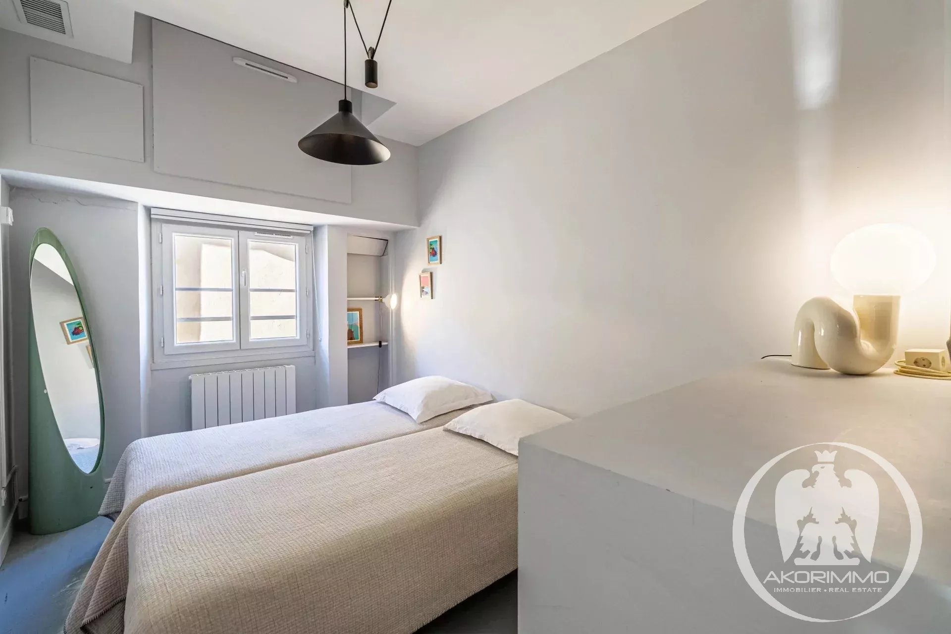 Bañado en luz todo el día gracias a sus tres grandes ventanales en el salón, el apartamento ofrece unas vistas impresionantes de los tejados de Vieux-Nice y de las colinas, en un ambiente tanto tranquilo como auténtico.