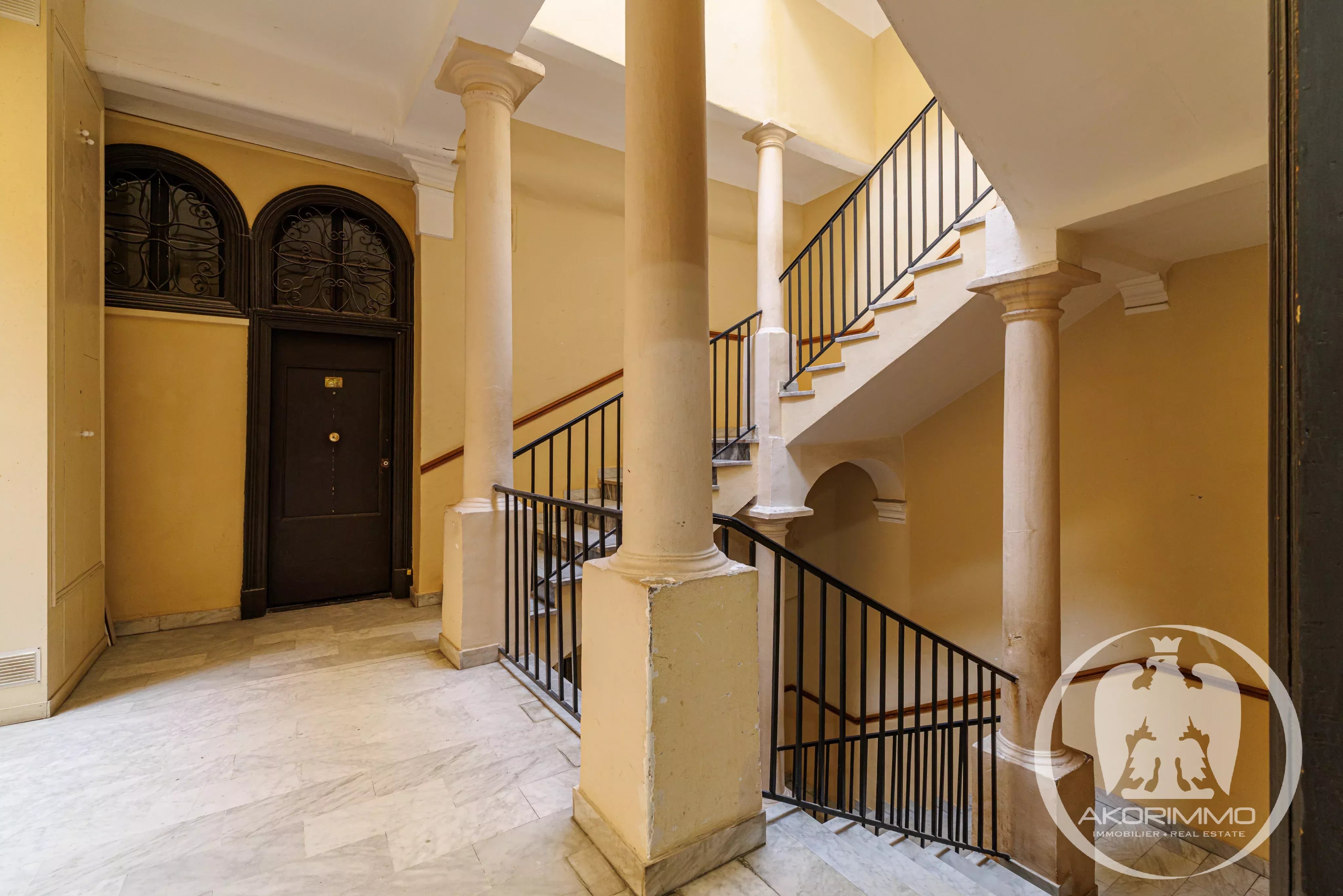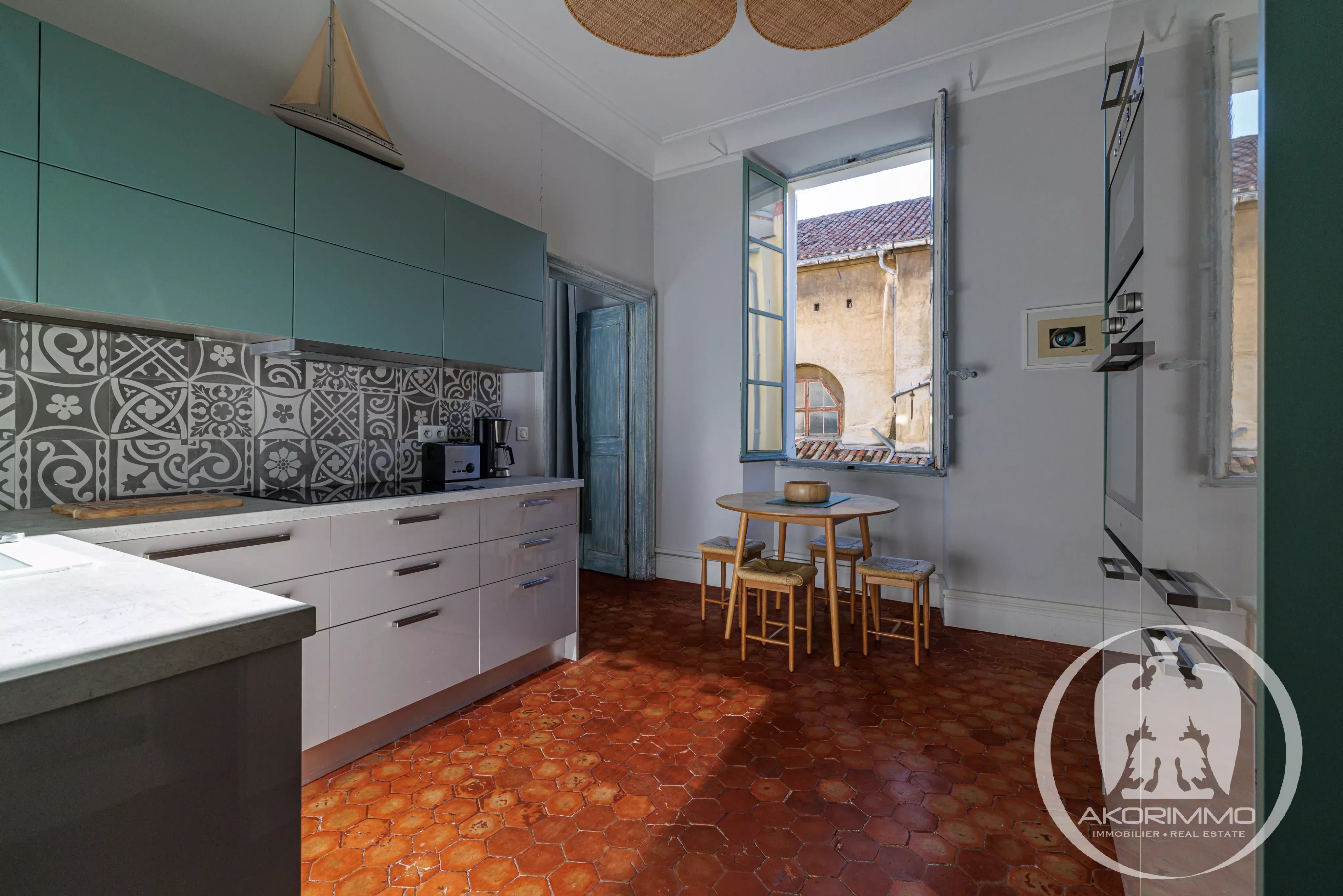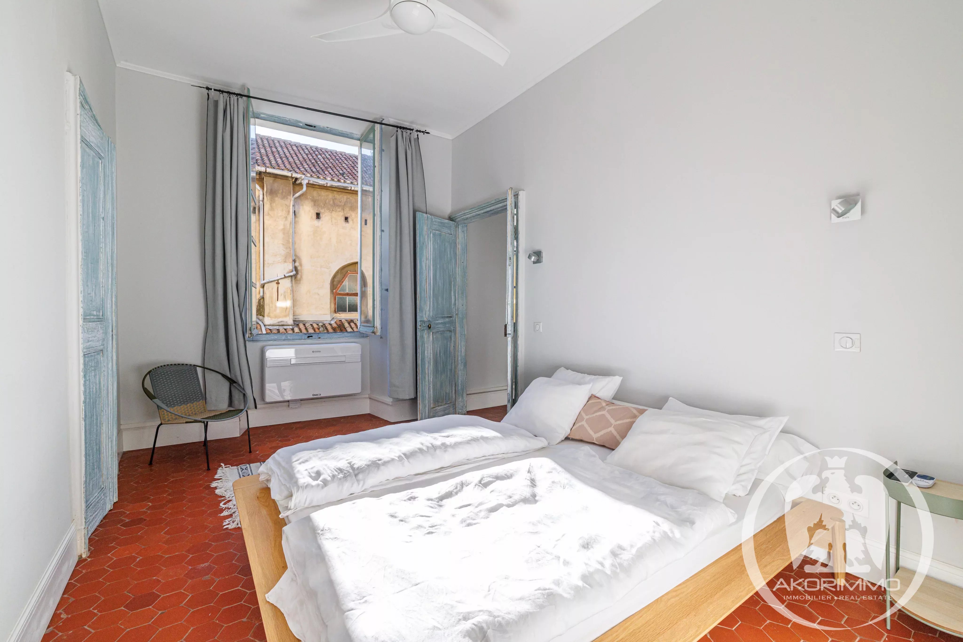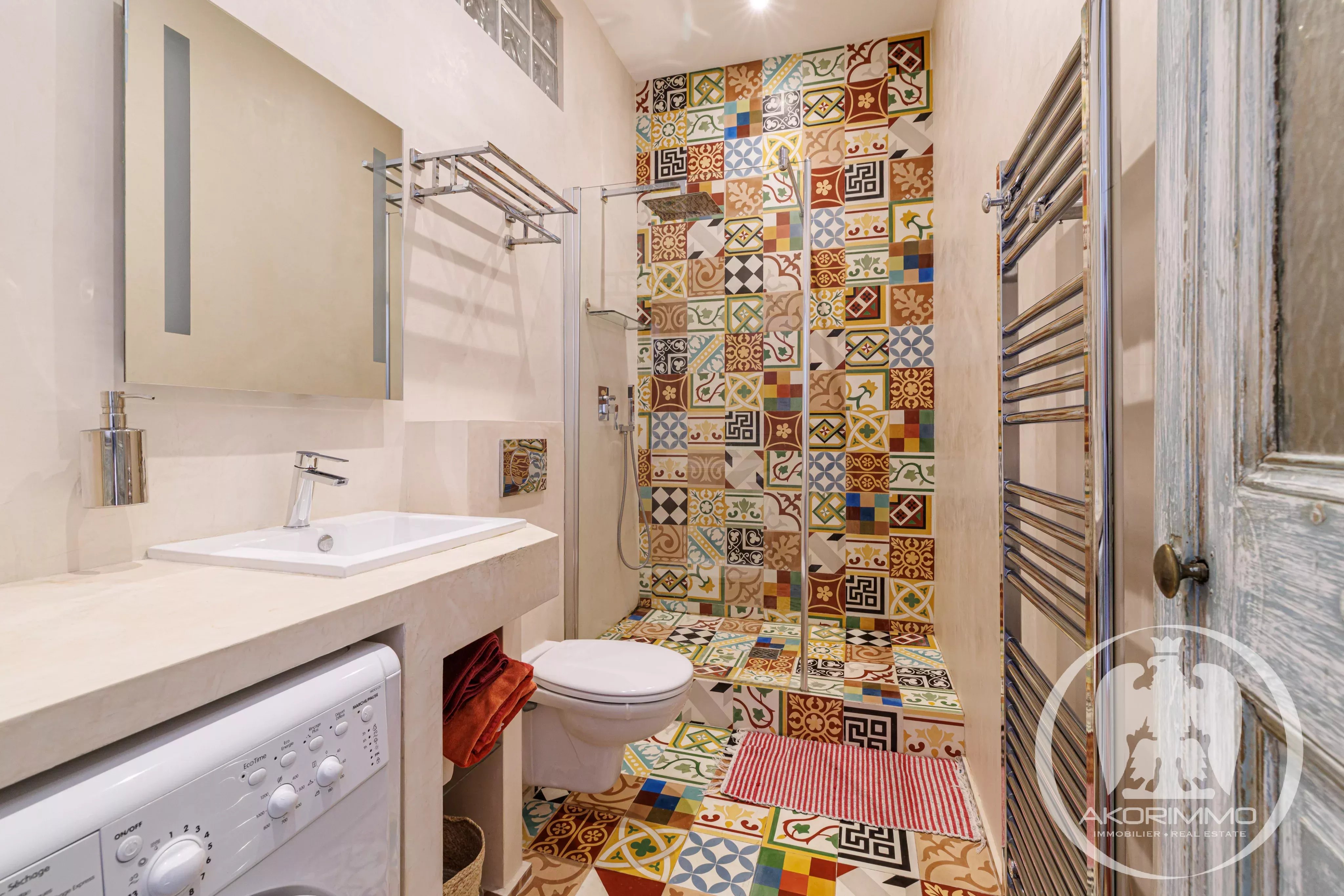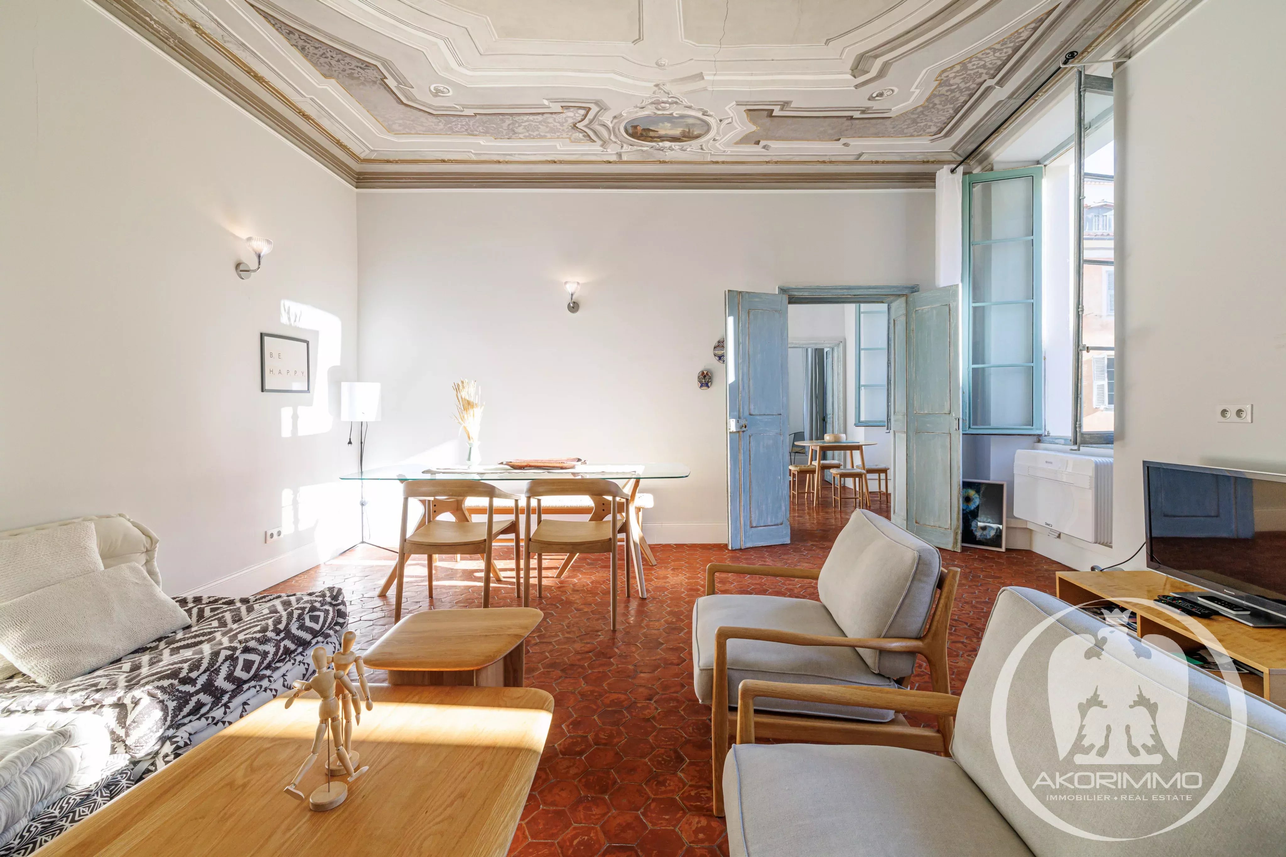 Los elementos originales han sido cuidadosamente conservados y puestos en valor: suelos de baldosas antiguas en todo el apartamento, fresco decorativo en el techo y carpintería de madera decapada. Las ventanas ofrecen vistas despejadas a las fachadas envejecidas de un edificio catalogado como Monumento Histórico, creando así una atmósfera tranquila e íntima en el corazón de la ciudad vieja.
