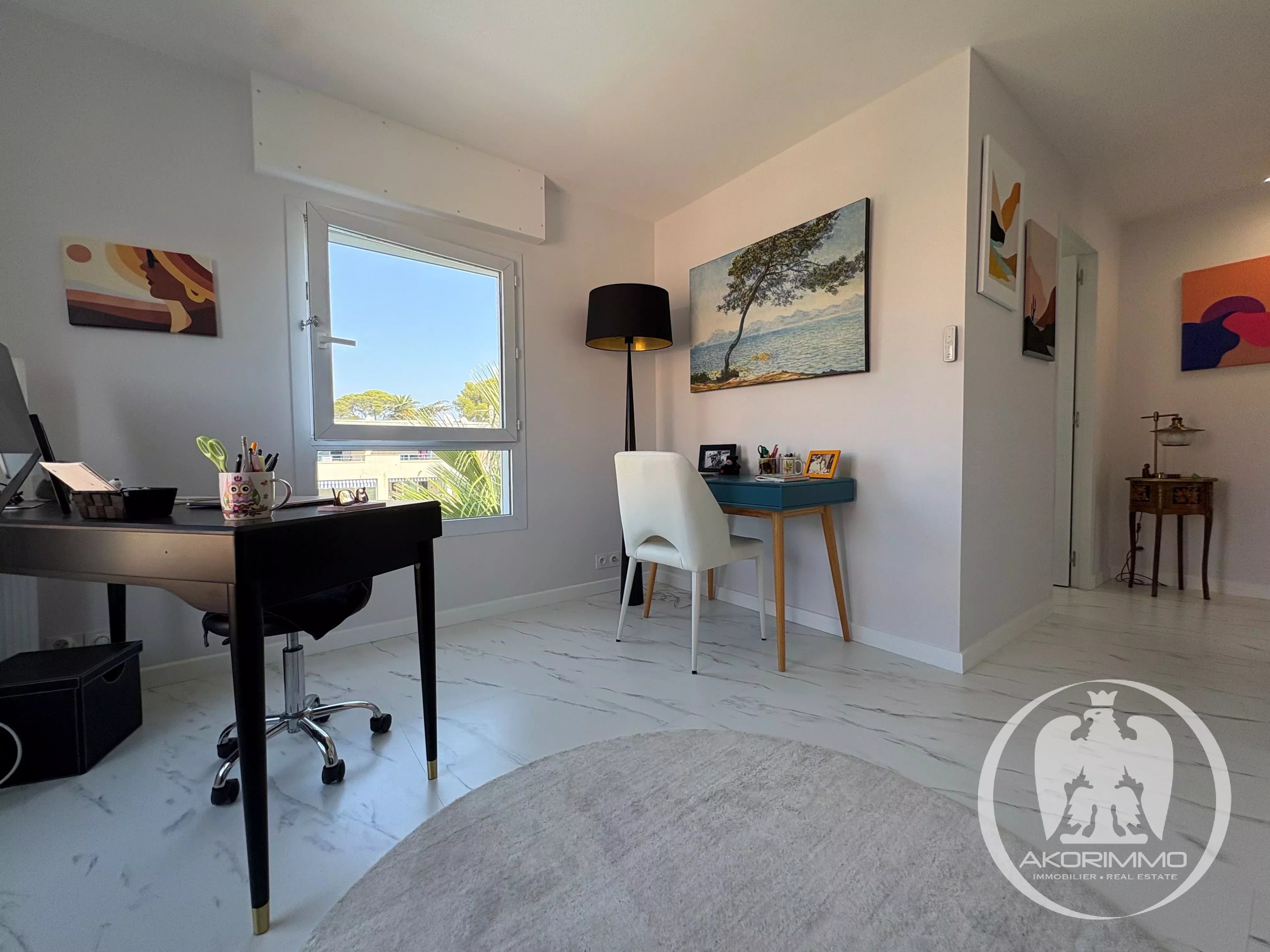 El apartamento, con una superficie de 92 m², fue completamente renovado en 2024 con mucho gusto y acabados de calidad. Se encuentra en la tercera y última planta, en la esquina suroeste del edificio.