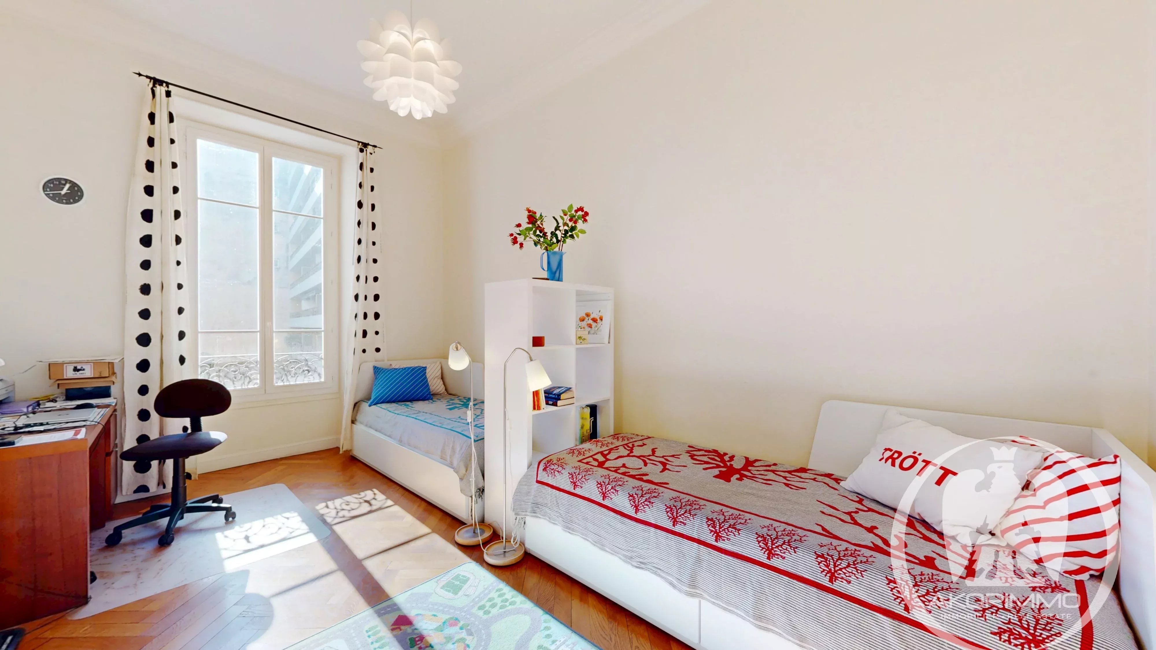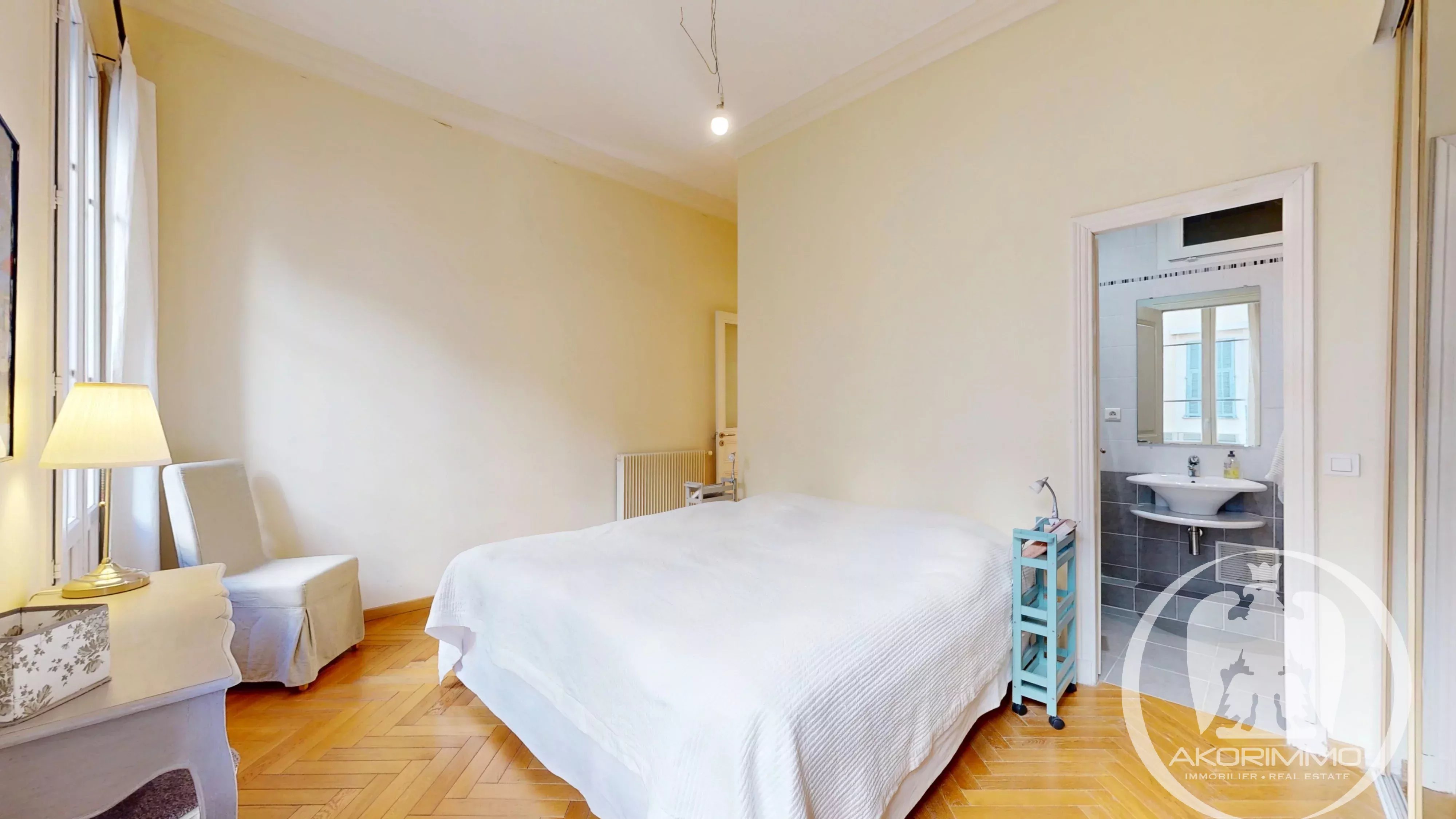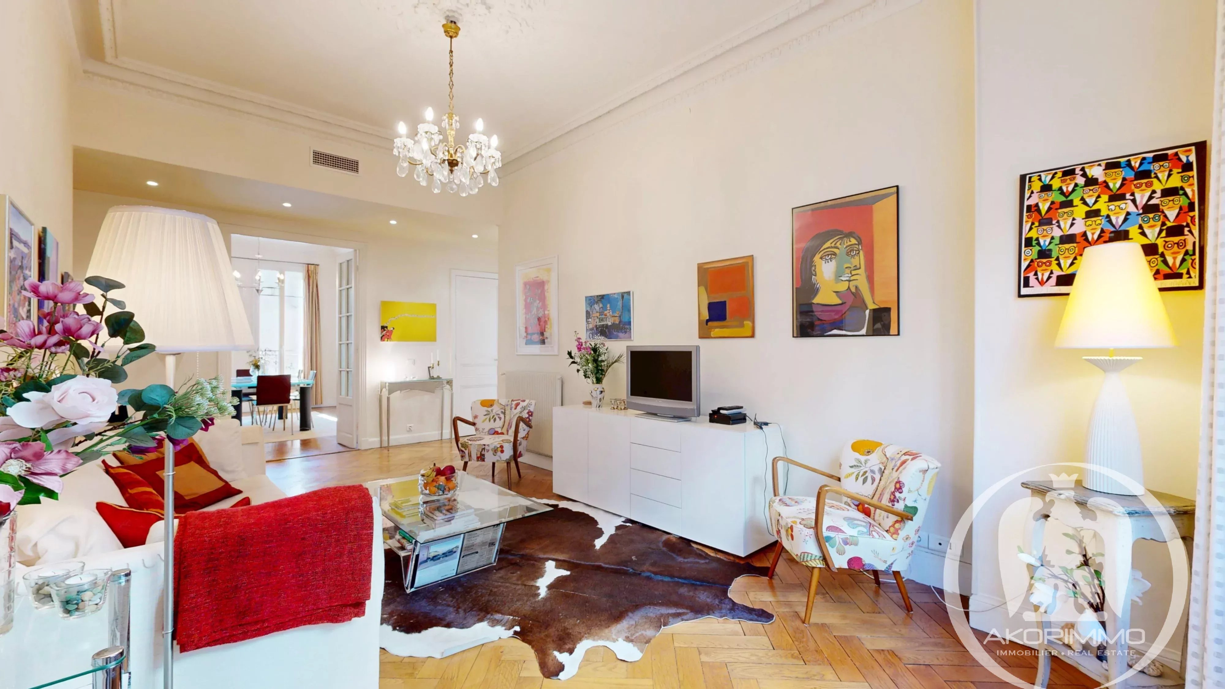 A 100 m del mar, en un precioso edificio Belle Époque, magnífico piso de 4/5 habitaciones transversal con balcón.