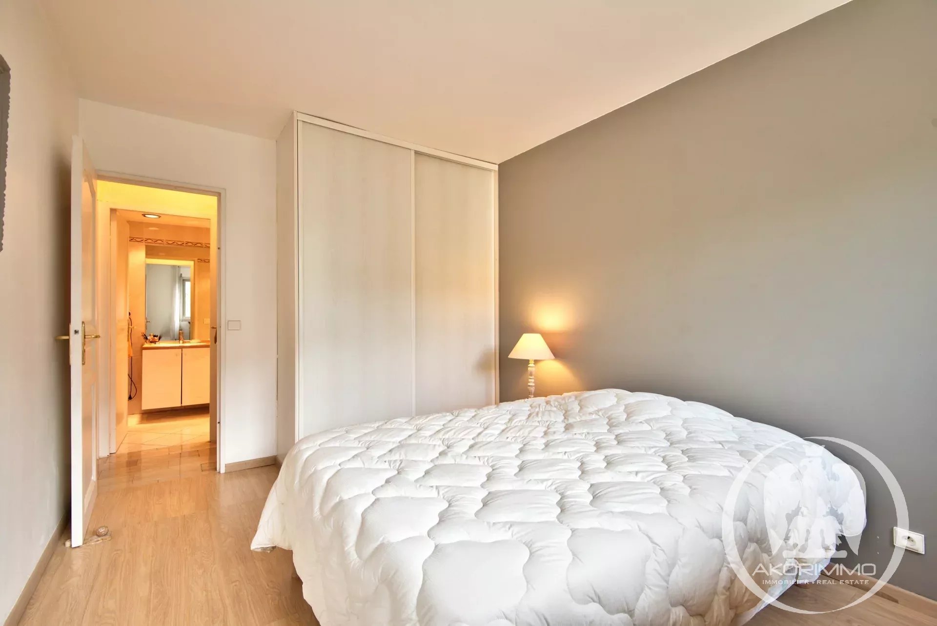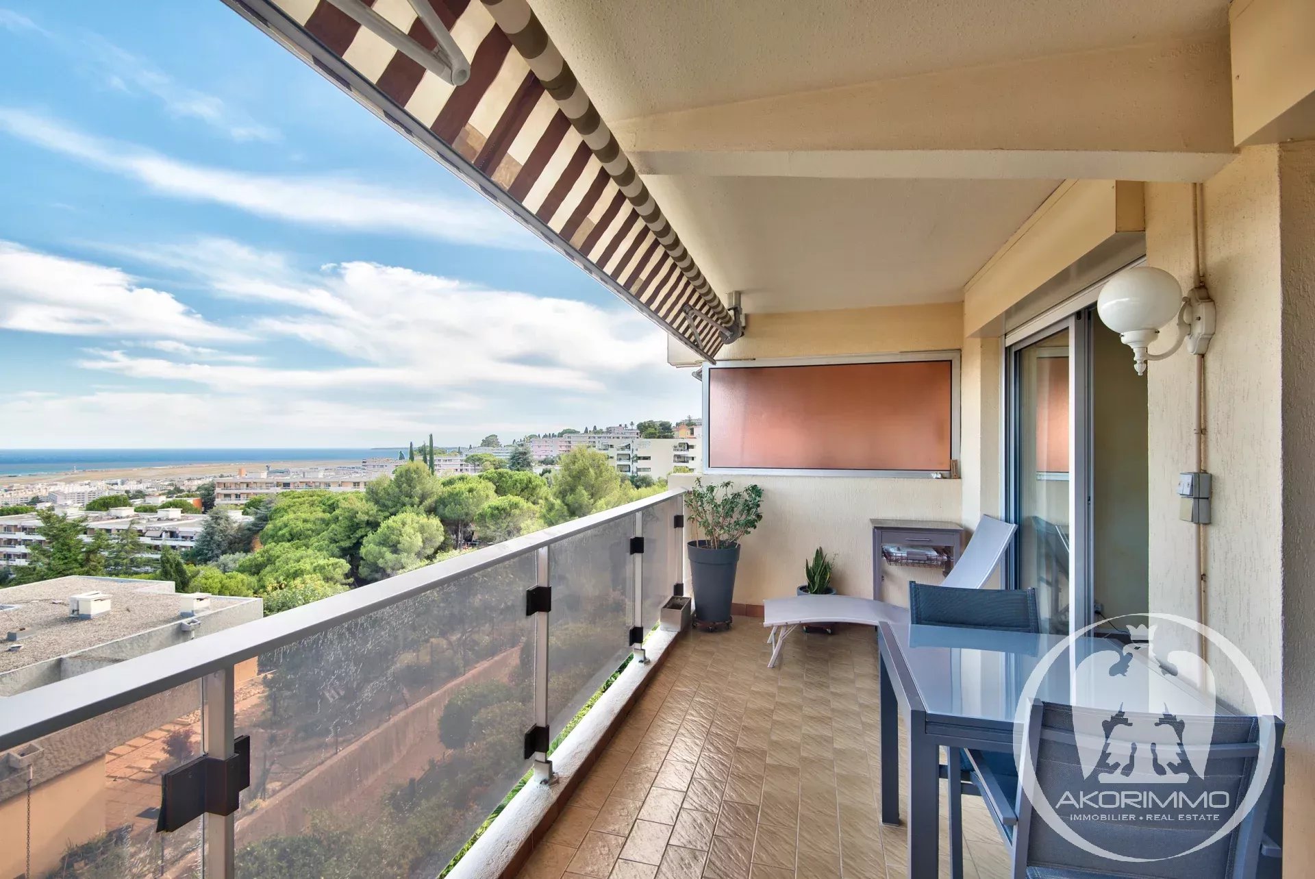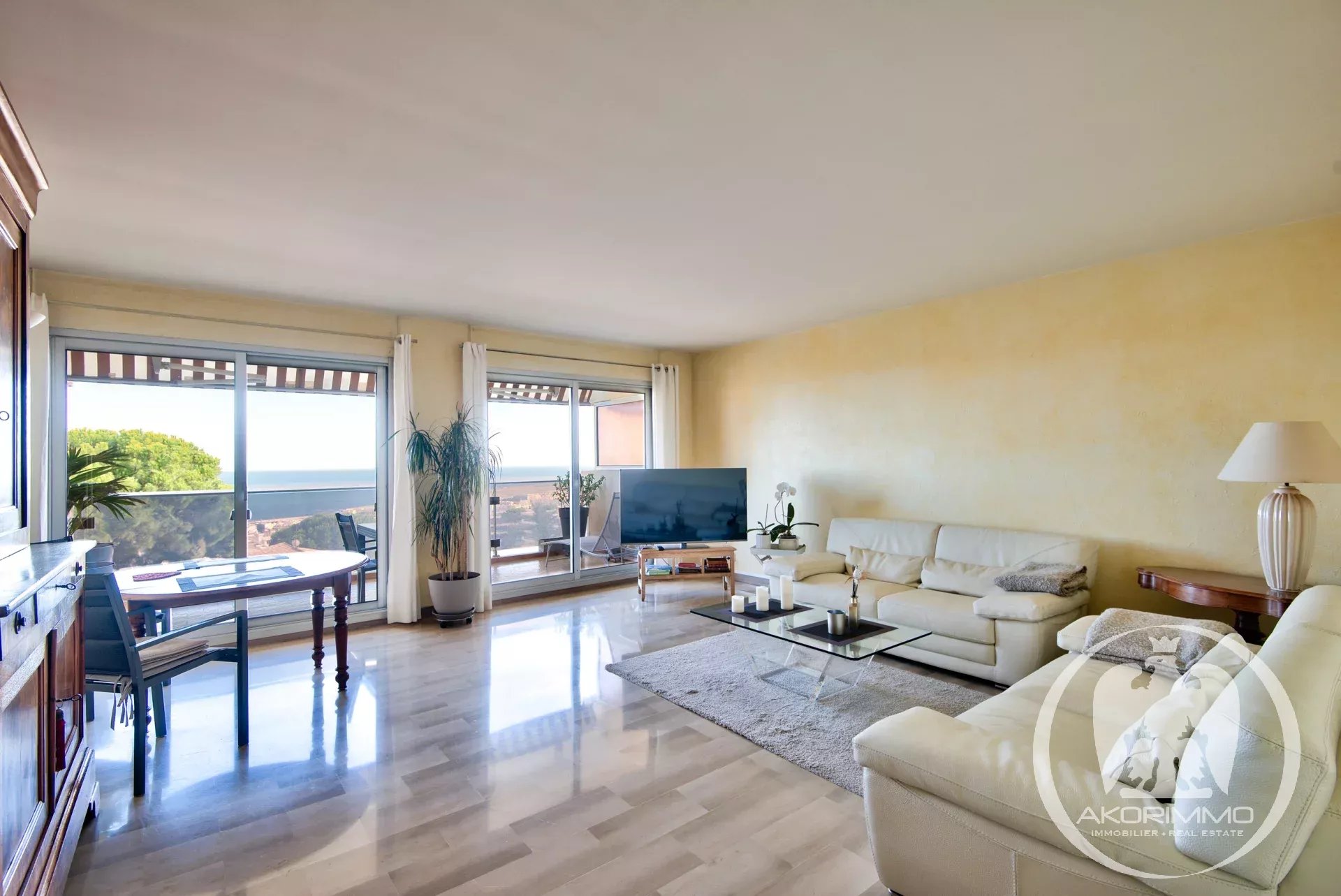 Il se compose d'une entrée, d'un séjour lumineux avec deux grandes baies ouvrant sur une terrasse avec vue mer. Une cuisine indépendante, deux chambres, une salle de bains et un WC séparés.