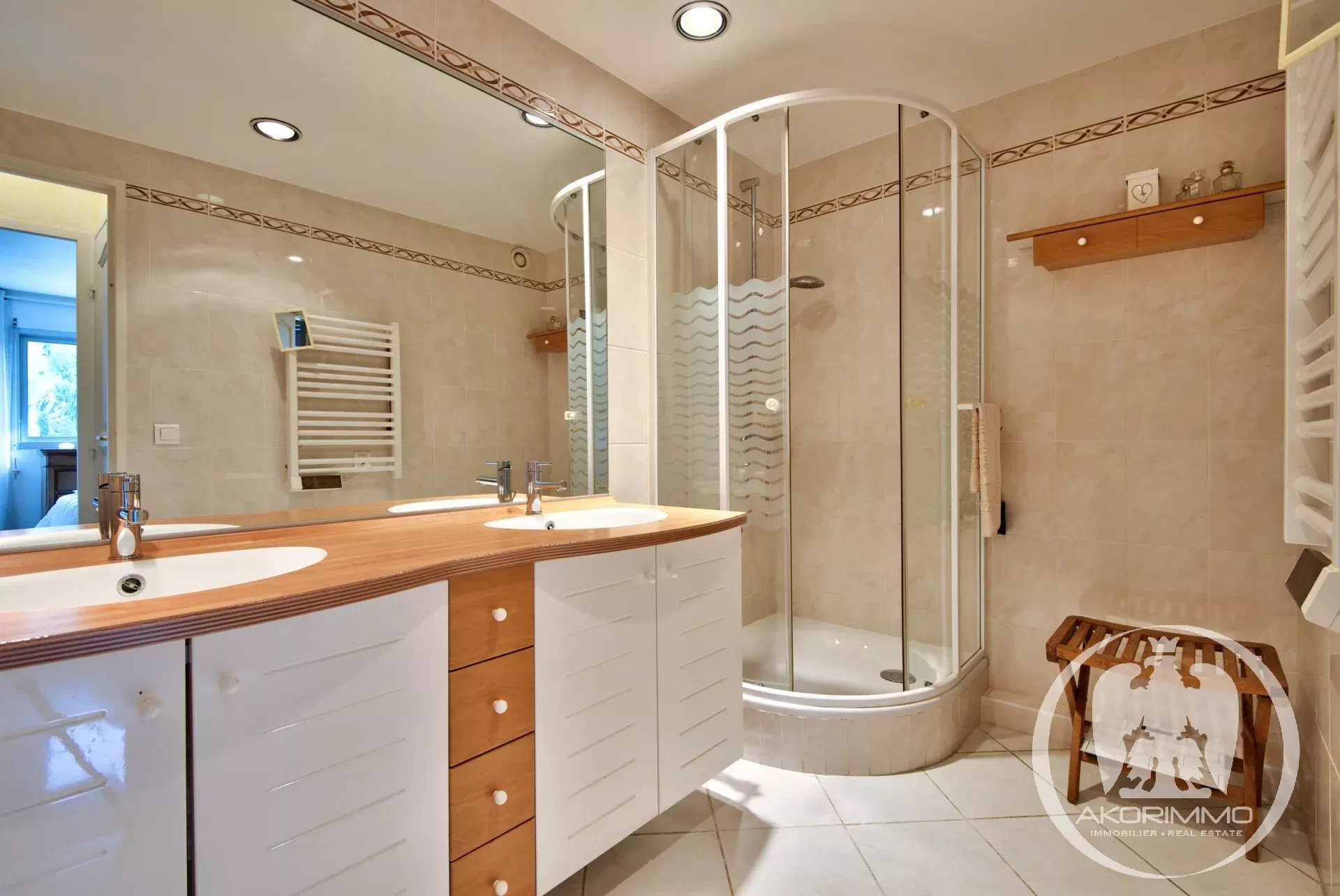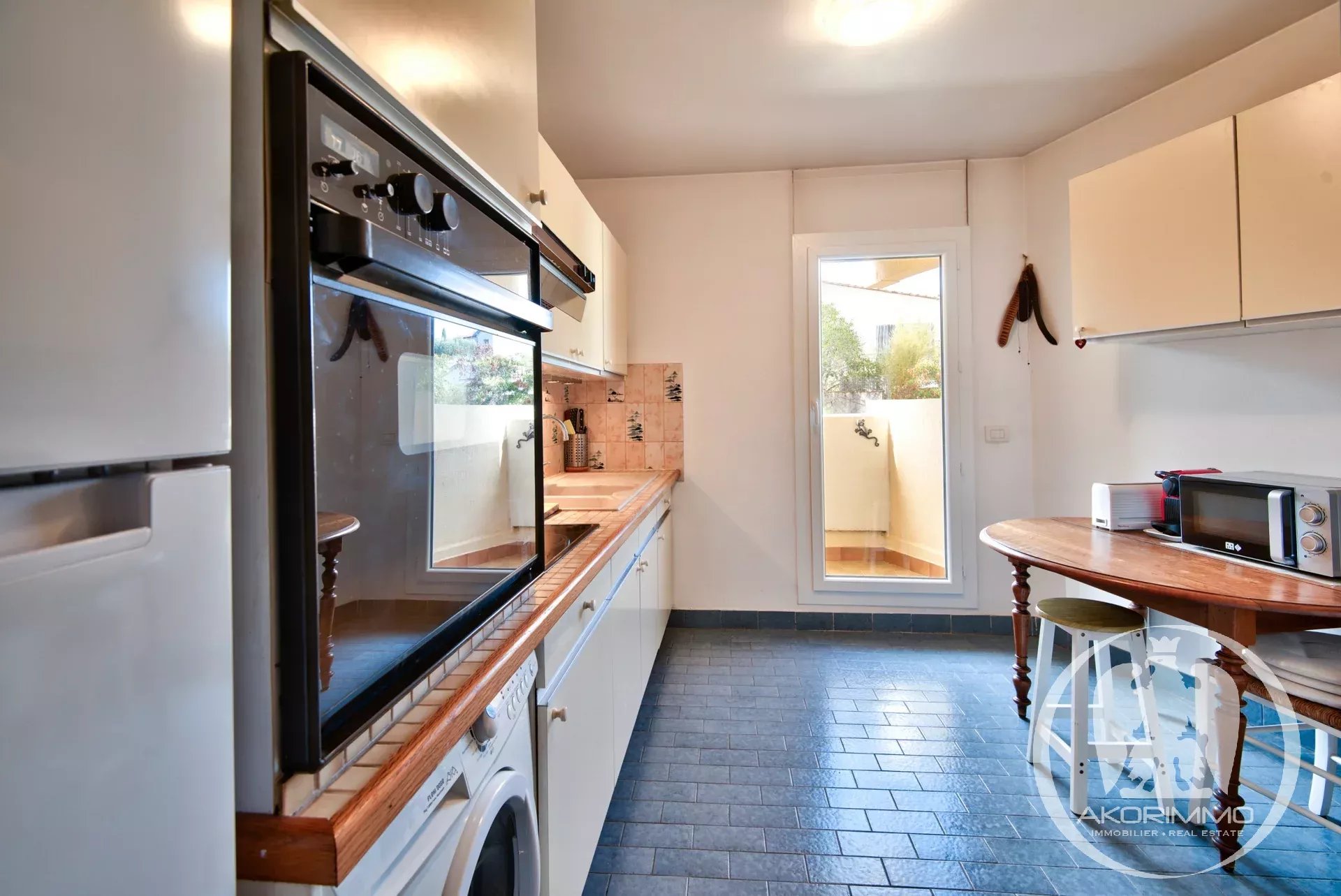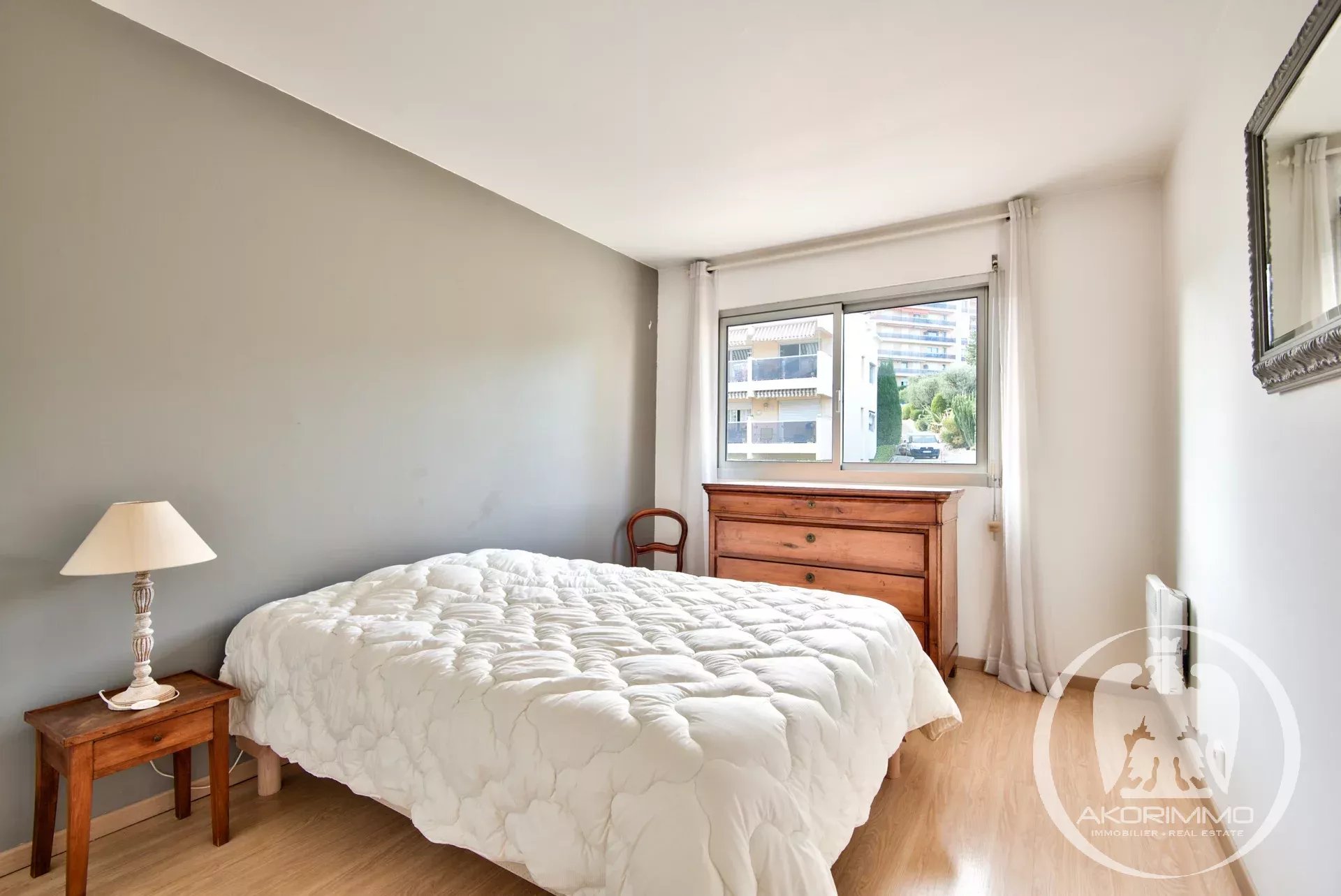 Il se compose d'une entrée, d'un séjour lumineux avec deux grandes baies ouvrant sur une terrasse avec vue mer. Une cuisine indépendante, deux chambres, une salle de bains et un WC séparés.