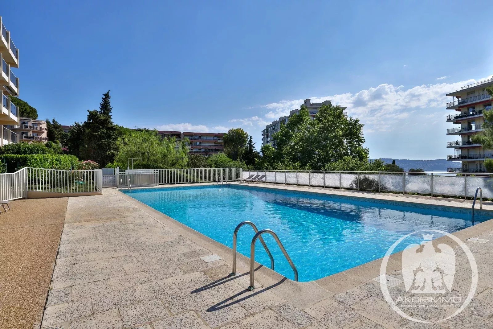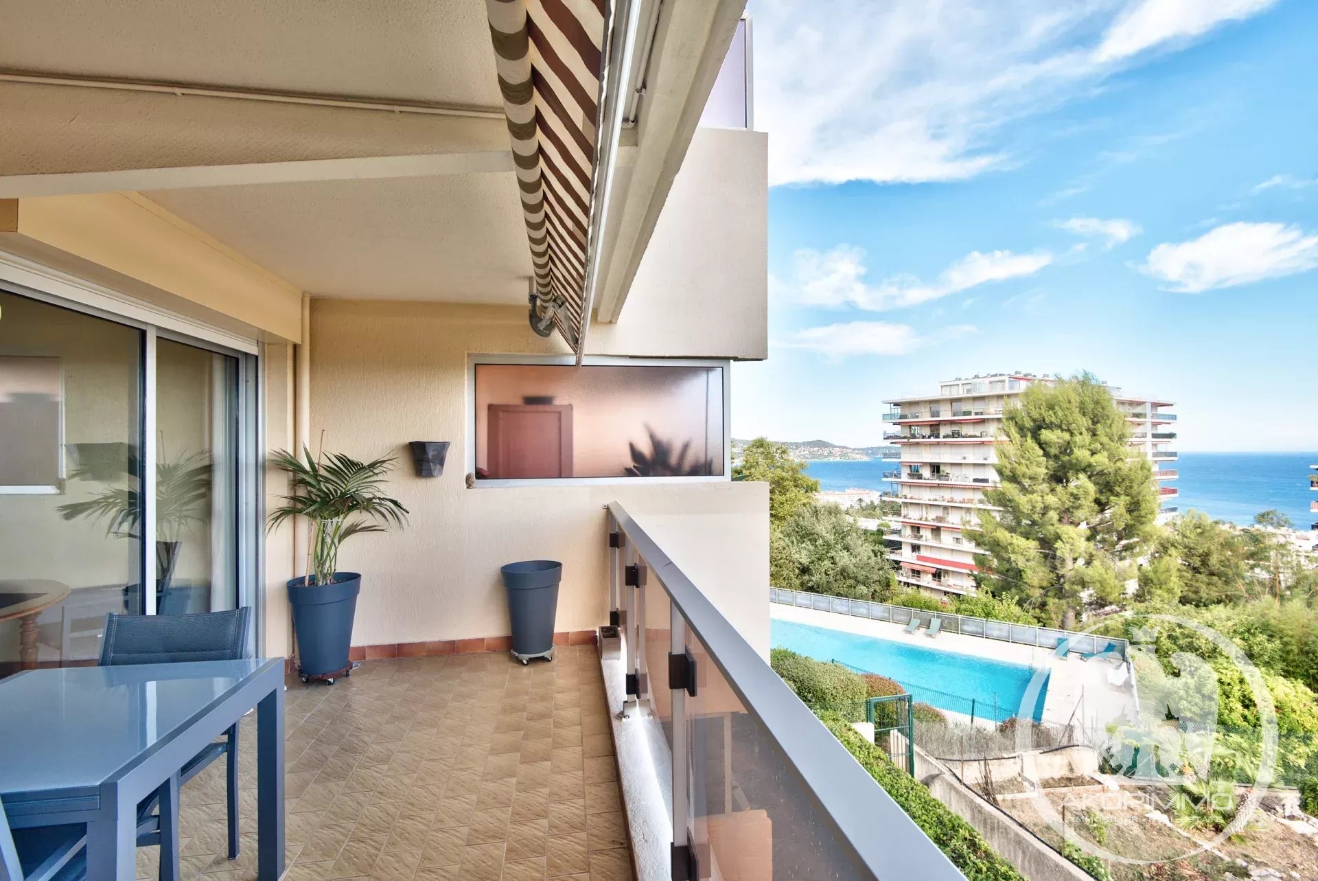 NICE FABRON, Au sein d'une résidence de bon standing avec espaces verts et piscine, appartement 3P traversant au calme absolu avec vue sur la mer.