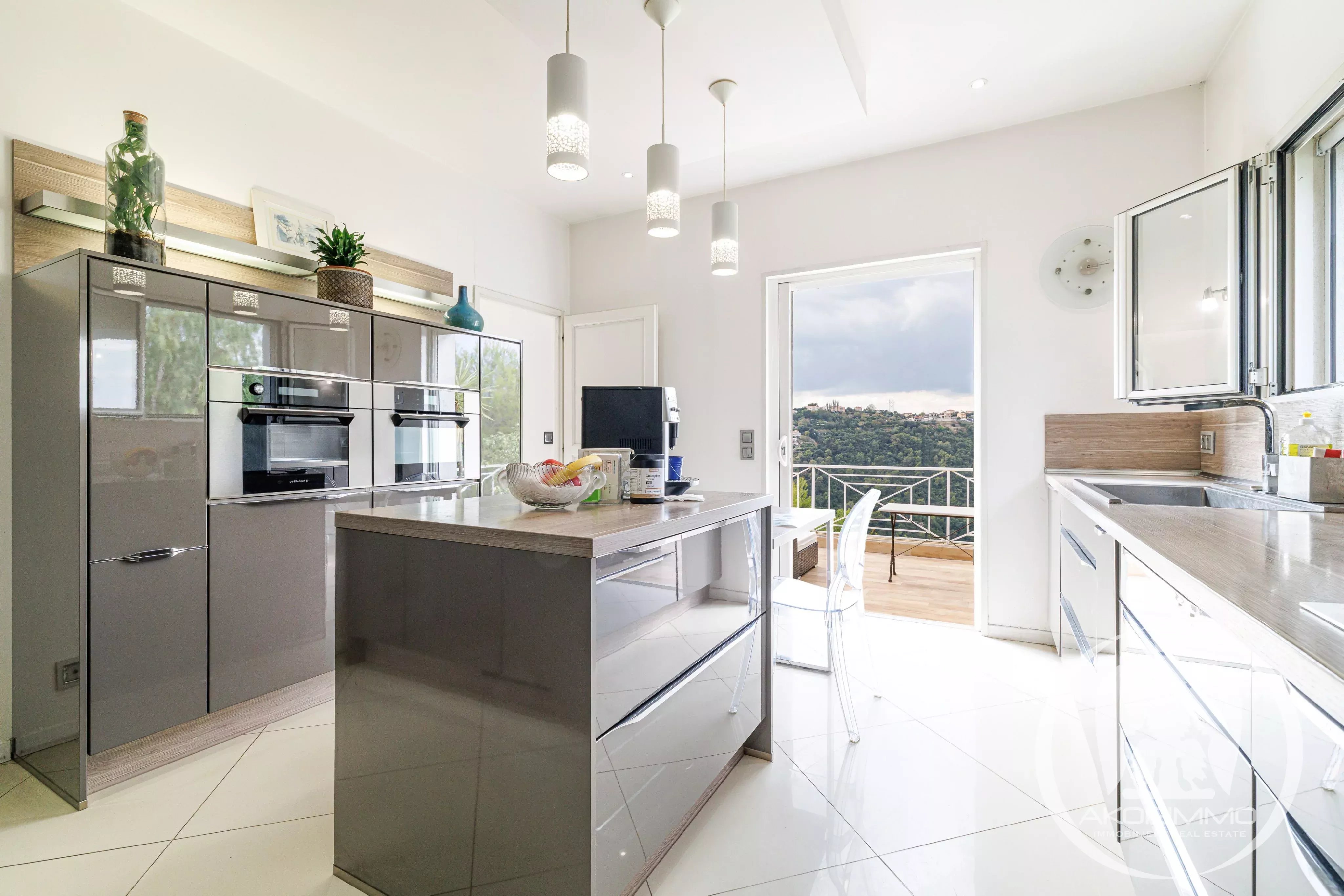 Elle est en position dominante, exposée sud-ouest, avec une très belle vue dégagée sur les montagnes. Très belles prestations (chauffage au sol par pompe à chaleur et double vitrage tout en aluminium).