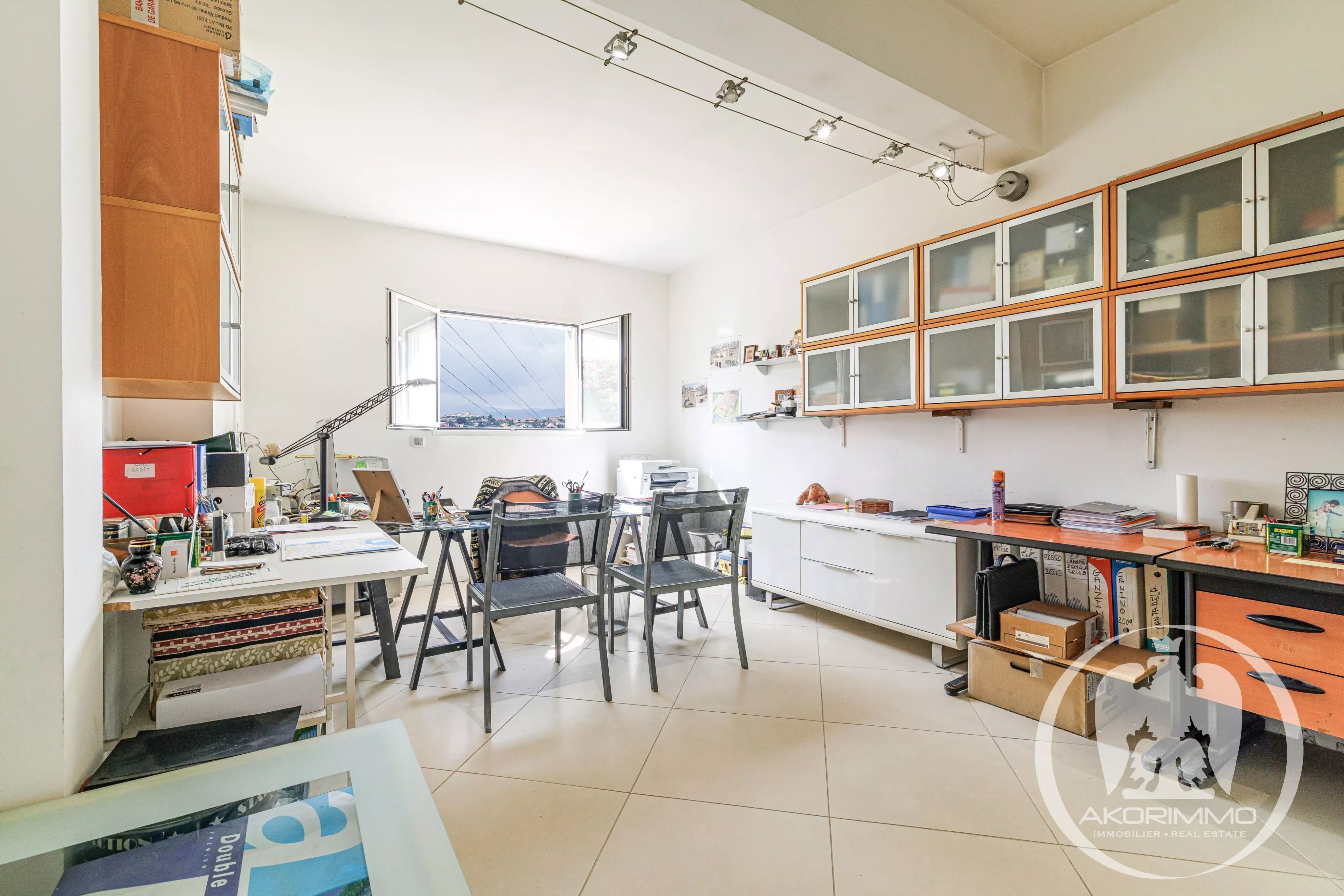 Au rez-de-chaussée : une entrée, un studio indépendant aménagé en bureau.