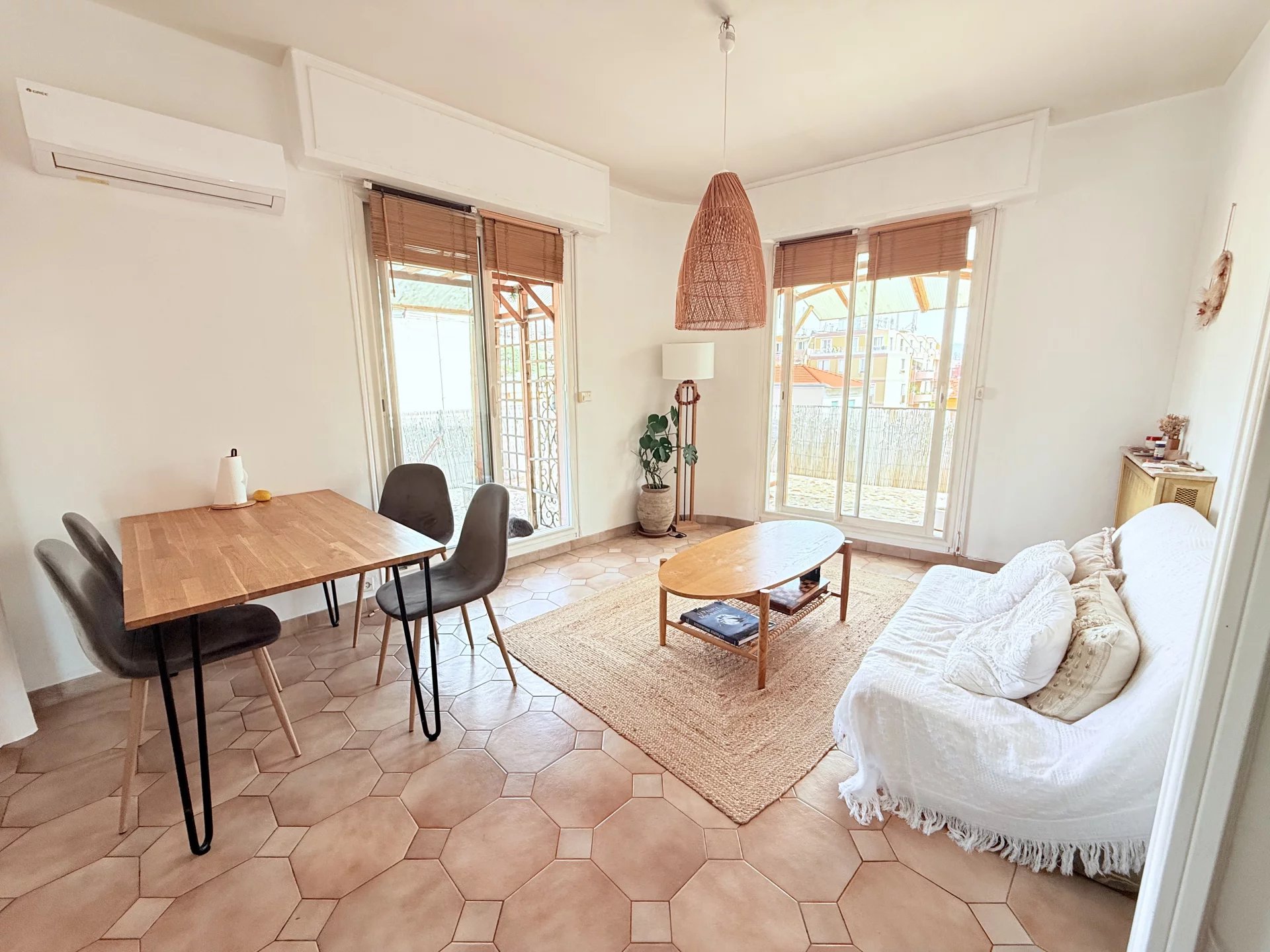 GRAND 2 PIECES DE 59M² (NON MEUBLE) AVEC DOUBLE SEJOUR POUVANT SERVIR DE BUREAU OU CHAMBRE D'APPOINT, CHAMBRE, CUISINE SEPAREE, SALLE DE DOUCHE AVEC WC. CHAUFFAGE ET EAU CHAUDE COLLECTIVE + CLIMATISATION RÉVERSIBLE GARAGE.