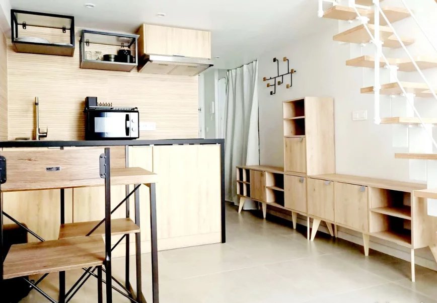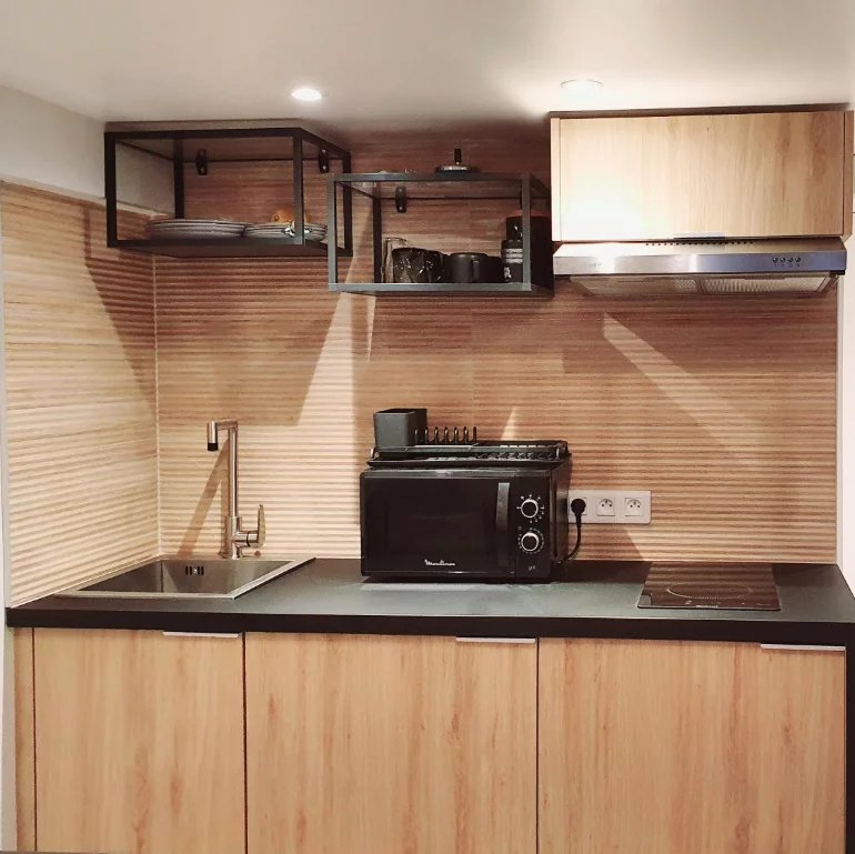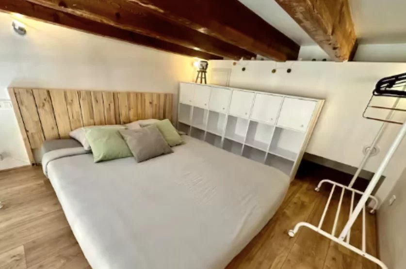 Il est composé d'une entrée avec rangement, salle d’eau avec WC, pièce principale avec cuisine fonctionnelle, mezzanine de 8m2 (hors loi carrez) en couchage.