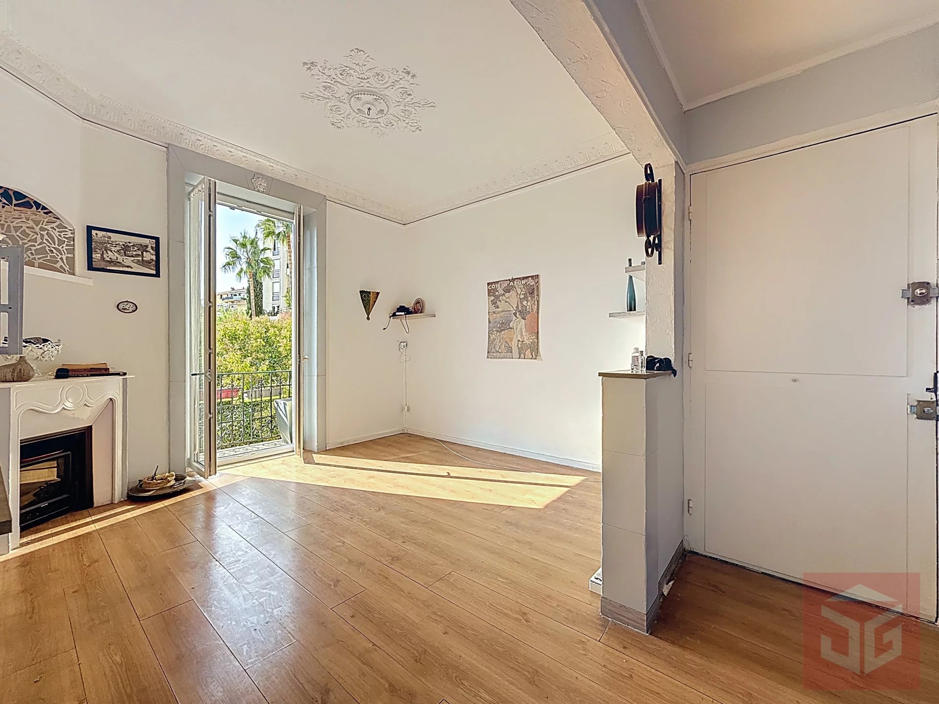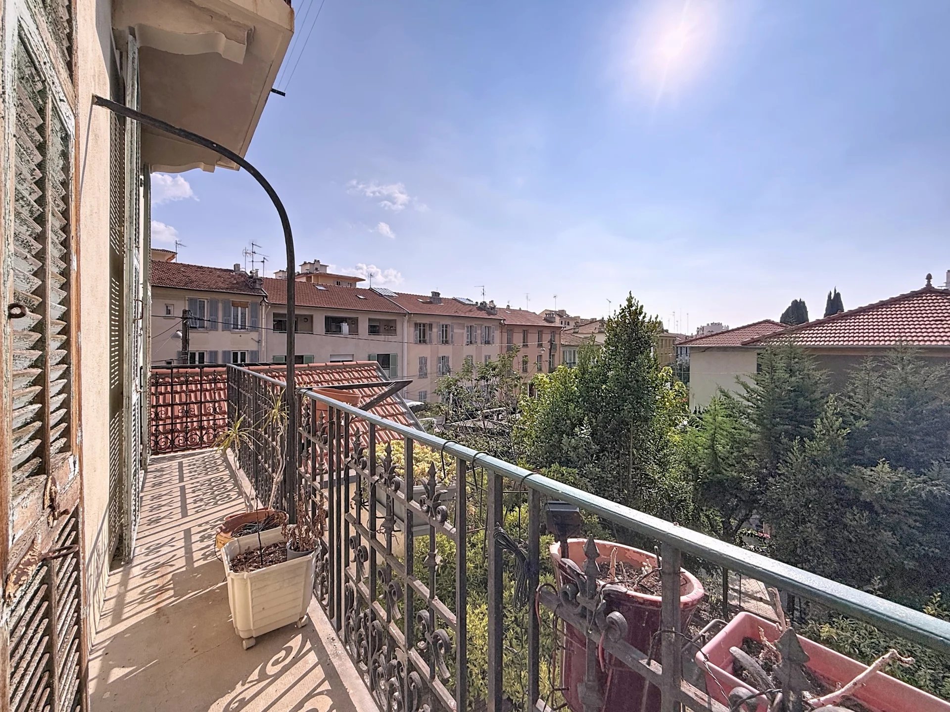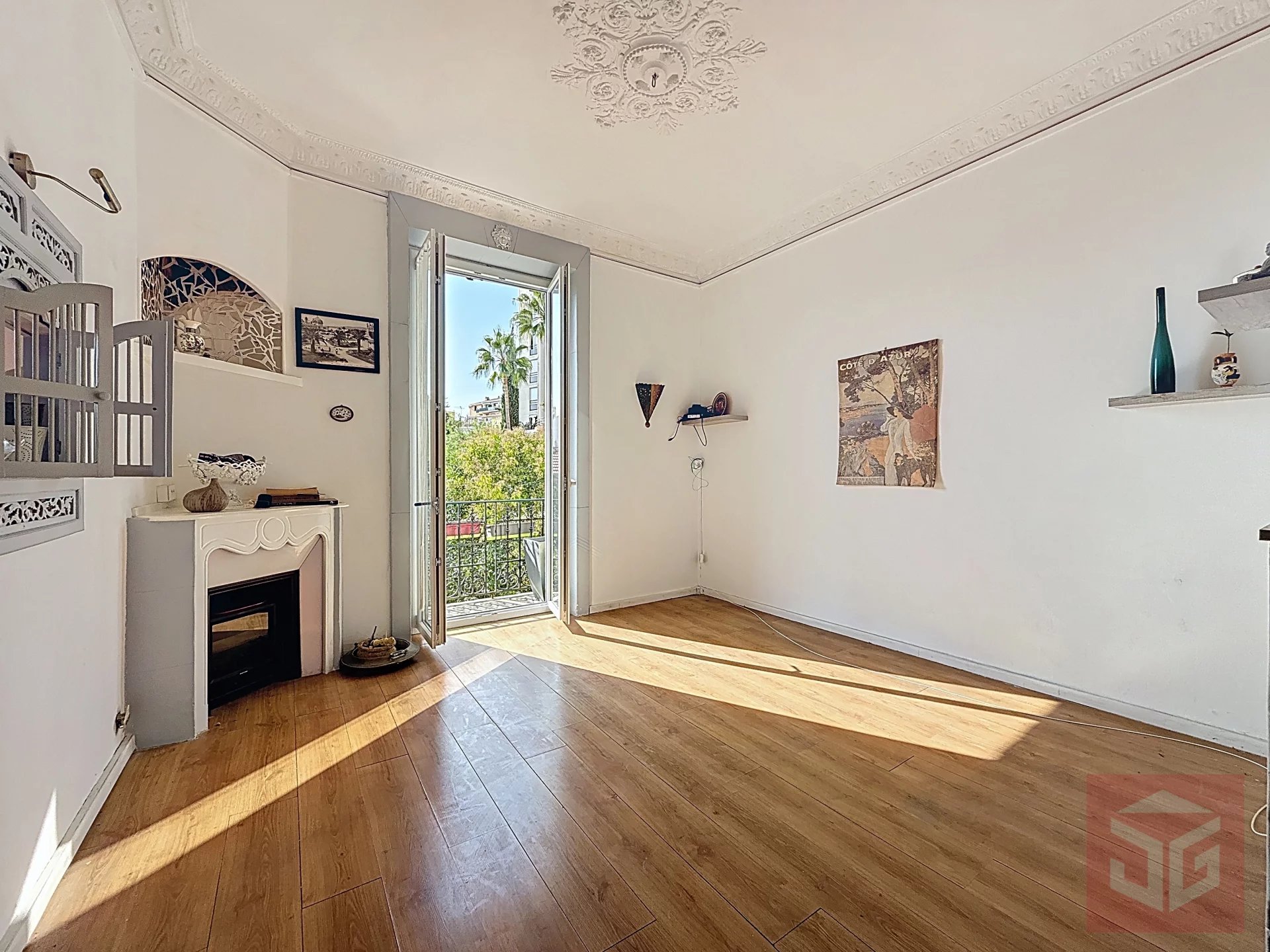 3 pièces de 52 m2 au sein d'un immeuble niçois de 2 étages bien entretenu, avec une entrée typique en carreaux de ciment.