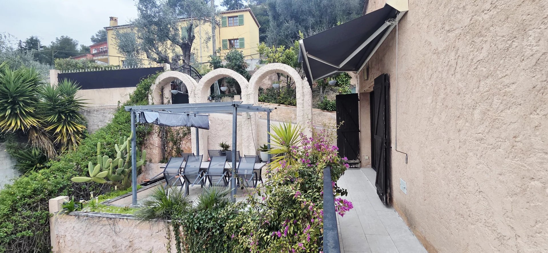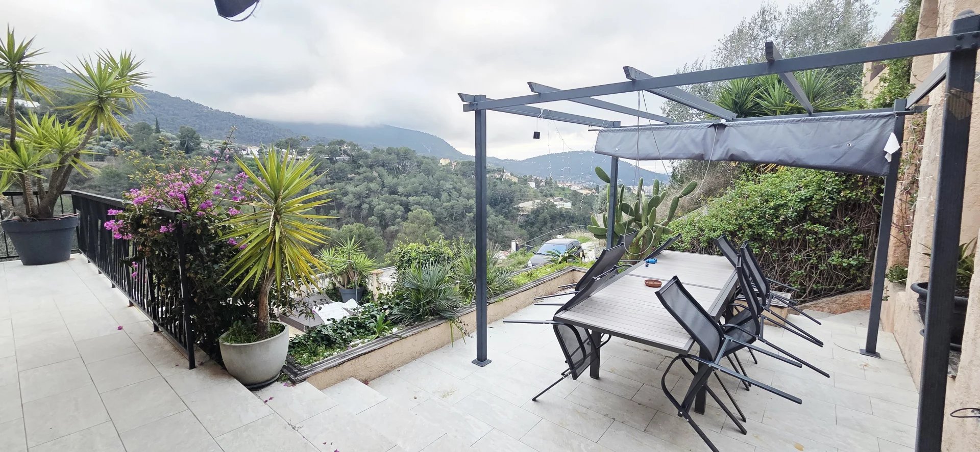 Sur les hauteurs de Drap, dans un secteur résidentiel au calme, haut de villa 4 pièces d’environ 107 m² exposé plein Sud, sans vis-à-vis.