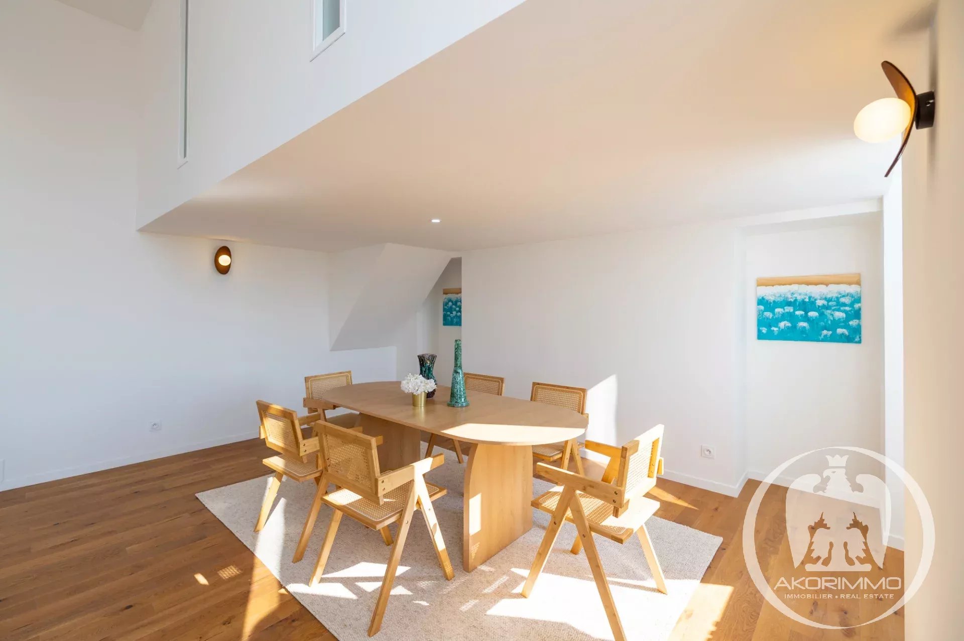 Rénové avec soin dans un esprit contemporain, en plus de sa localisation, l'appartement séduit par ses volumes, sa luminosité et la qualité de ses finitions. L'espace de vie comprend une vaste entrée, un double séjour, une salle à manger élégante et une cuisine entièrement équipée.