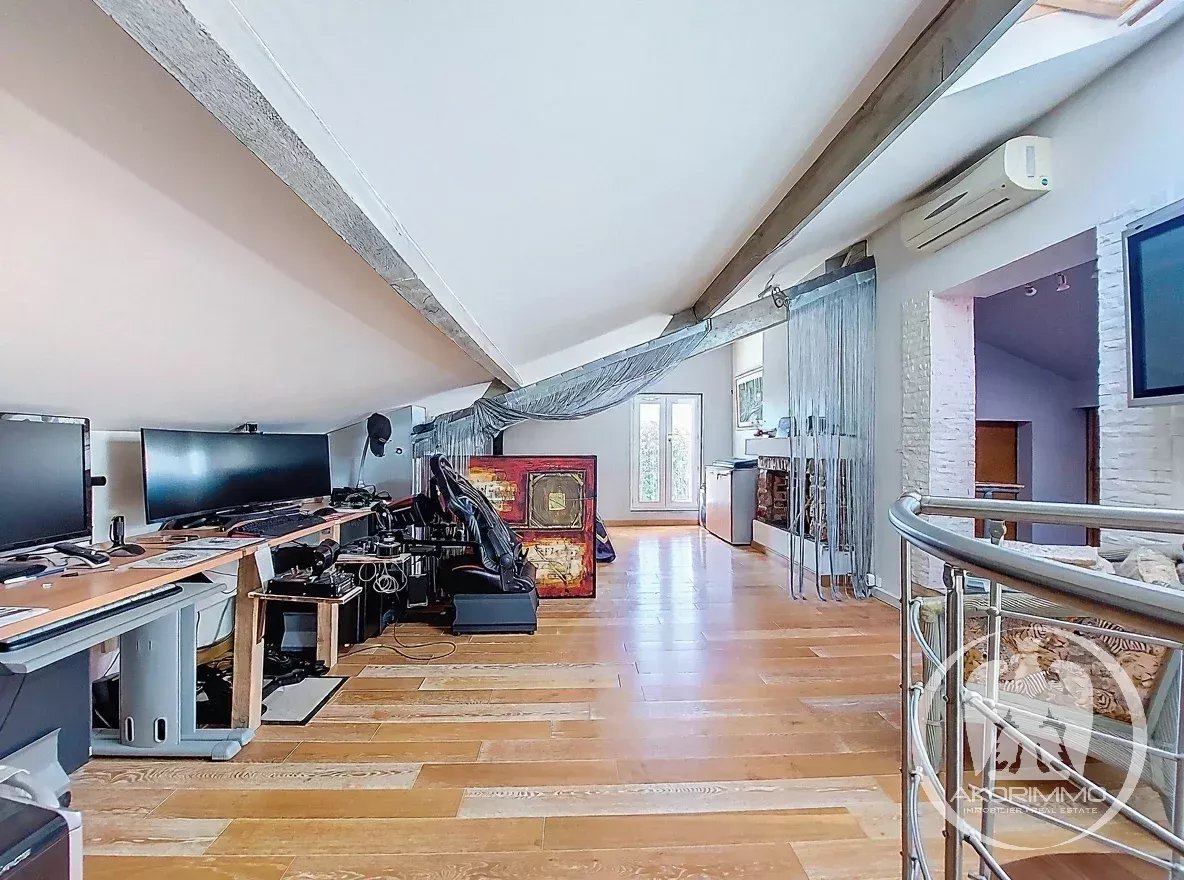 À l’étage, un grand espace de 60 m² en sous-pente avec deux chambres, espace bureau, salle d'eau avec WC.