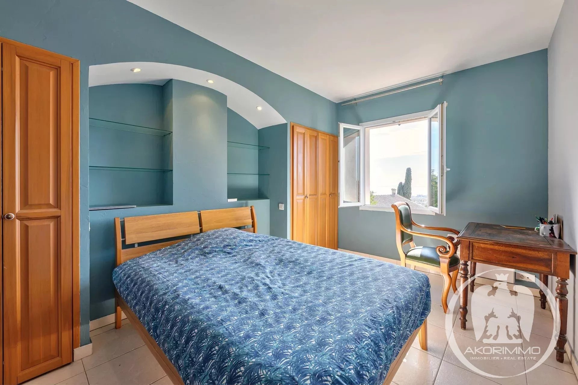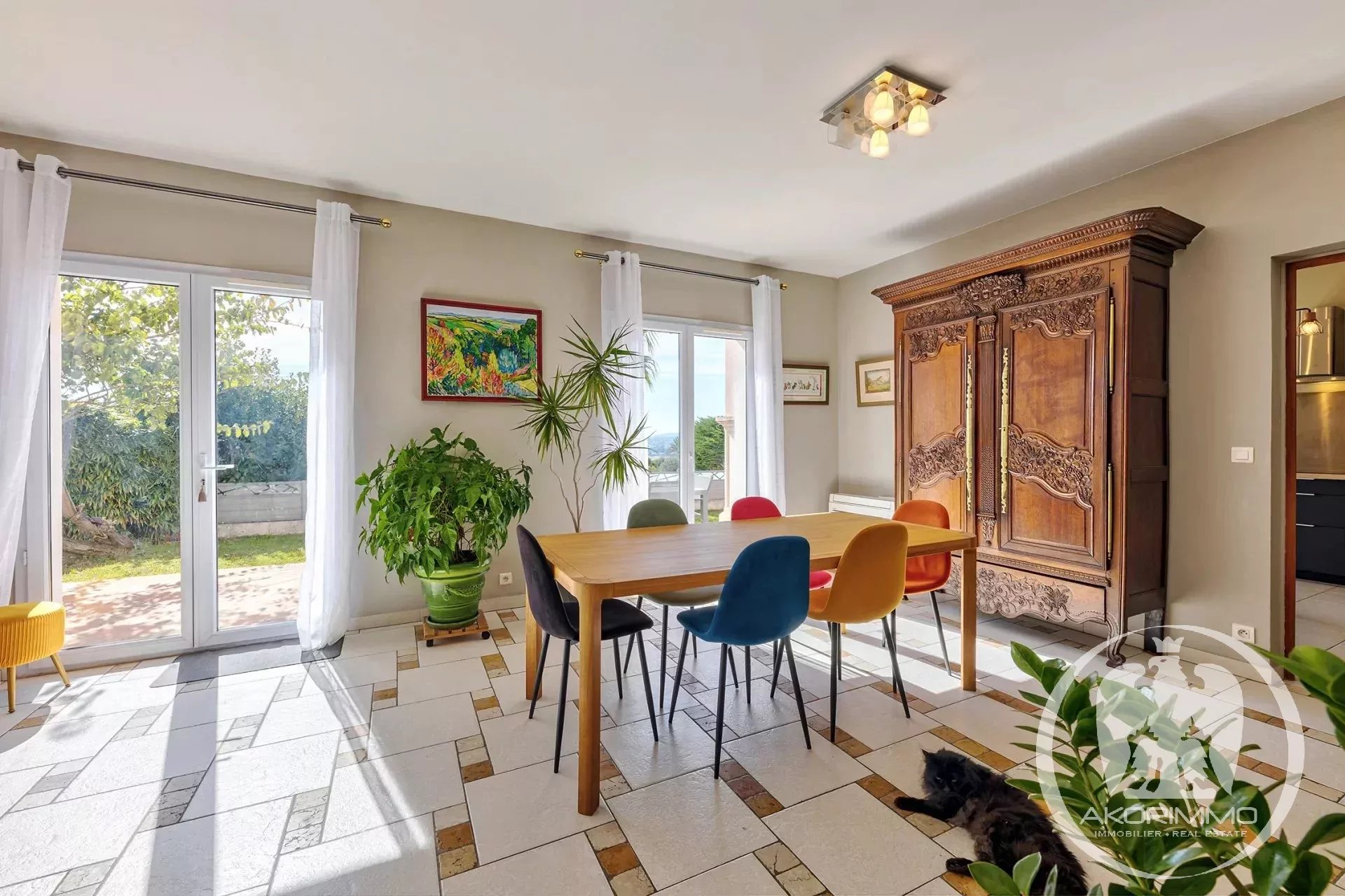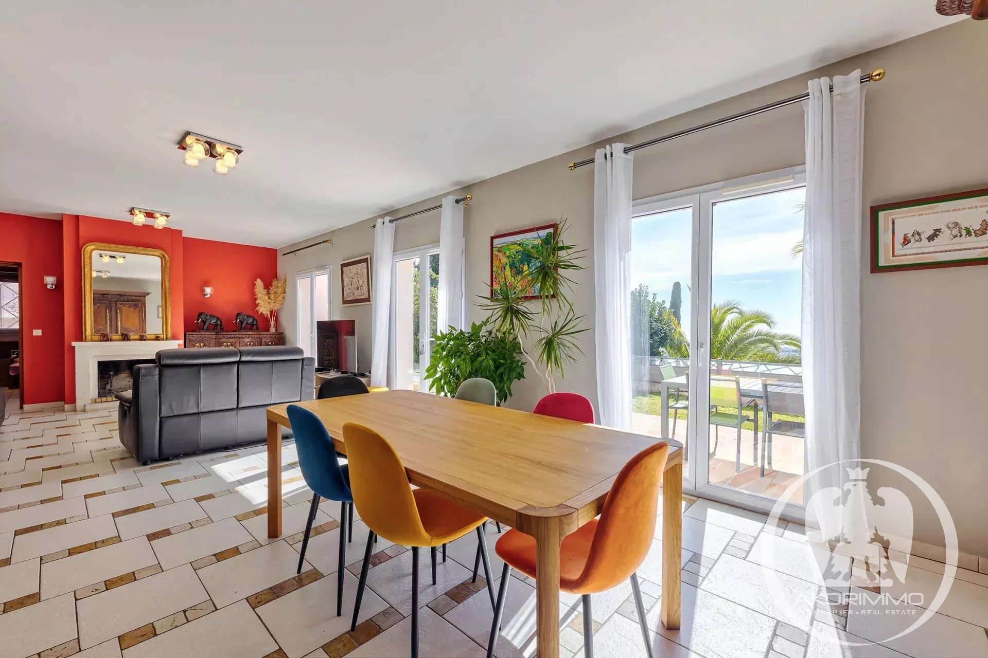 Située sur les hauteurs de Cagnes-sur-Mer, dans le quartier prisé des Colettes, cette spacieuse villa offre une vue imprenable sur la mer.