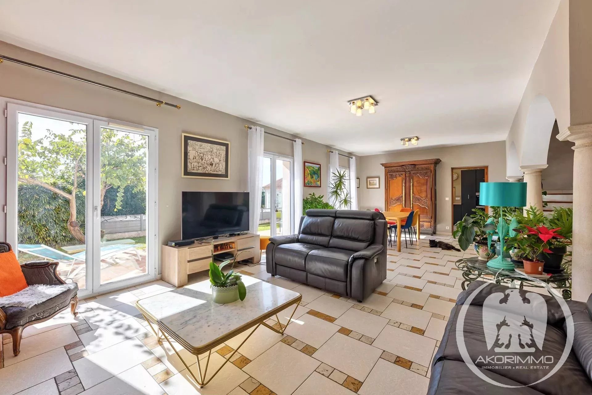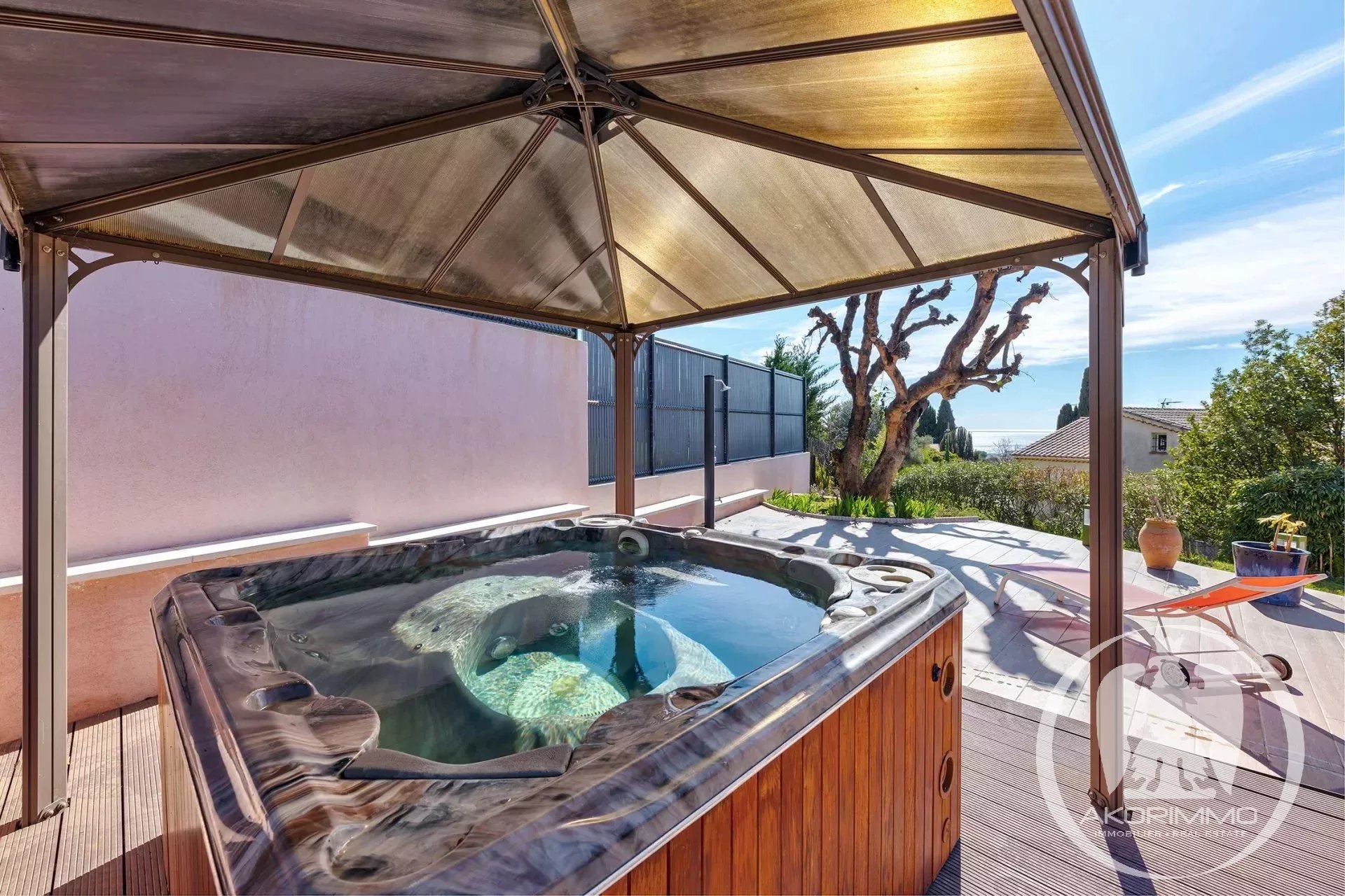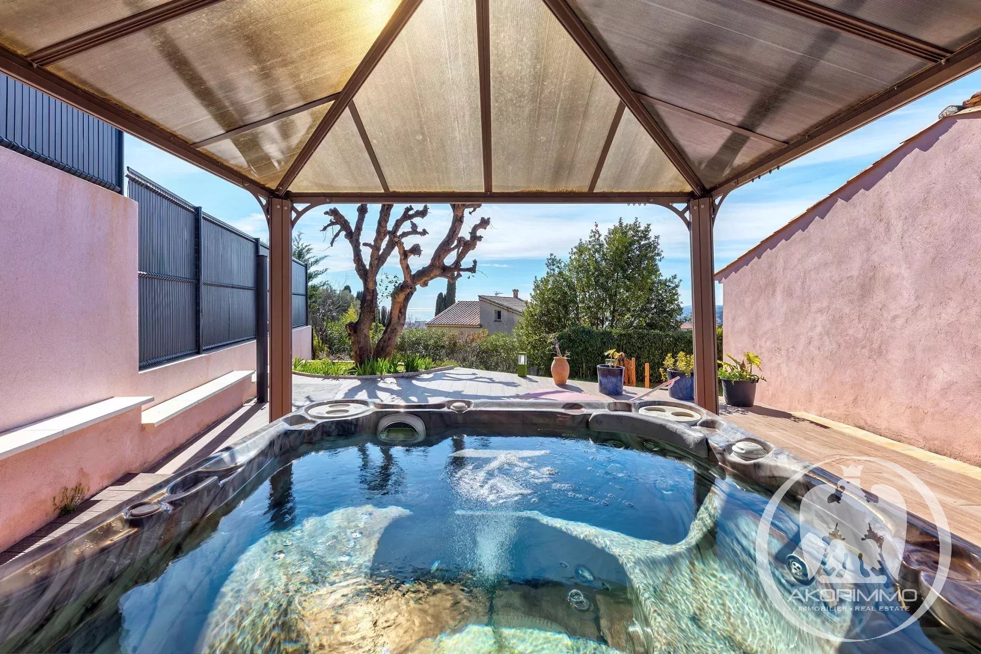 L’ensemble est implanté sur un terrain de 1 020 m², agrémenté d’un jardin avec jacuzzi.