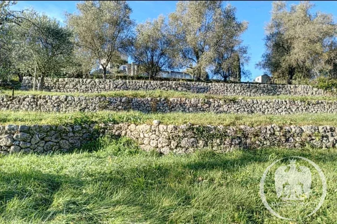 À Valbonne, dans un quartier recherché et à 5 minutes à pied du village, superbe terrain constructible en restanques de 1000 m², complanté d'oliviers, exposition sud-est.