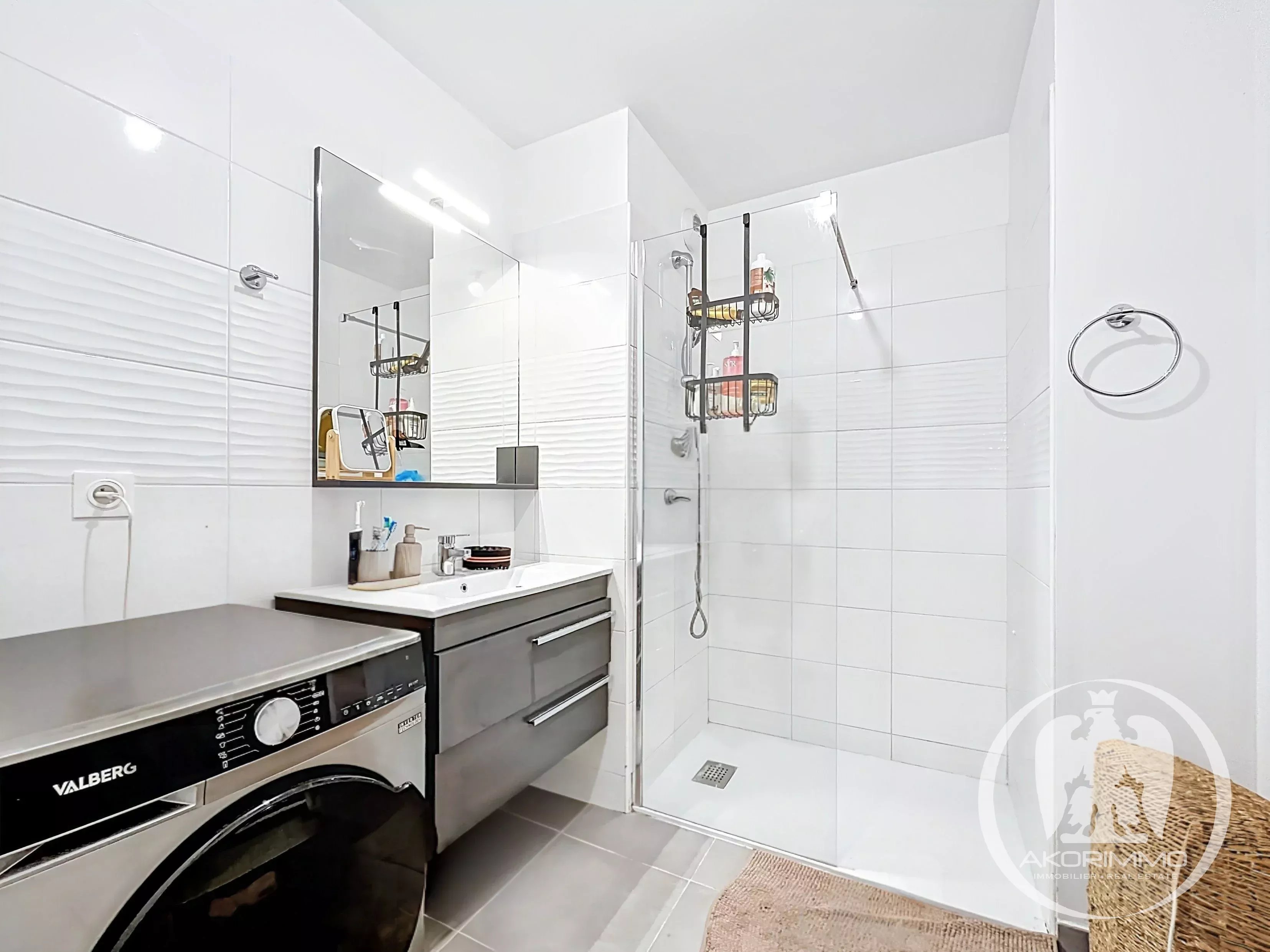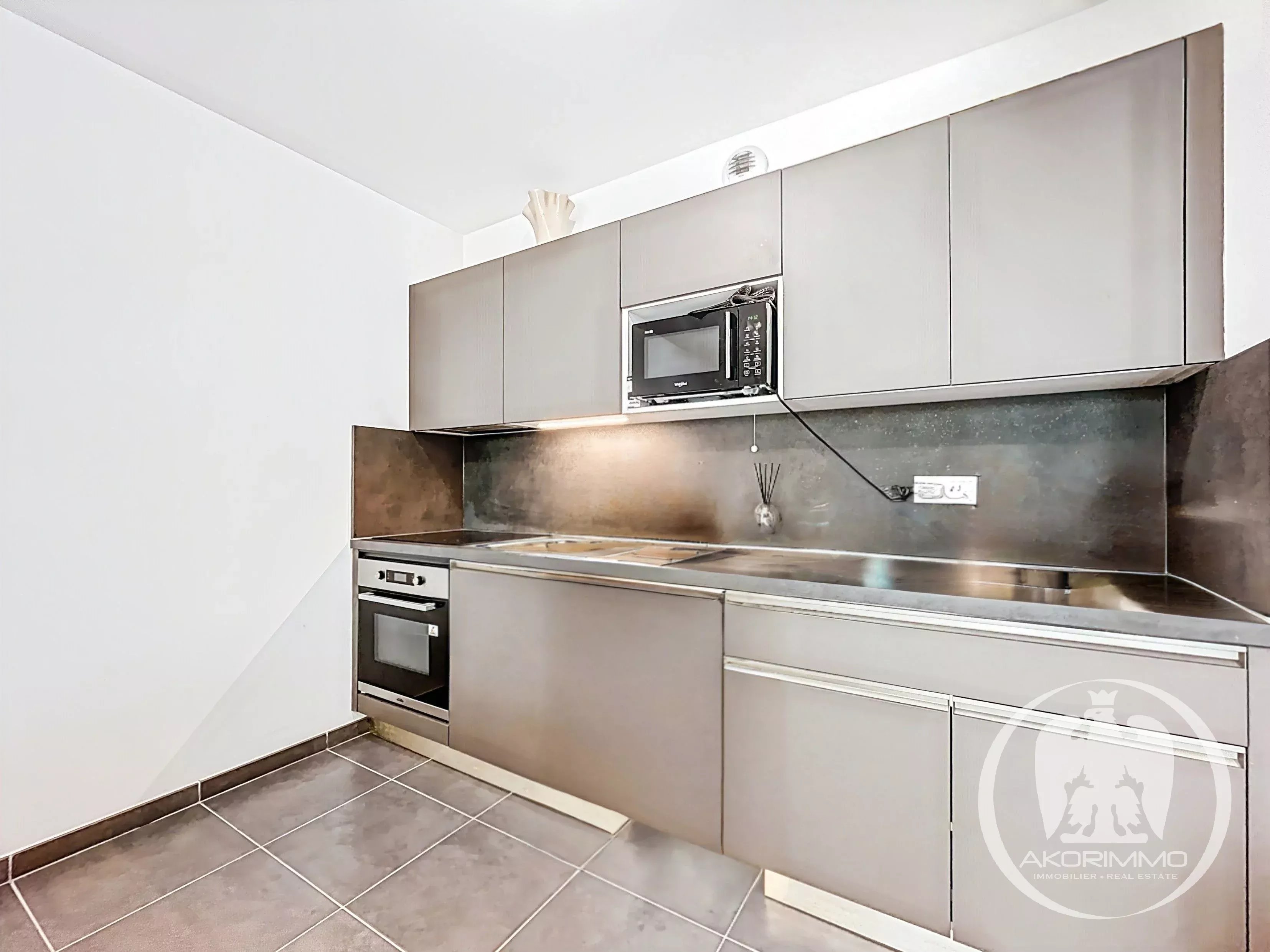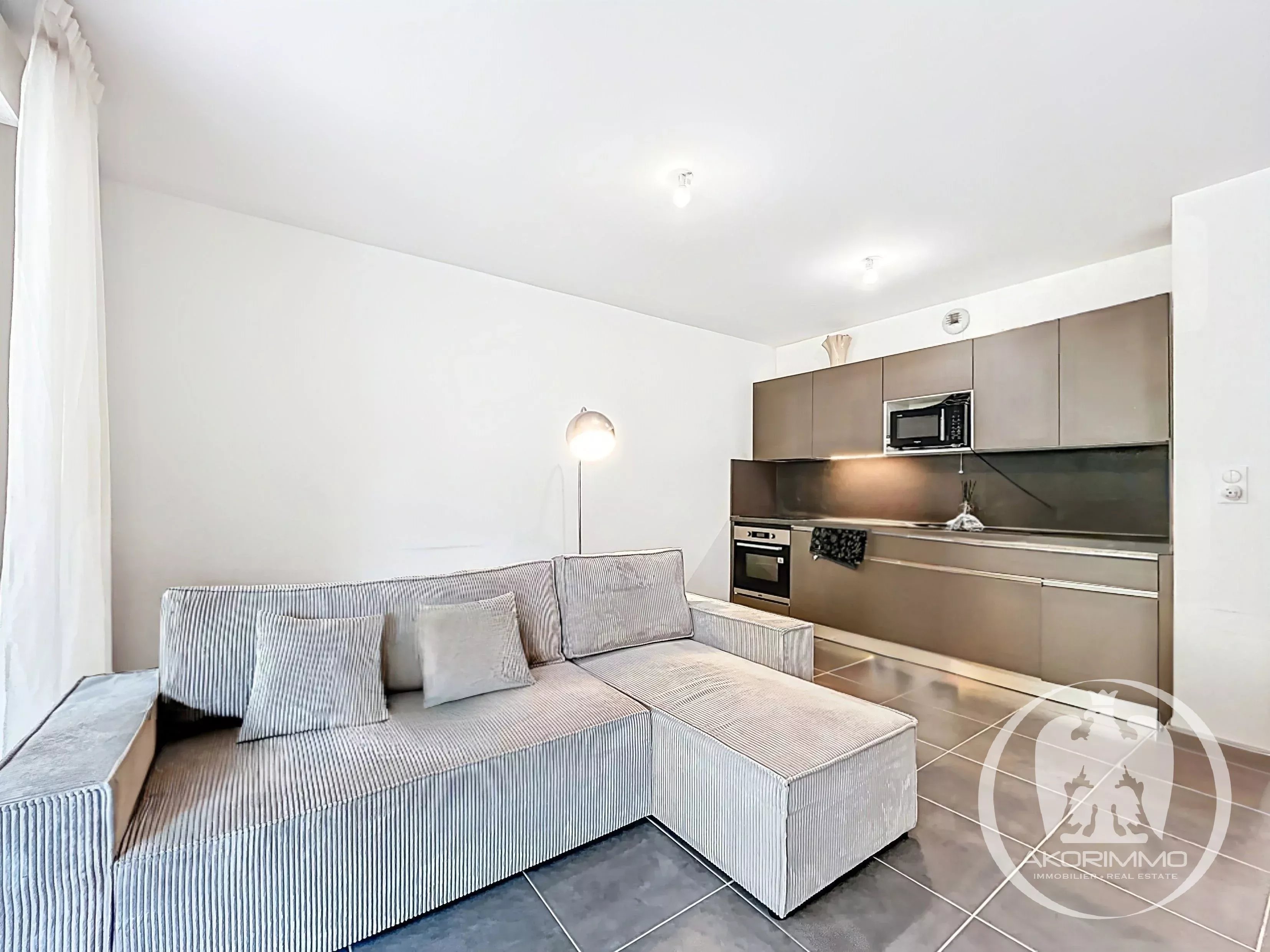 È composto da un soggiorno luminoso con cucina a vista, che si apre su un terrazzo coperto e su un piacevole giardino privato. La camera da letto gode anch’essa di un accesso diretto all’esterno, per un comfort ottimale. Un bagno moderno e servizi igienici separati completano la proprietà.