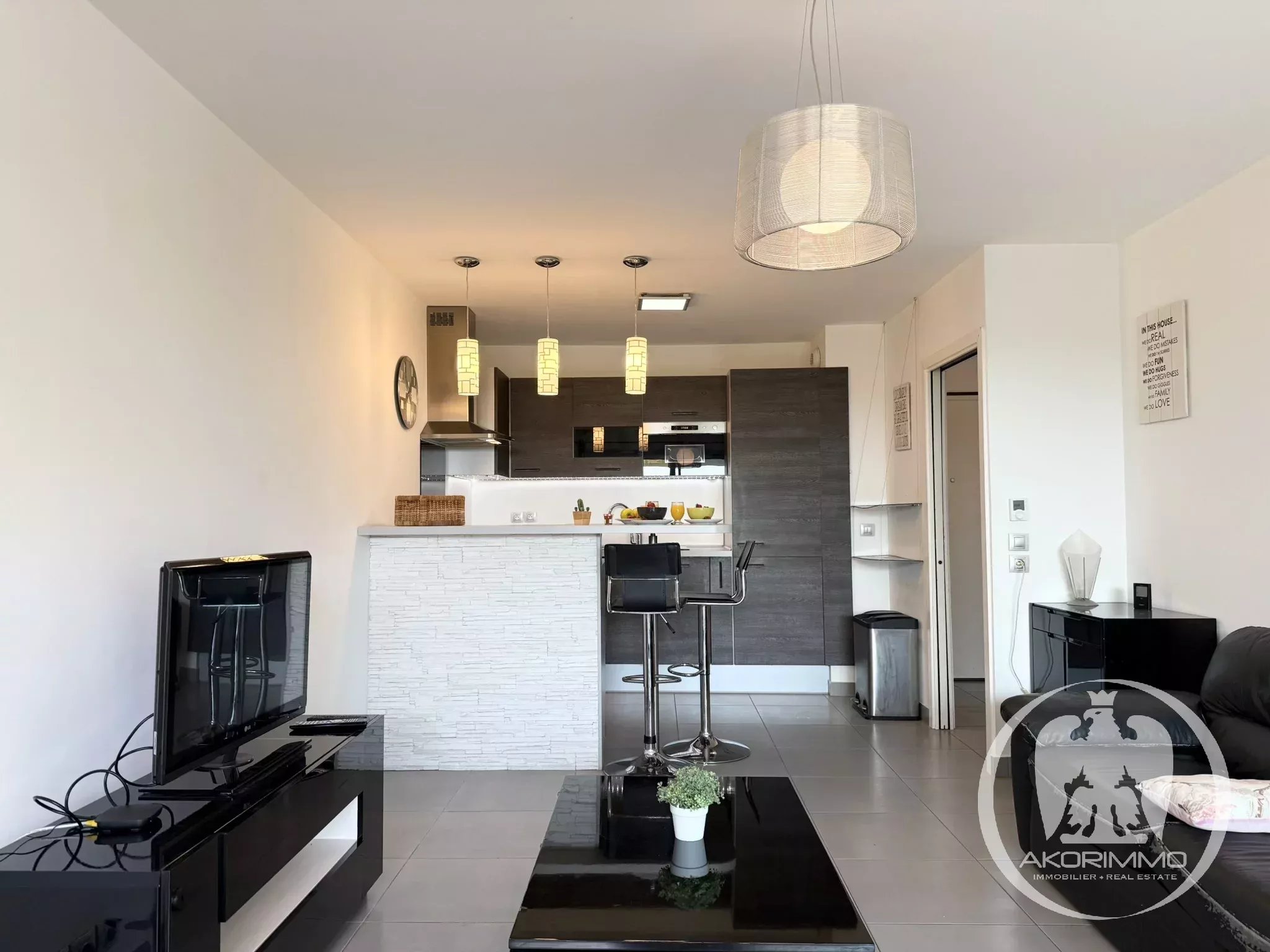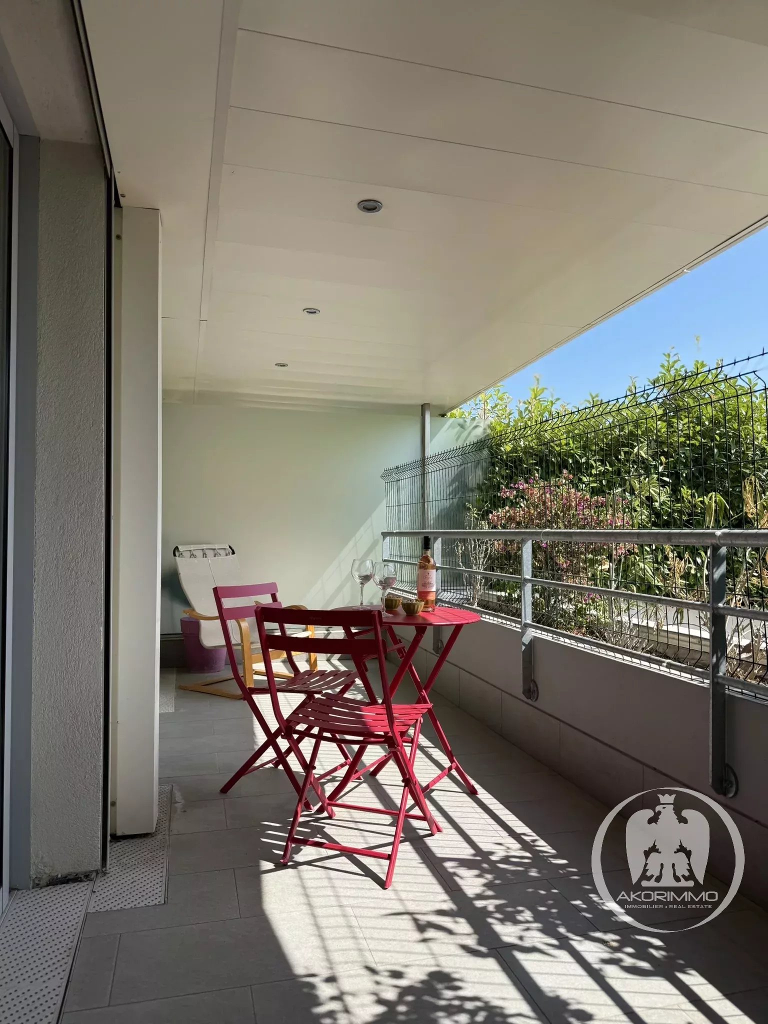 Apprezziamo: la terrazza coperta utilizzabile tutto l'anno, la residenza recente con piscina, il doppio accesso alla terrazza (soggiorno + camera da letto), la cucina moderna, i vani contenitori e la quiete della zona.