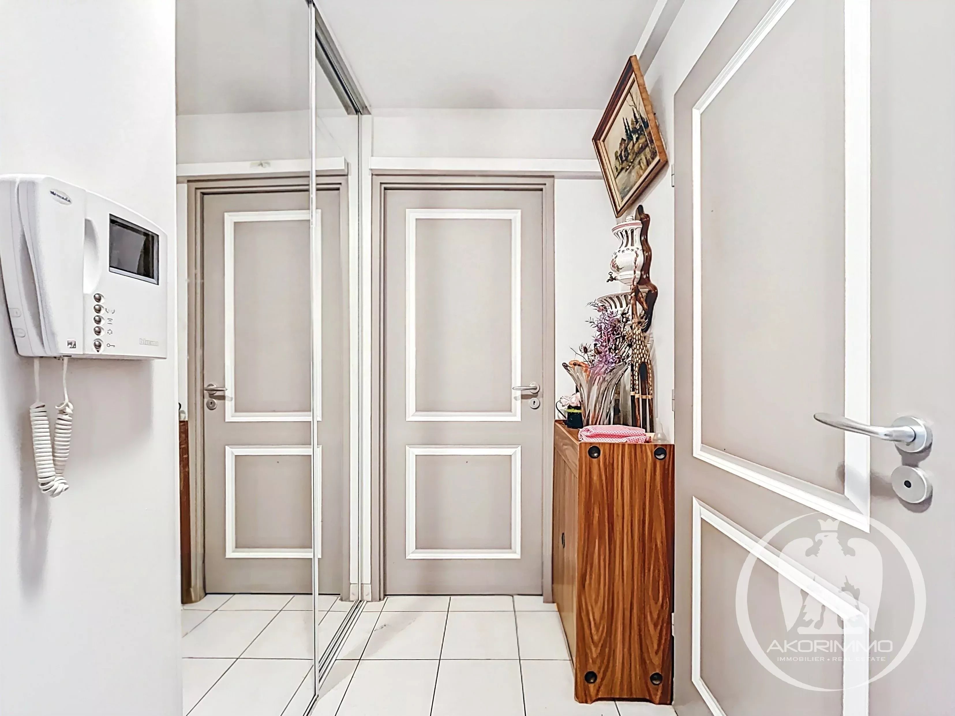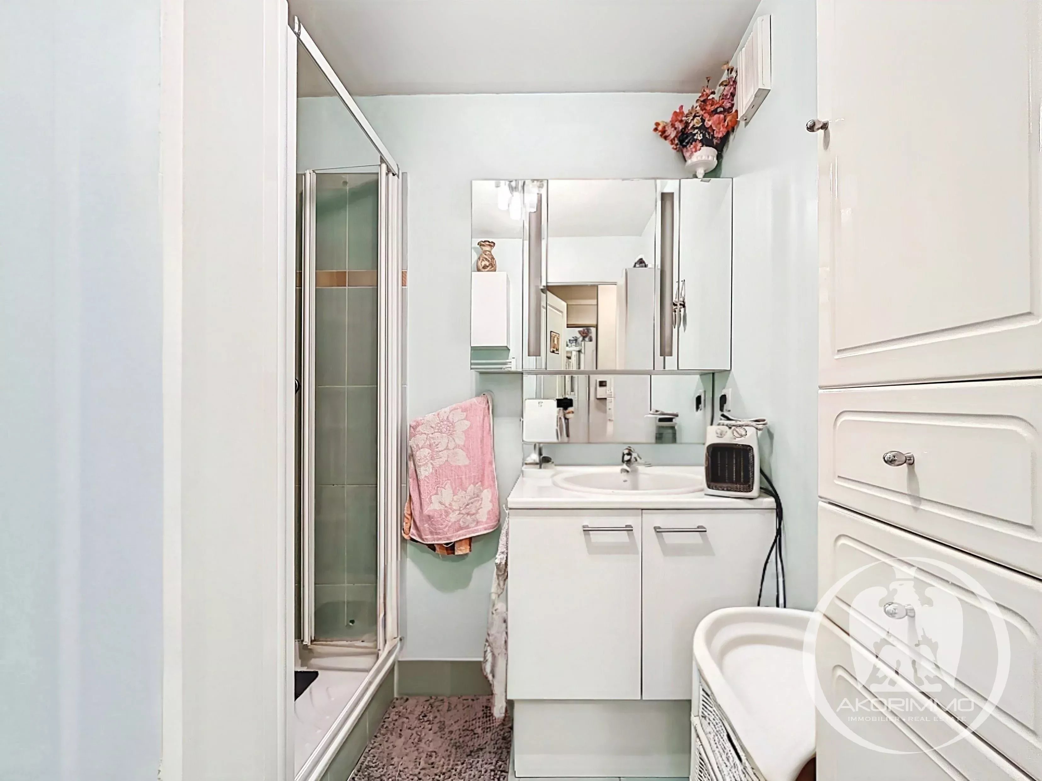 Questo appartamento completamente climatizzato è composto da una cucina aperta sul soggiorno, due camere da letto confortevoli, un bagno con doccia, un WC indipendente e un ingresso con armadio.