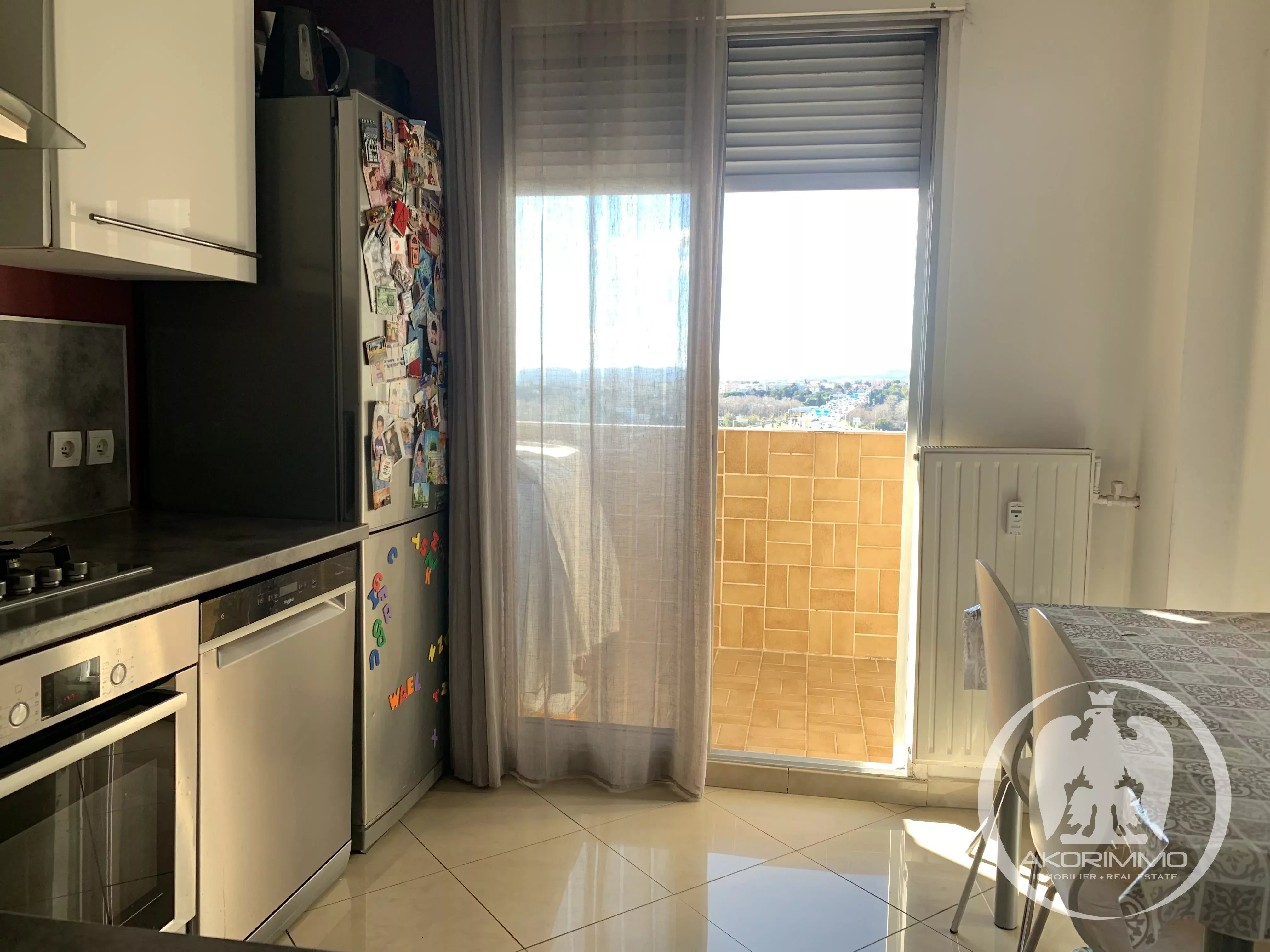 Nizza Ovest, in una zona in rapida espansione e in un condominio chiuso con custode, vicino a stazione ferroviaria, tram e autostrada, appartamento angolare di 3 locali di 62 m² ad un piano alto. L'appartamento è composto da un ingresso con armadio, soggiorno che si apre su una terrazza sud-ovest di 9,30 m² con vista sulla città e sul mare, cucina indipendente semi-attrezzata, due camere da letto ciascuna con armadio (di cui una molto ampia con anche una loggia), bagno, WC indipendente con ripostigli. Riscaldamento centralizzato, spese condominiali attuali circa 310 euro/mese. Classe energetica: D (210), GES: D (43). Stima dei costi annui di energia dell'appartamento compresa tra €1.139 e €1.541, prezzi medi delle energie indicizzati agli anni e 2023, abbonamenti inclusi. Venduto con una cantina. Possibilità di acquistare a parte un garage interrato. Numerosi parcheggi condominiali. Le informazioni sui rischi a cui è esposto l'immobile sono disponibili sul sito Géorisques: georisques.gouv.fr.