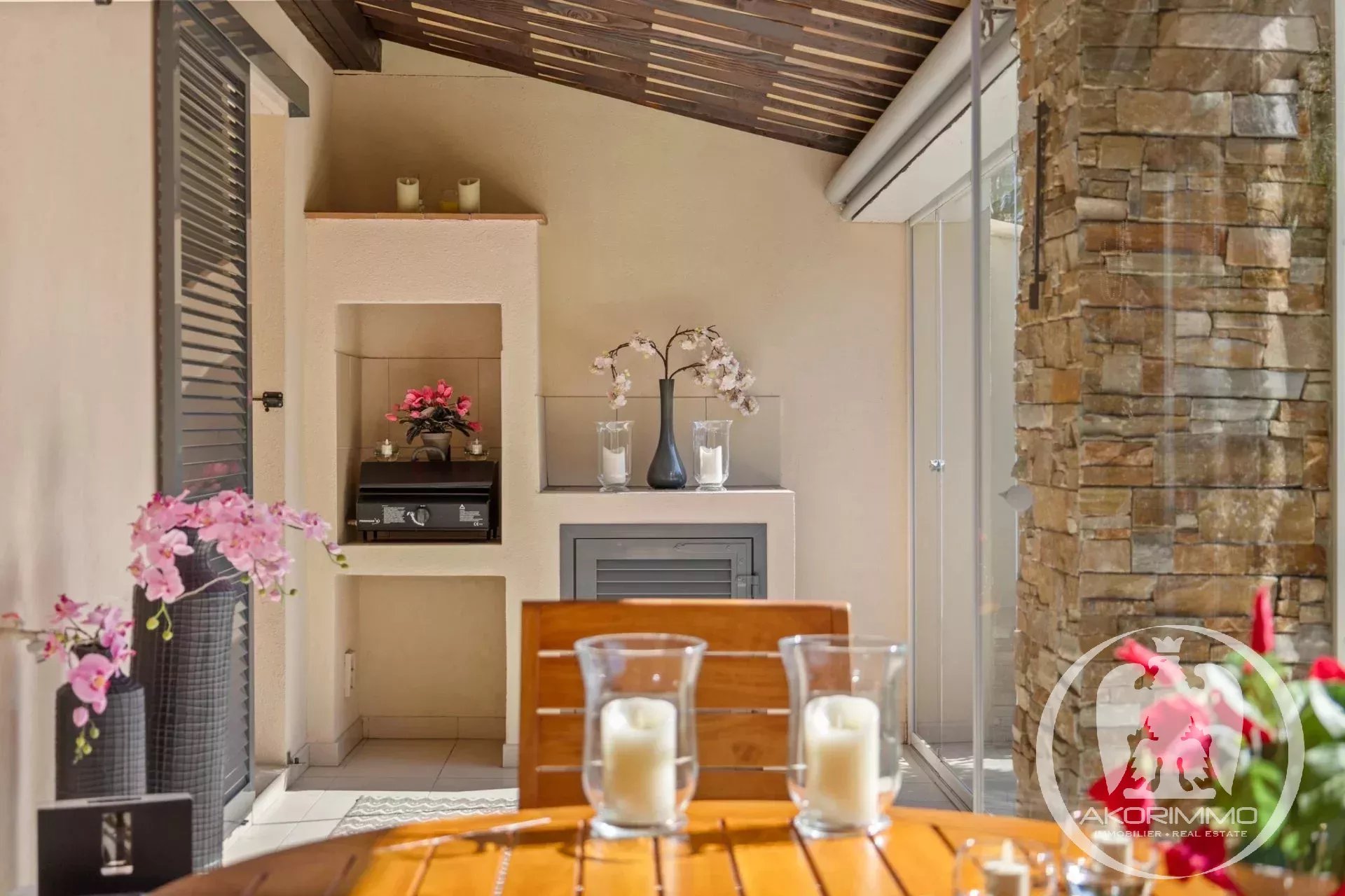 LE PLAN-DE-LA-TOUR: Casa di 4 locali in eccellenti condizioni con giardino, terrazza vetrata, garage e piscina – a pochi passi dal centro del villaggio. Situata in un piccolo condominio di soli 16 lotti, a due passi dal suggestivo centro di Le Plan-de-la-Tour, questa piacevole casa di 4 locali di 101,25 m² si distingue per l’ottimo stato di manutenzione e il contesto tranquillo. Al piano terra, troverete un accogliente soggiorno/sala da pranzo e una terrazza completamente vetrata con finestra a soffietto, che crea una bella continuità con il giardino. Una tenda da sole elettrica e tende interne garantiscono comfort e protezione durante tutta la giornata. La casa comprende anche una cucina separata completamente attrezzata e una lavanderia con accesso diretto al garage. Al piano superiore, la zona notte è composta da 3 camere, di cui una suite con bagno privato, oltre a un secondo bagno. All’esterno potrete godere di un grazioso giardino paesaggistico con illuminazione integrata. Tra le dotazioni di qualità: aria condizionata reversibile, tapparelle e tende elettriche, garage privato, cancello elettrico sicuro e piscina condivisa all’interno della residenza. Una proprietà rara a ridosso del villaggio, dei negozi, ristoranti e servizi, ideale come prima o seconda casa in un ambiente tranquillo e curato.