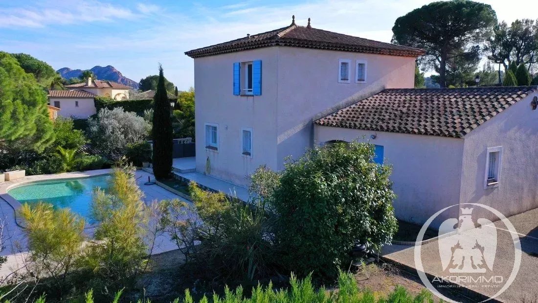 ESCLUSIVA: SAINT-RAPHAËL, zona esclusiva e ricercata di VALESCURE / LES VEYSSIÈRES, in un COMPLESSO RESIDENZIALE MODERNO, immerso nel verde con una vista sublime sul MASSICCIO dell'ESTÉREL, MAGNIFICA VILLA INDIPENDENTE in STILE PROVENZALE del 2002, in POSIZIONE DOMINANTE, su 2 livelli, con 5/6 LOCALI, 121,18 m² secondo la Legge Carrez (superficie totale 151,36 m²) e in CONDIZIONI ECCEZIONALI. TERRENO di 1.169 m² con varie terrazze e un BELLISSIMO GIARDINO MEDITERRANEO, una PISCINA, un GRANDE GARAGE e numerosi posti auto interni ed esterni. TRANQUILLA, LUMINOSA, non esposta e arretrata rispetto alle vie principali.