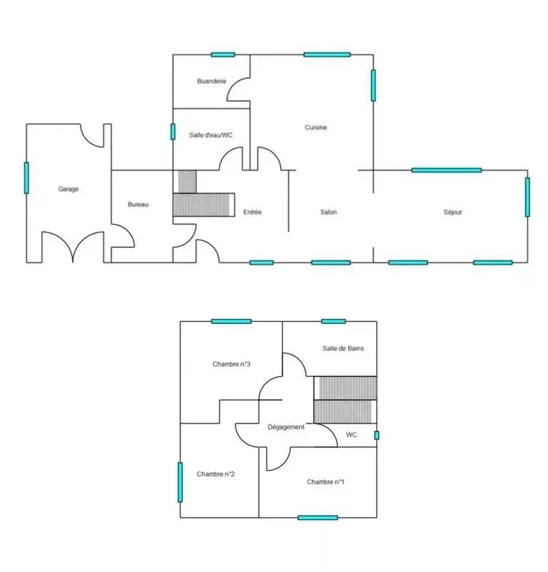 Al piano superiore, un disimpegno distribuisce 3 camere (9,57 m², 10,60 m², 13 m²) ciascuna con un’orientazione e una vista piacevole diversa, un bagno (5 m²) e un WC separato (1,54 m²).