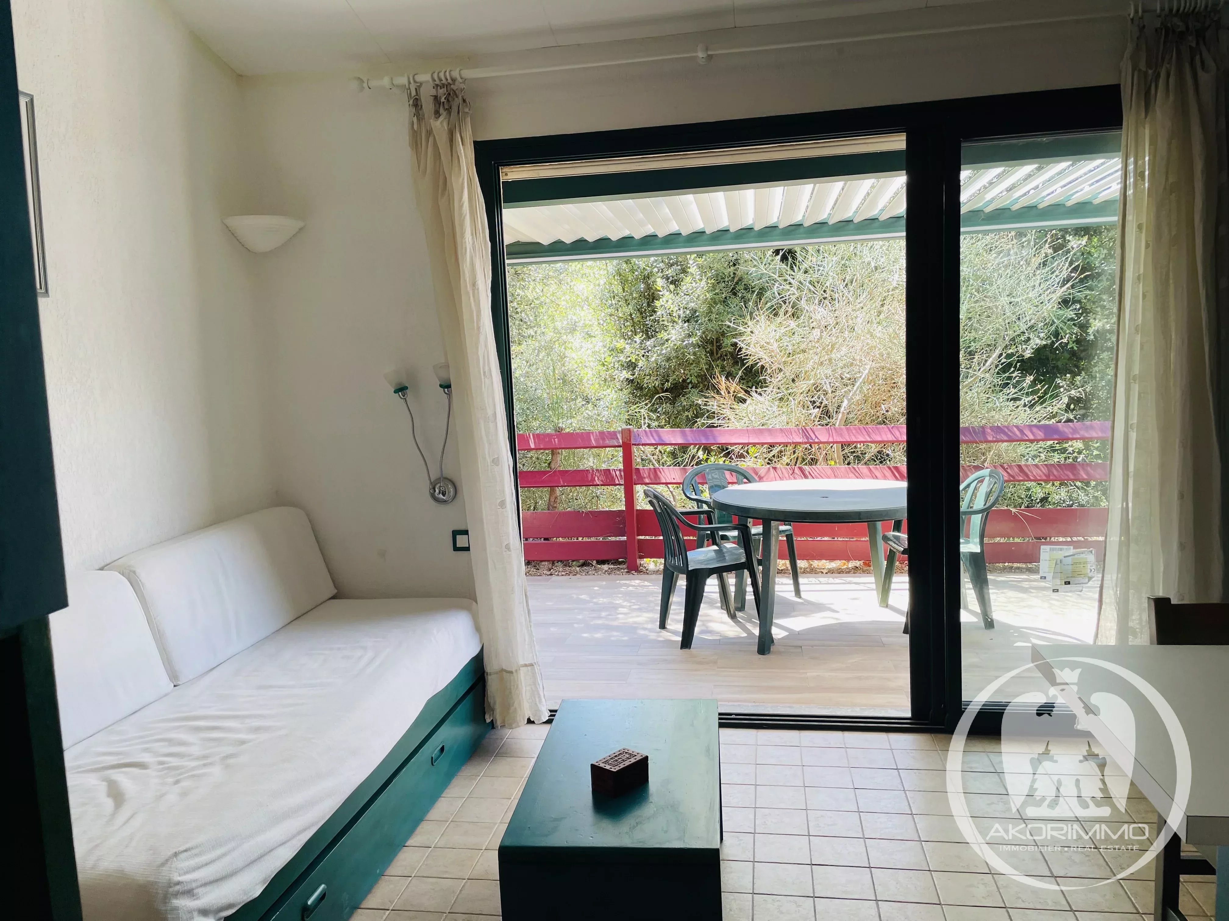 Casa a schiera di 3 locali con una superficie abitabile di 35 mq, situata in un parco residenziale alberato con piscina.