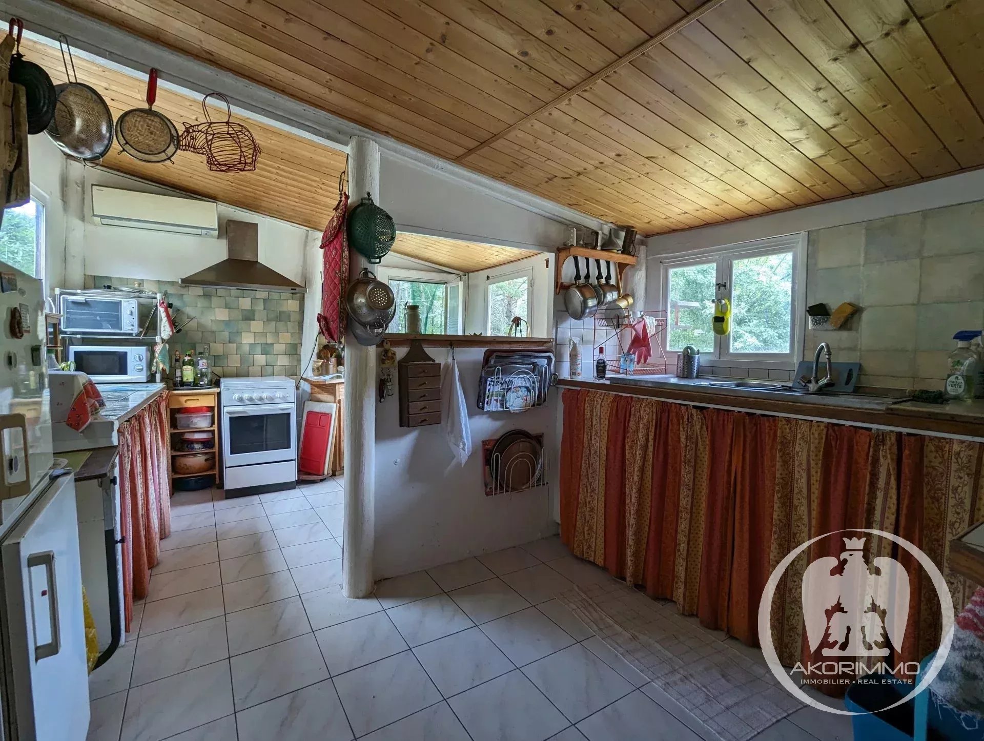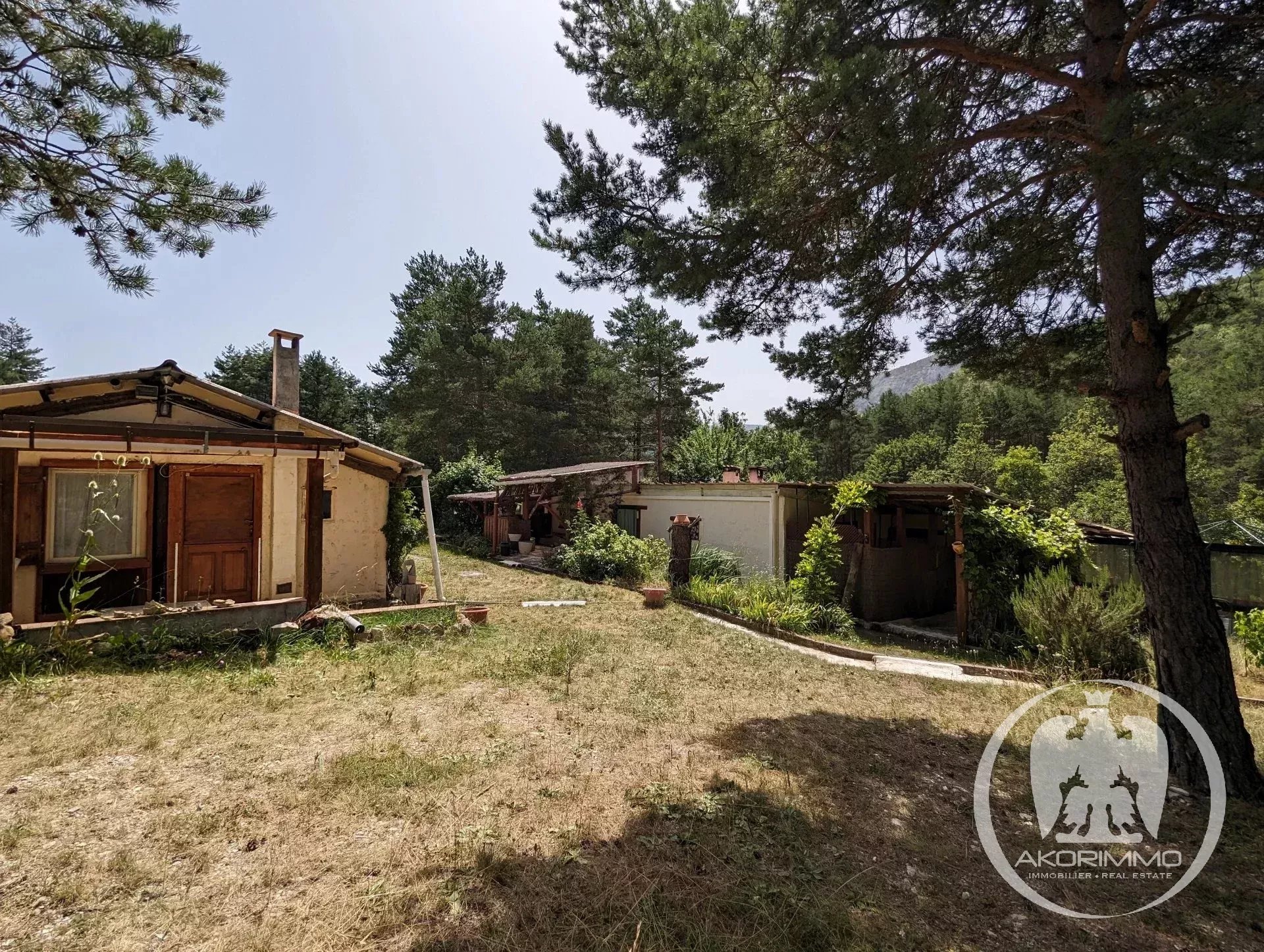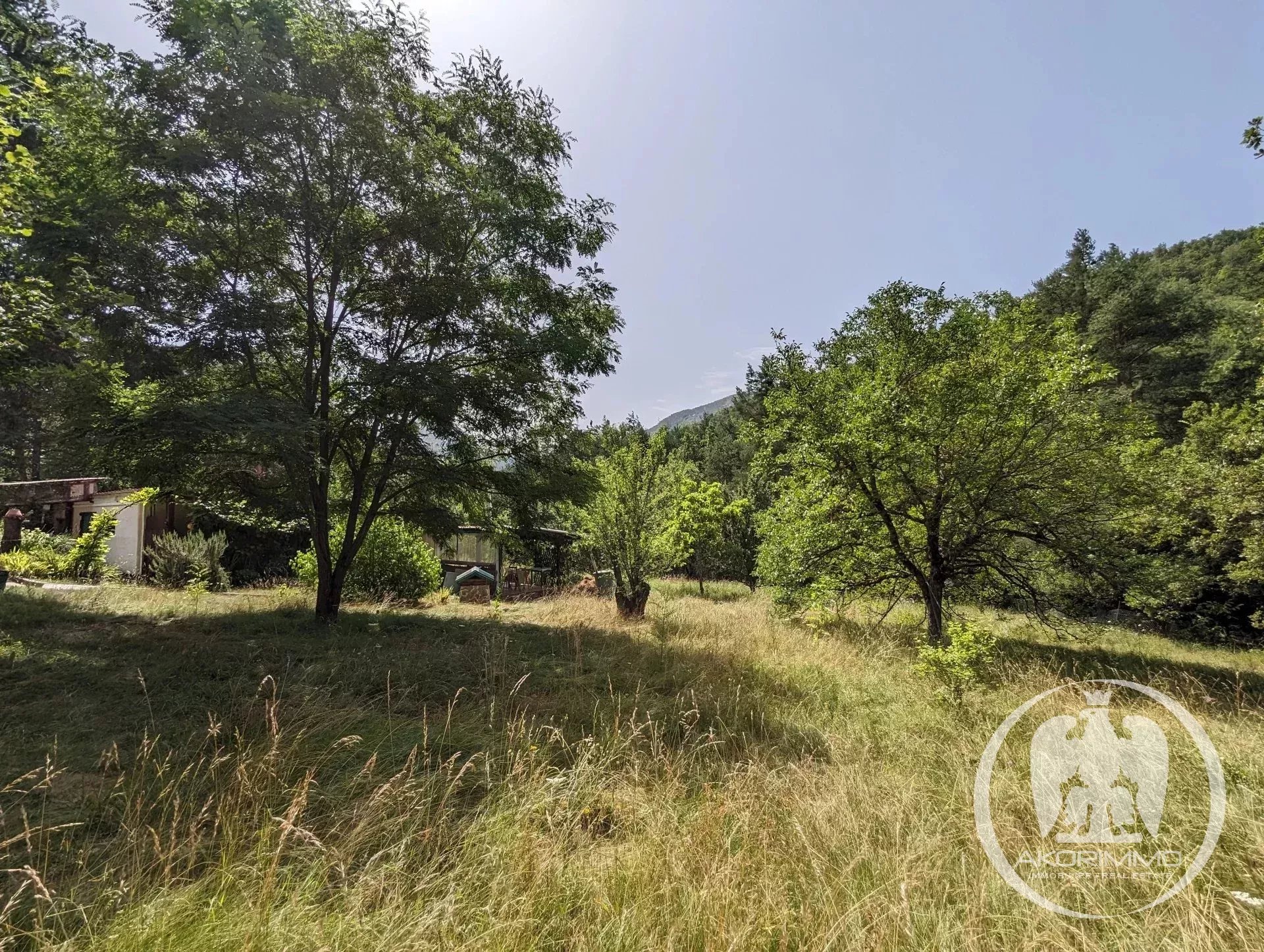 COLLONGUES - proche PUGET-THENIERS - Propriété agricole avec 3 habitations A 20 minutes et 8km de Puget-Théniers, entre Sallagriffon et Collongues, à 24km de Grasse et 70km de Nice, à 574 mètres d'altitude. Ce vaste domaine de 5,5 hectares se compose de prés, de forêts et d'une zone d'habitation avec deux maisons et dépendances. L'ensemble est très ensoleillé, facile d'accès et exposé principalement sud, est et ouest. La propriété peut offrir beaucoup de possibilités : agritourisme, gîte écologique, ferme auberge, exploitation agricole, permaculture, écovillage, ferme pédagogique, ou simplement un lieu d'habitation pour une ou deux familles, au calme absolu et dans une situation privilégiée ! La partie habitation est organisée en deux maisons, chacune ayant son accès indépendant. La première maison offre 70 m2 avec une grande pièce de vie avec poutres apparentes, une cuisine, une chambre et une salle de bains. Une seconde maison de 80 m2 est divisée en deux appartements : un 3 pièces avec un grand salon avec poutres, une cuisine, deux chambres et une salle de bains ; et un studio tout équipé. Chaque appartement s'ouvre sur de grandes terrasses. L'ensemble est chauffé au bois (cheminée et insert) et en électrique (climatisation réversible et convecteurs). Les deux maisons sont entourées d'un vaste pré, actuellement utilisé pour produire du fourrage. Il peut accueillir différentes activités agricoles : élevage, chevaux, arboriculture... Le domaine est également couvert d'une forêt composée de chênes, pins sylvestres et érables. Plusieurs dépendances cadastrées complètent la propriété (abris, hangars de stockage). Plusieurs places extérieures permettent d'accueillir jusqu'à 6 véhicules. Approvisionnement en eau sécurisé, 4 sources identifiées sur le terrain. Le terrain est en zone agricole et naturelle. Bien non soumis au statut de la copropriété - Honoraires à la charge du vendeur